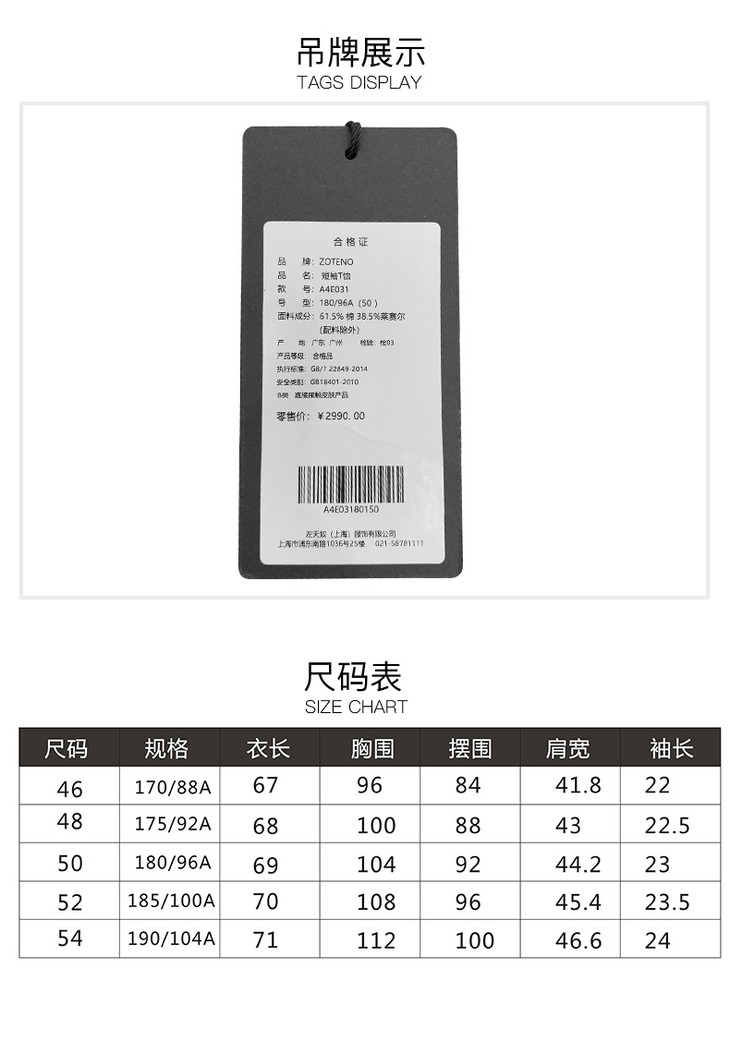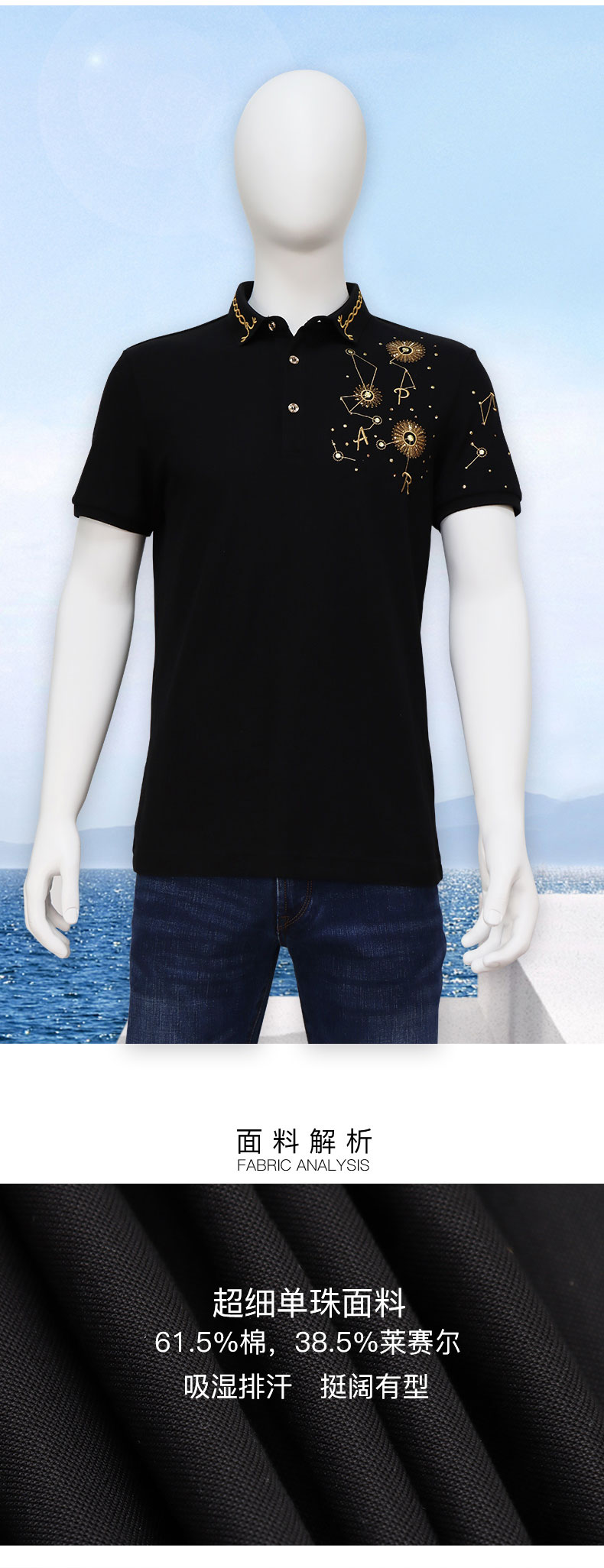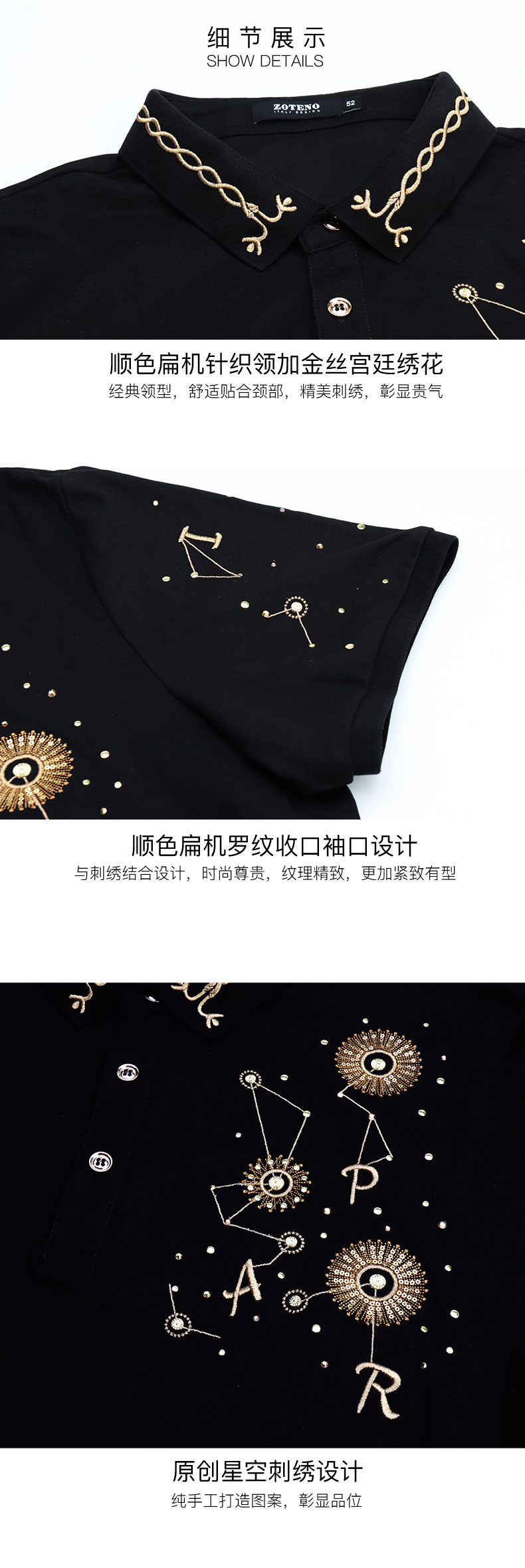 左天奴/ZOTENO 短袖T恤夏季翻领T商务时尚男装高档T金丝绣花A4E031