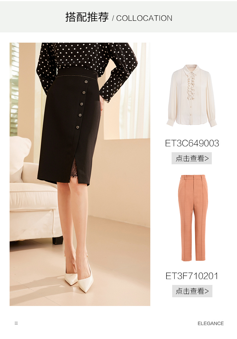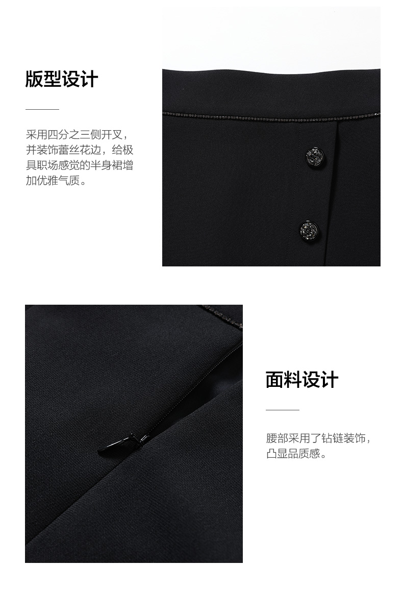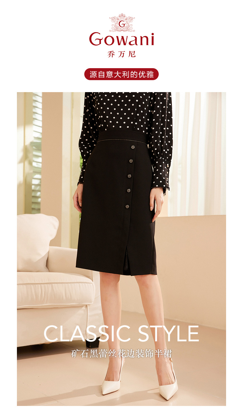 乔万尼半身裙女新款秋季高腰黑色职场高级感西装裙ET3D650