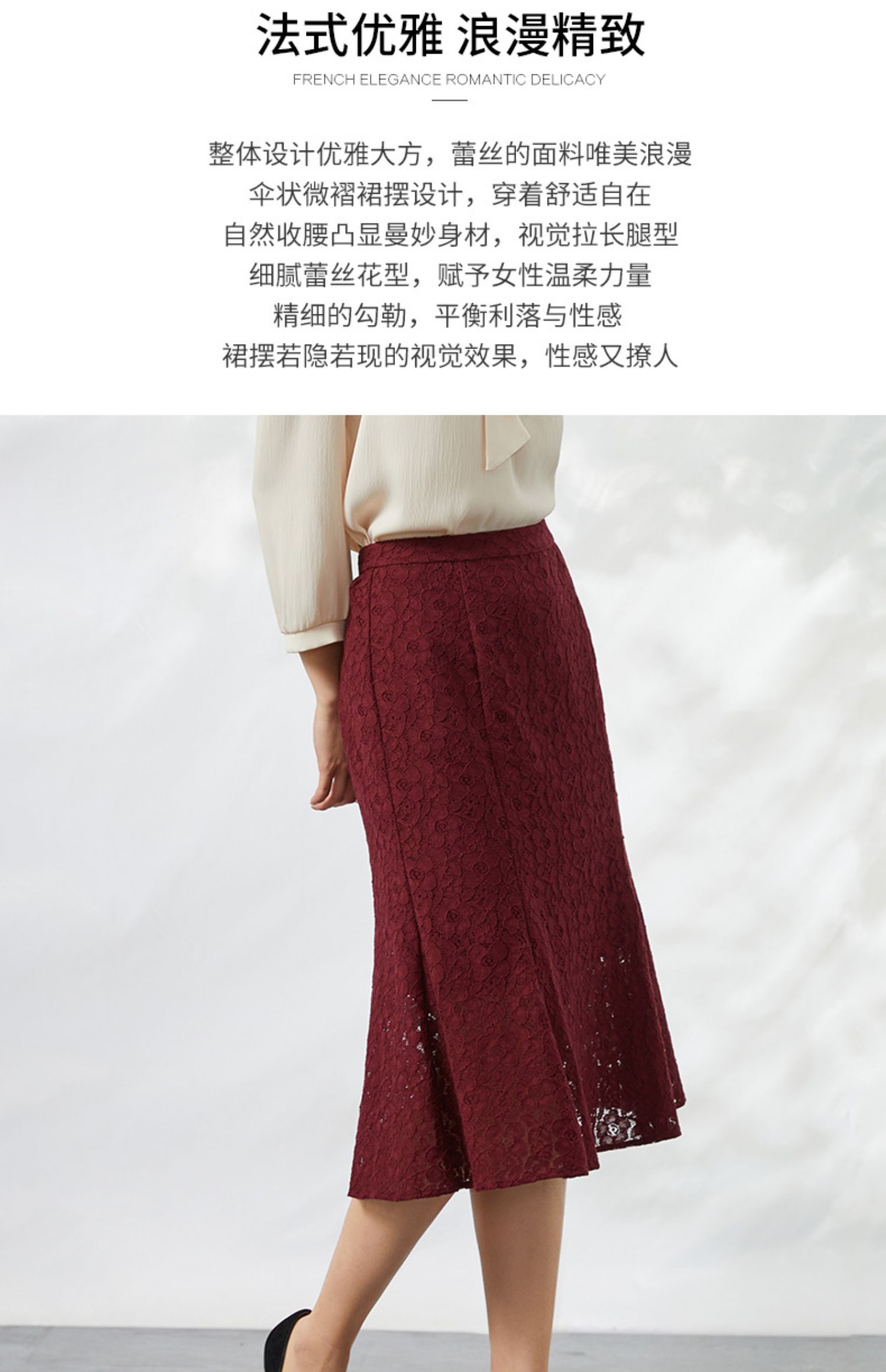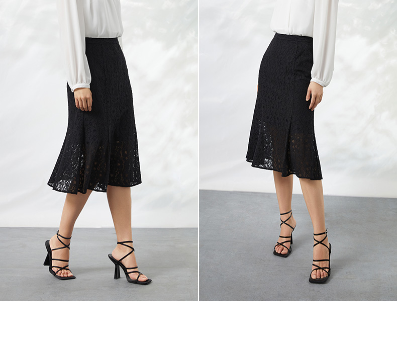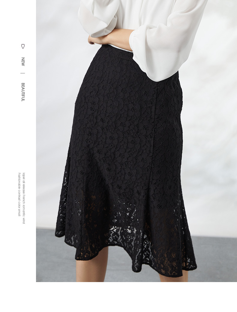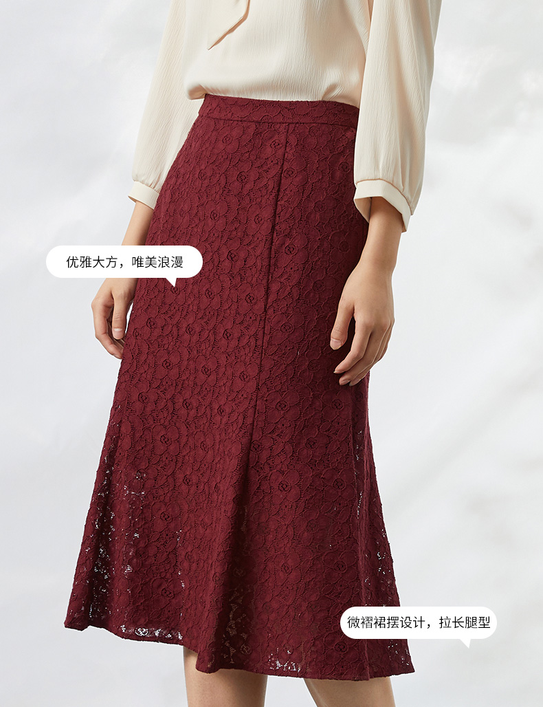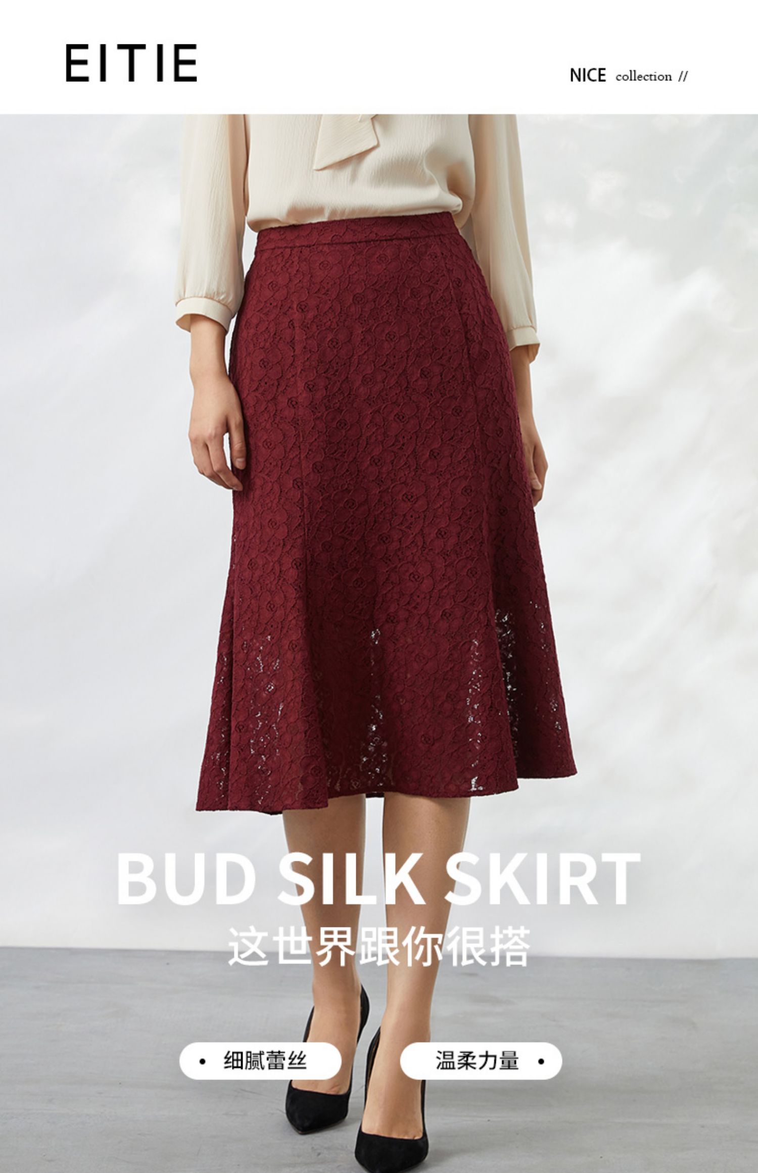 EITIE爱特爱夏季新款优雅温柔气质显瘦纯色a字包臀蕾丝半身裙B2206920