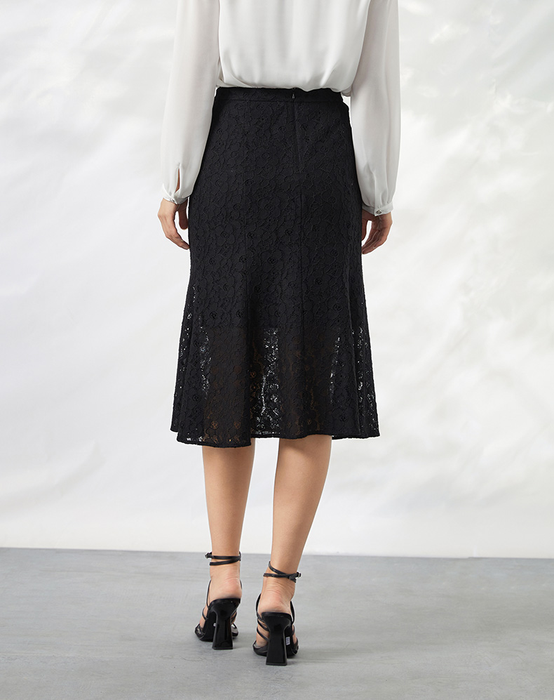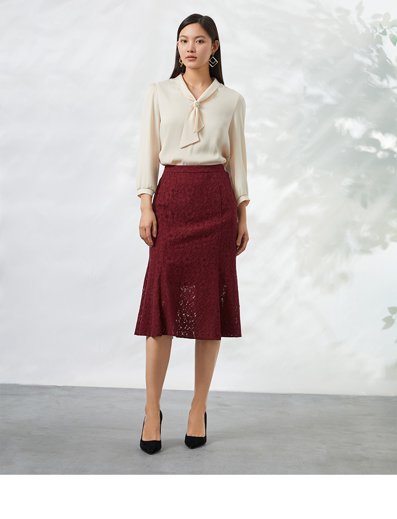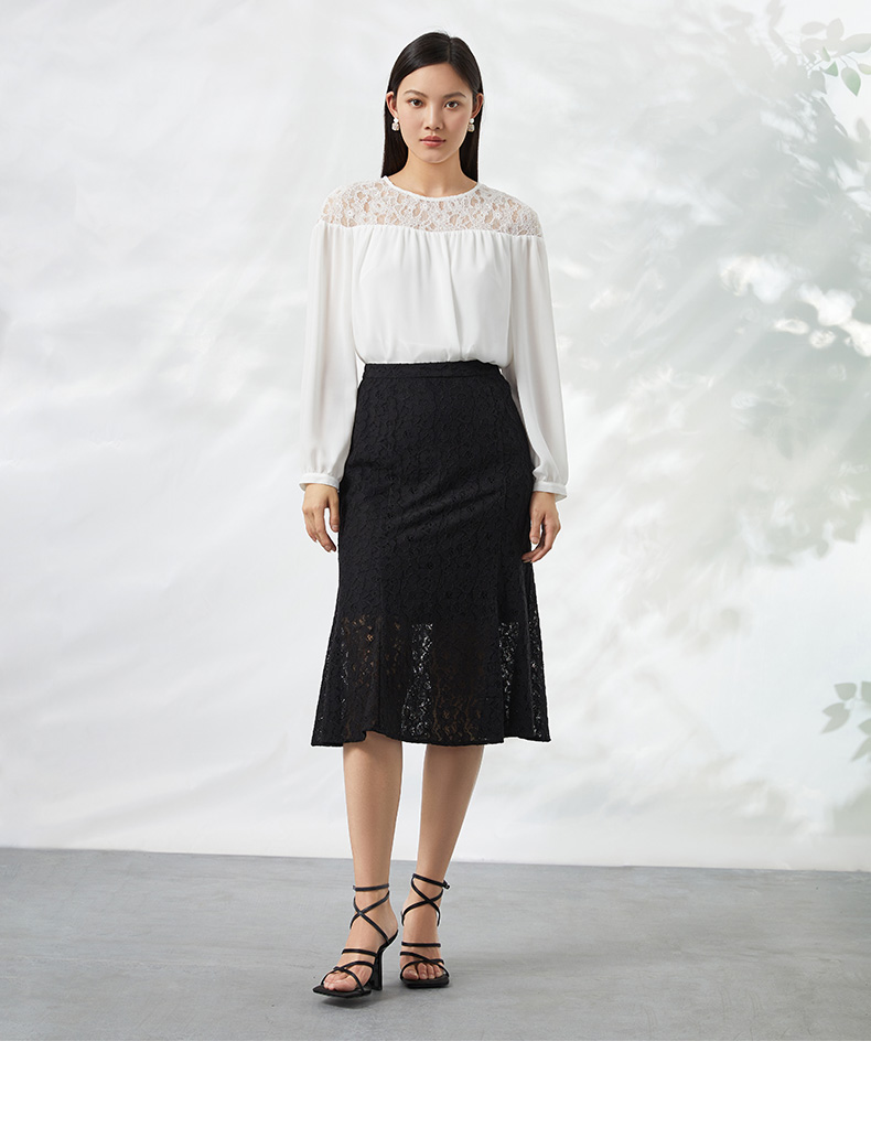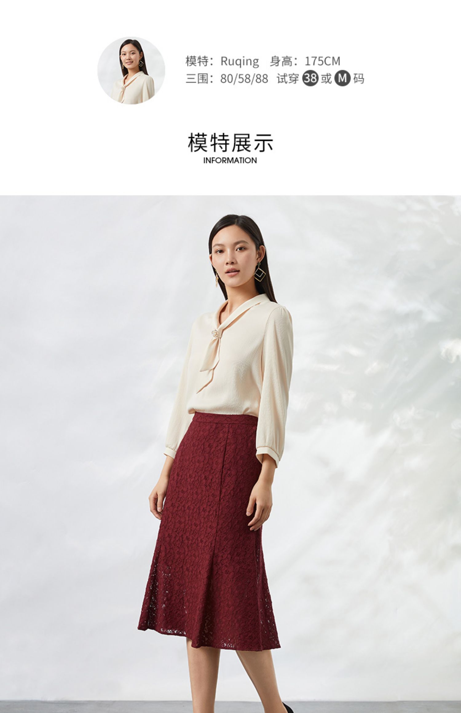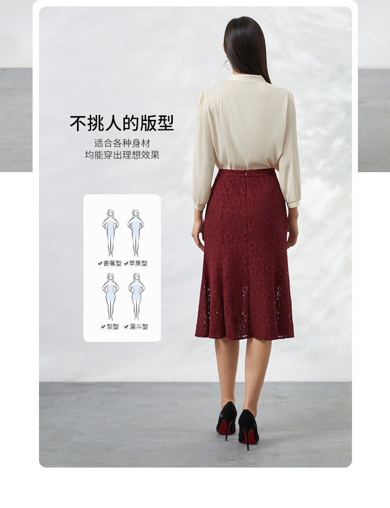 EITIE爱特爱夏季新款优雅温柔气质显瘦纯色a字包臀蕾丝半身裙B2206920