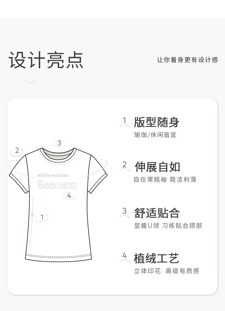艾扬格life C1195瑜伽经2.46 女装T恤 吸湿排汗 立体印花:Sthira-sukham asanam