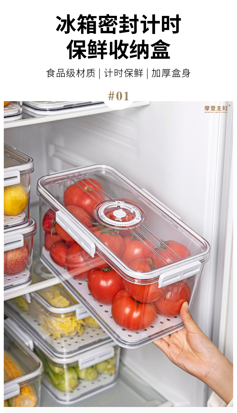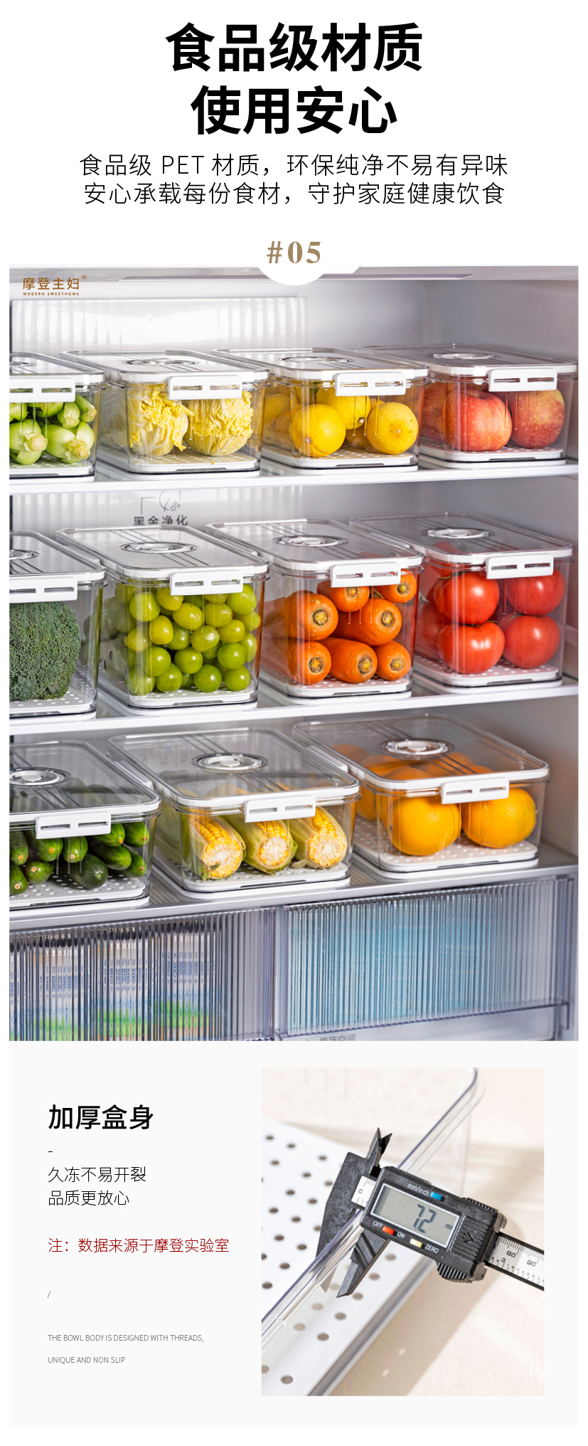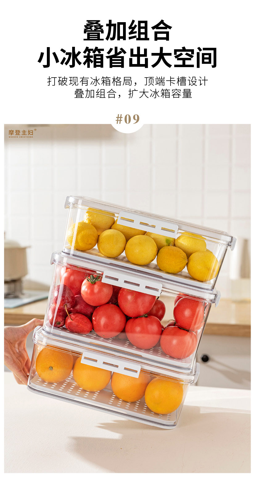 摩登主妇冰箱整理收纳盒食品级专用蔬菜水果保鲜大容量密封分装盒