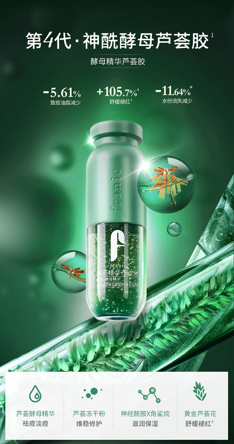【酵母精华护肤好物】法兰琳卡酵母精华芦荟胶淡痘痘印神经酰胺黄金芦荟花等成分舒缓肌肤微囊锁鲜技术晒后修护维稳保湿