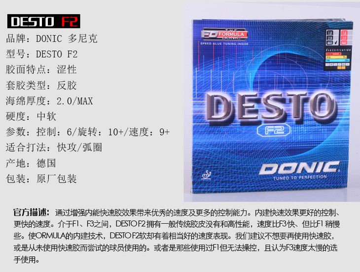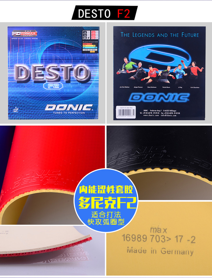 DONIC多尼克F2乒乓球胶皮专业德系涩性反胶反手用乒乓套胶