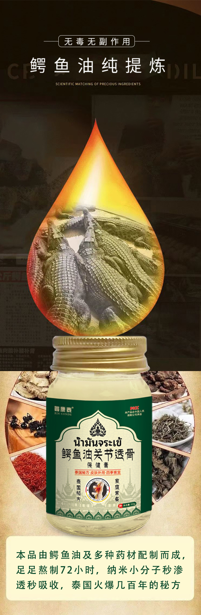 【泰国秘方 养护关节】鳄鱼油关节透骨保健膏 颈肩腰腿疼 哪疼抹哪 浑身舒畅 家有老人必备