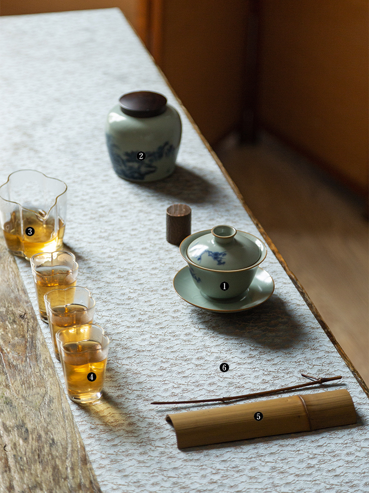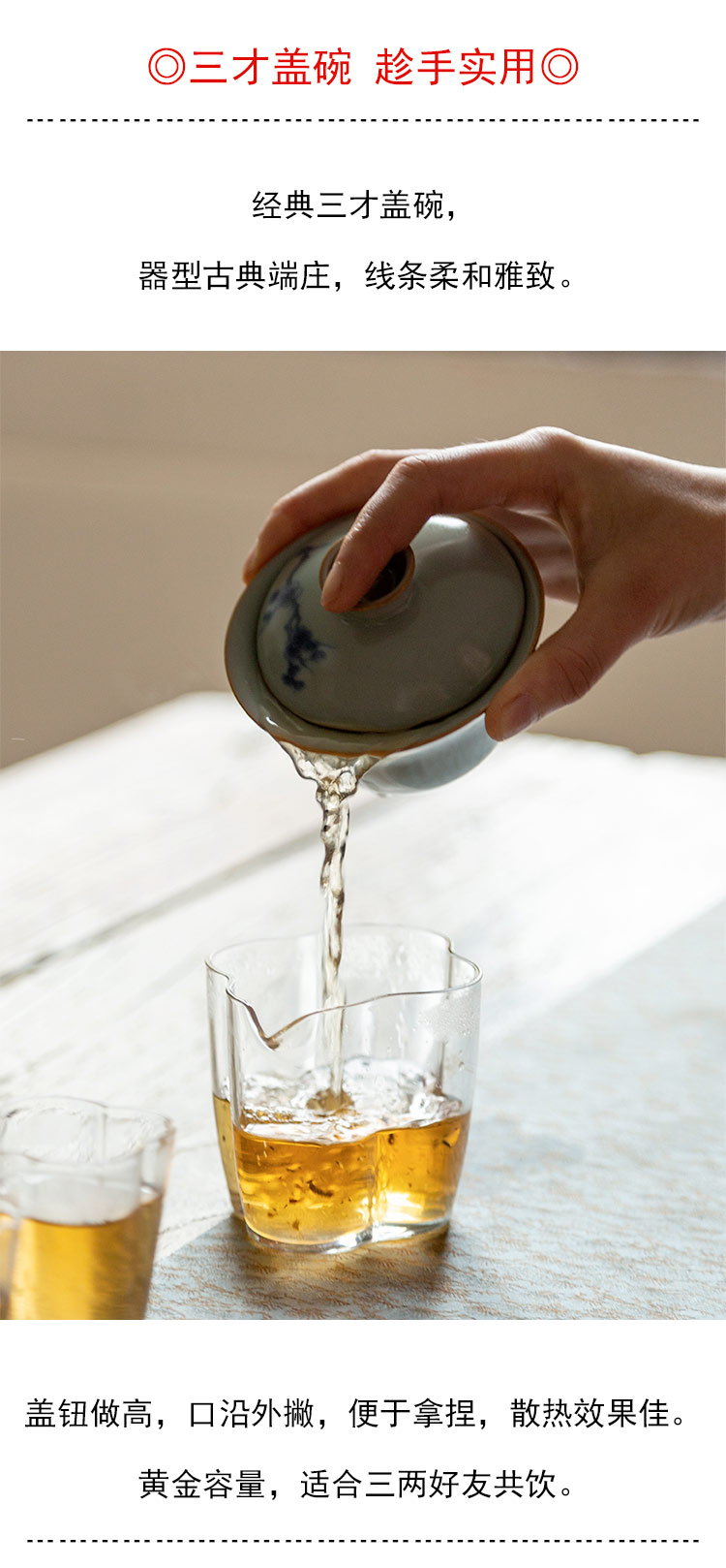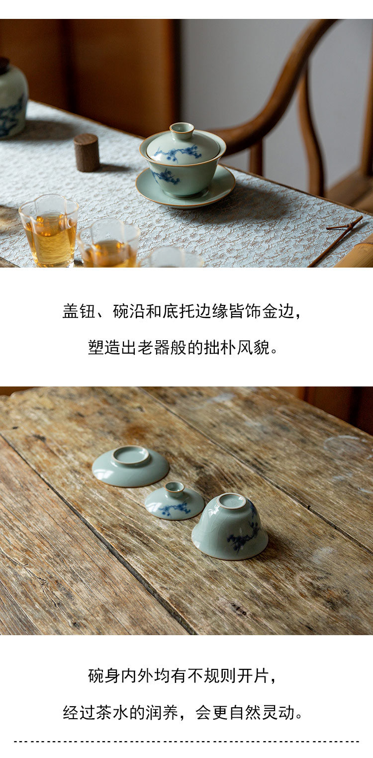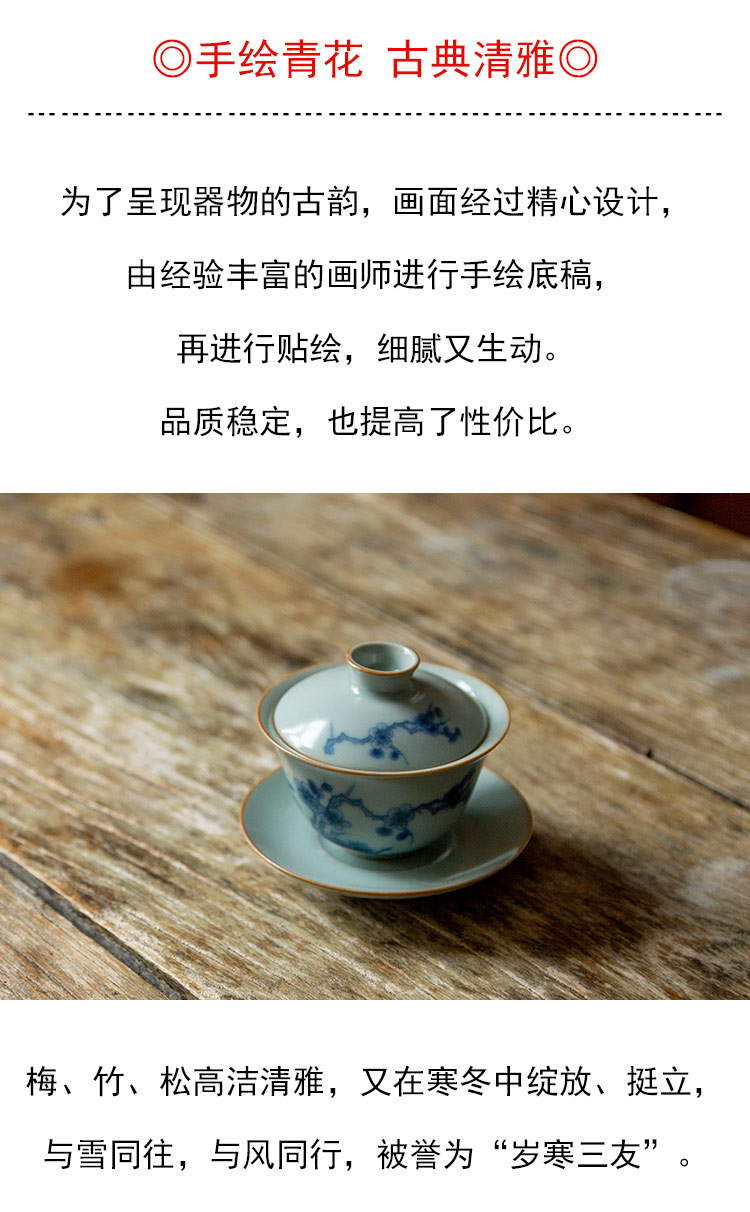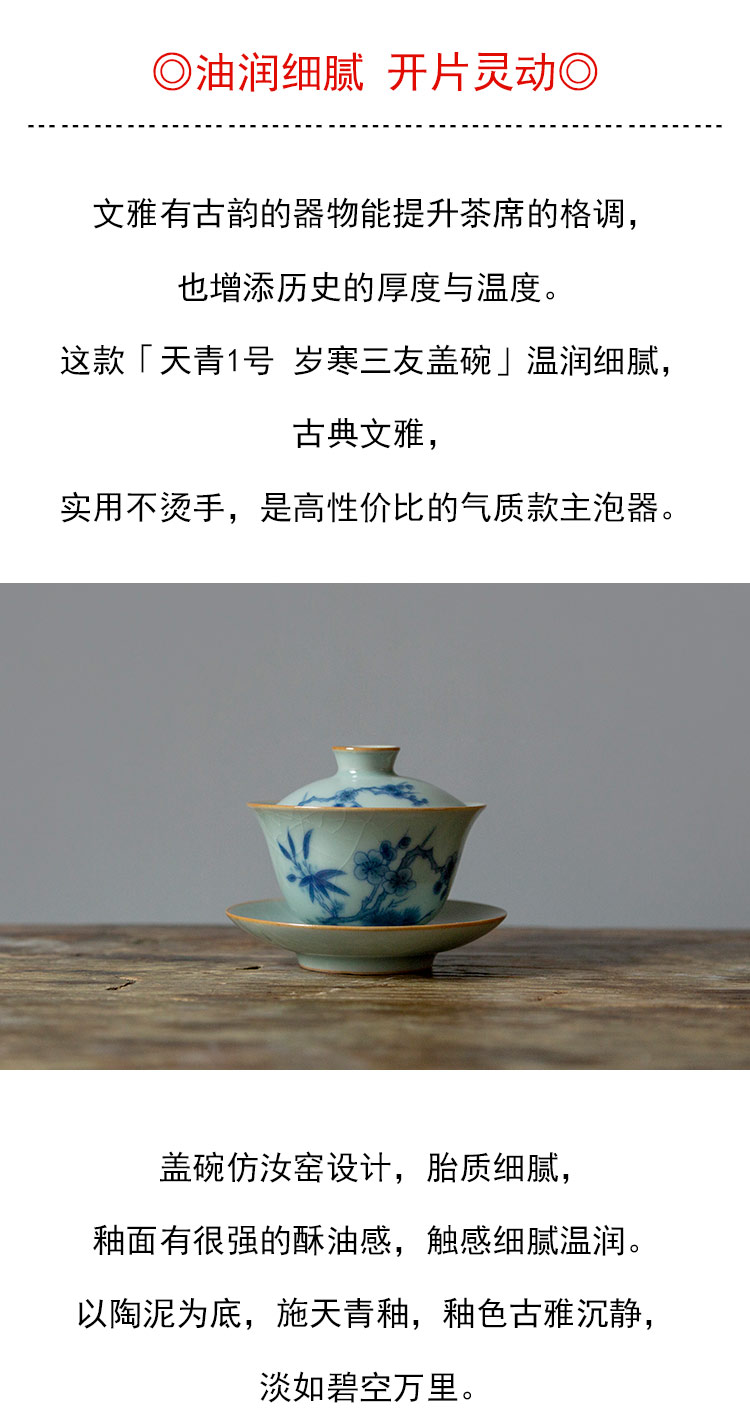 茶香记 天青1号 岁寒三友盖碗 古典文雅 油润细腻 开片灵动