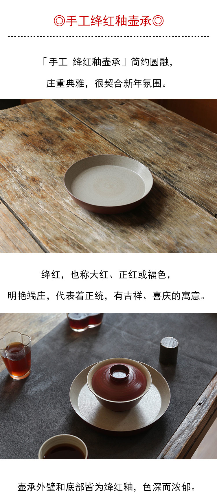 茶香记 手工绛红釉壶承茶道配件陶瓷干泡盘茶盘果盘多用明艳吉祥