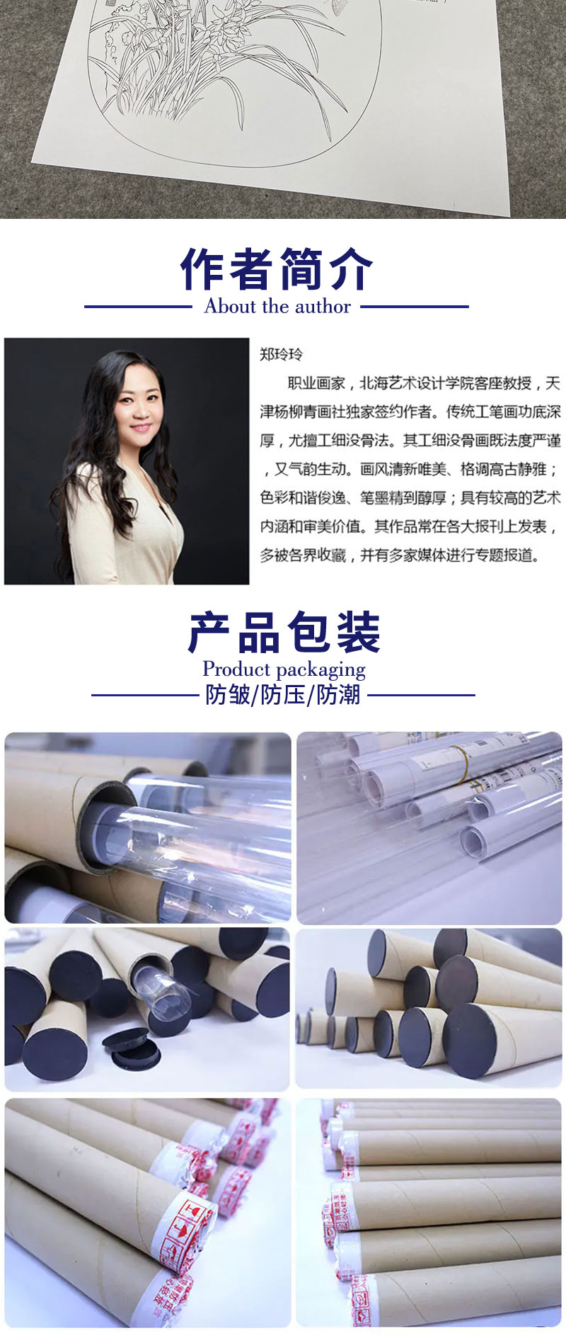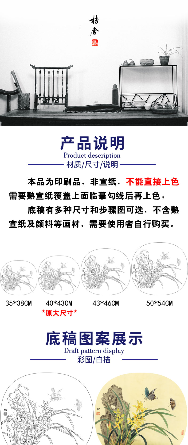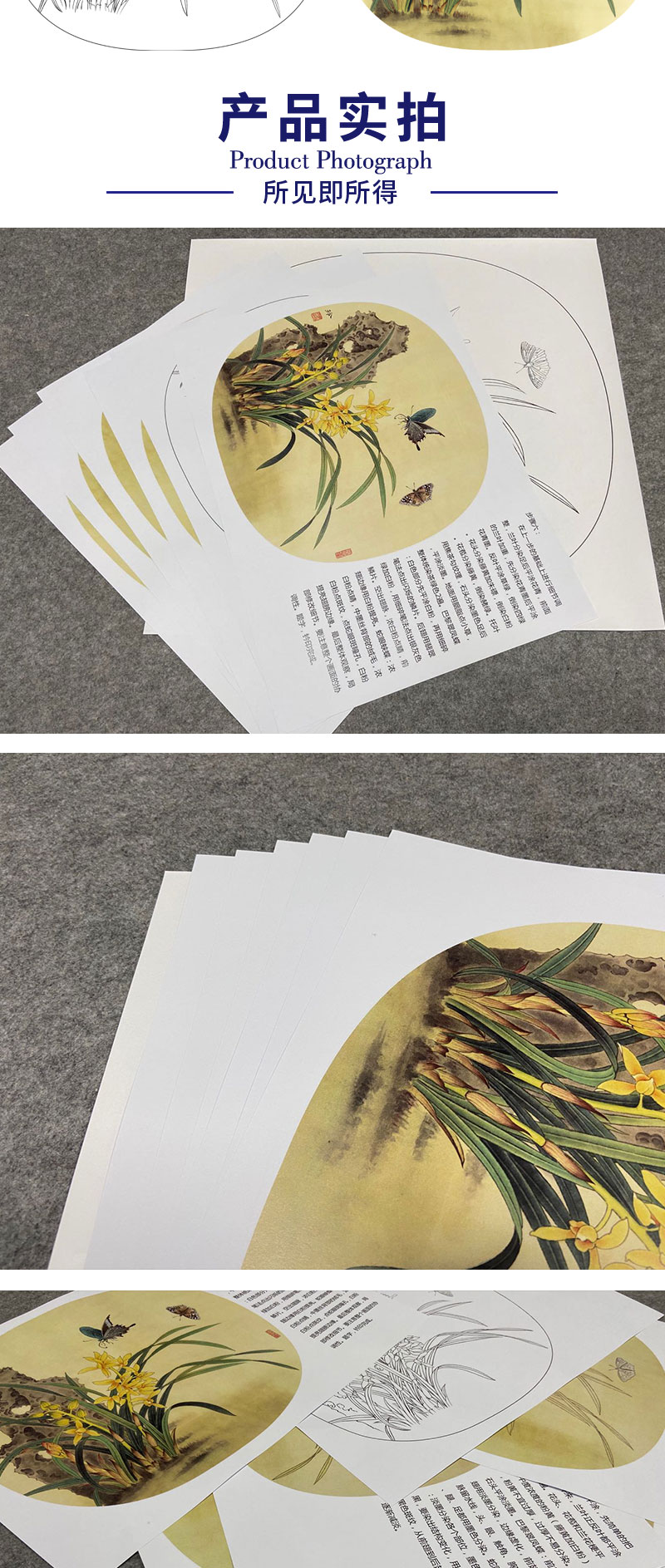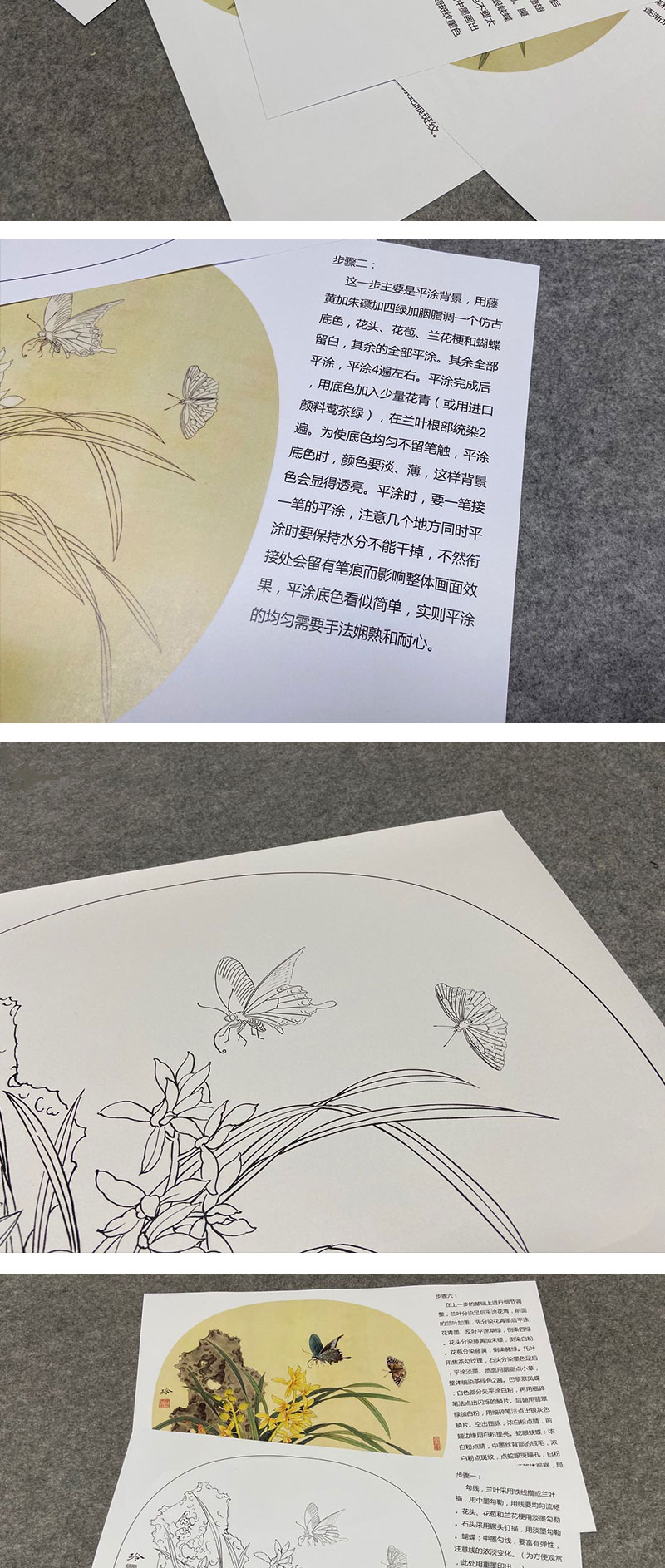【有步骤、大彩图】郑玲玲工笔画白描底稿小品《兰花双蝶》初学者临摹花鸟线稿ZL15