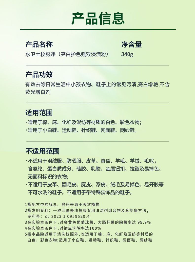 【供货特惠】水卫士校服净 洗护合一去除顽渍活氧去污亮白焕新去汗渍菜渍果渍