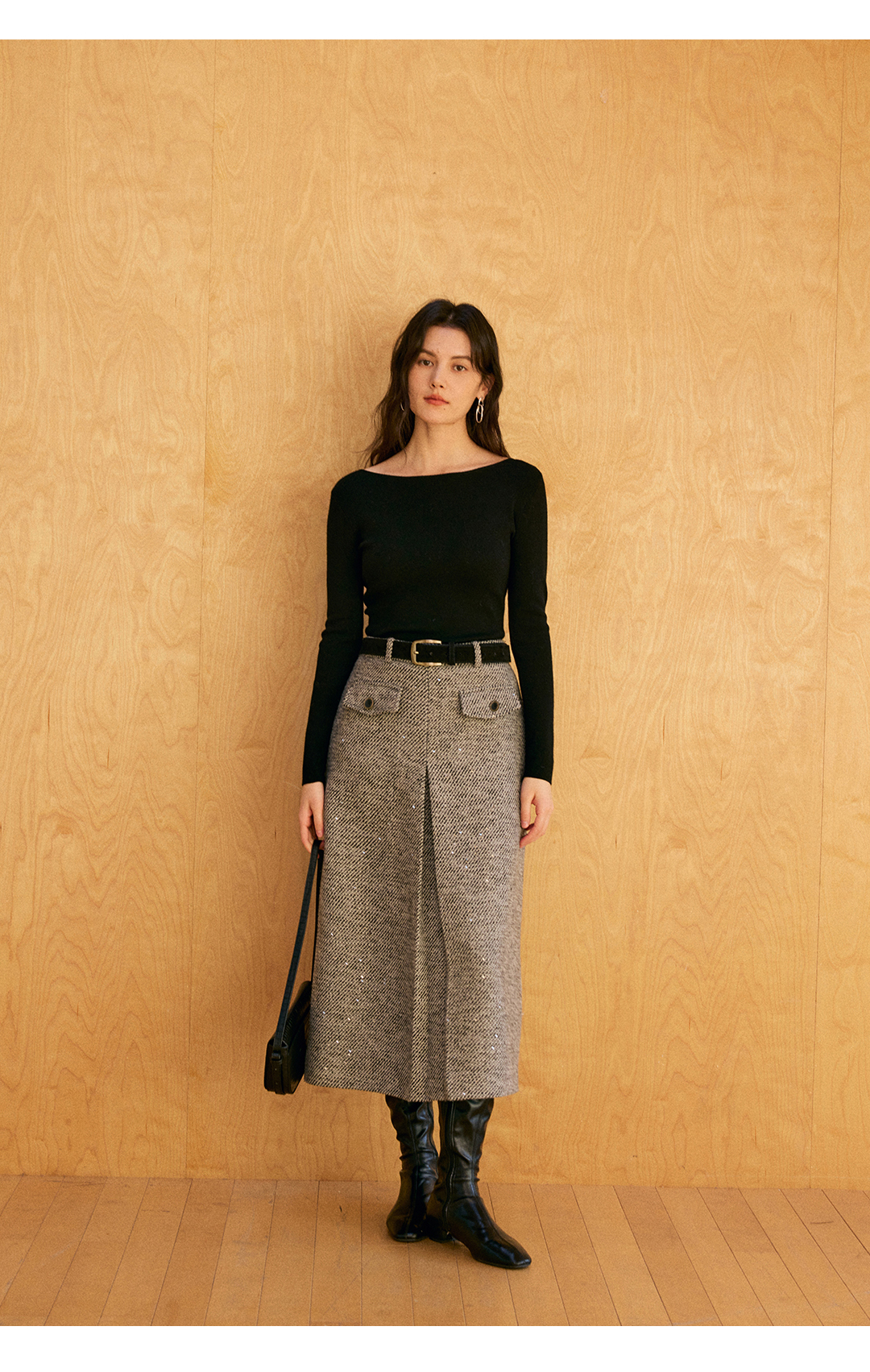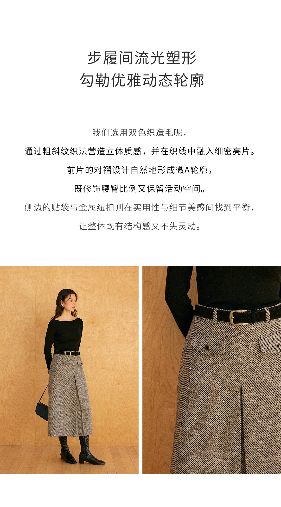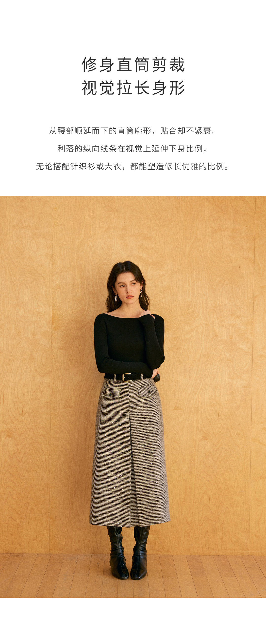 HeyDress亮片直筒对褶半裙