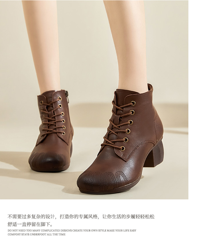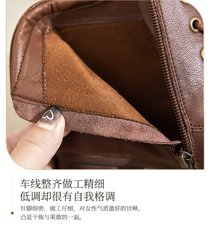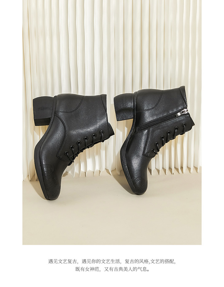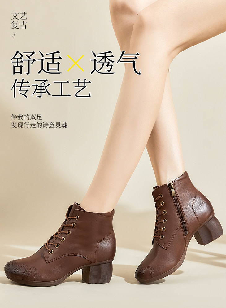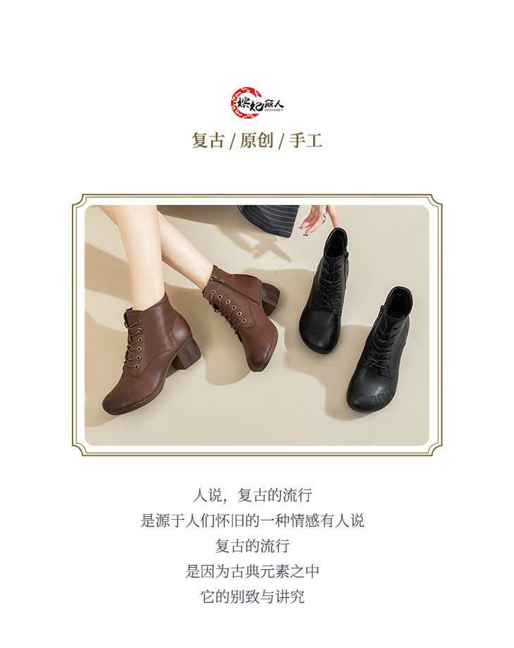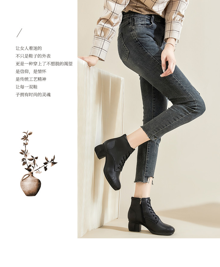 中国风民族风粗跟真皮舒适简约风学院风百搭时尚女式单靴ZY-2013-6