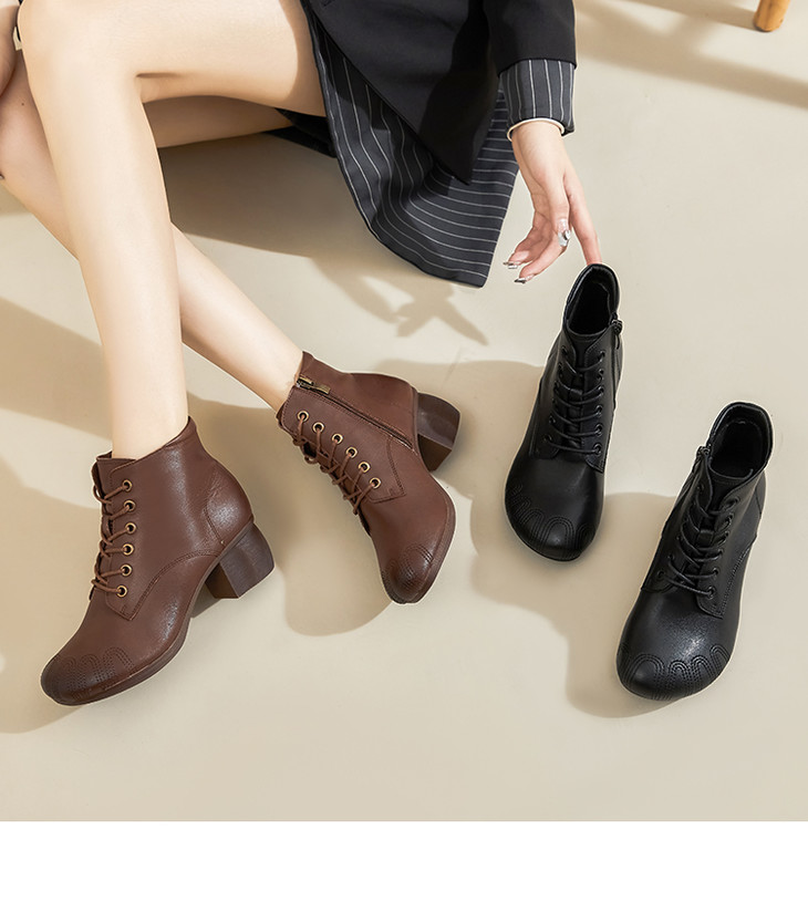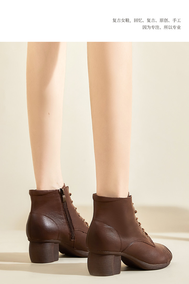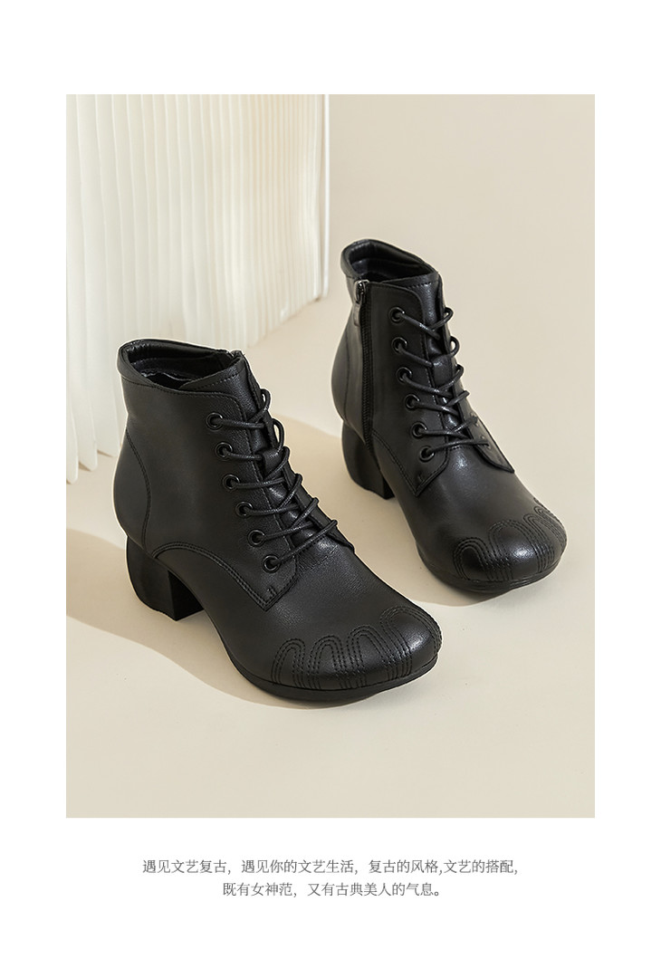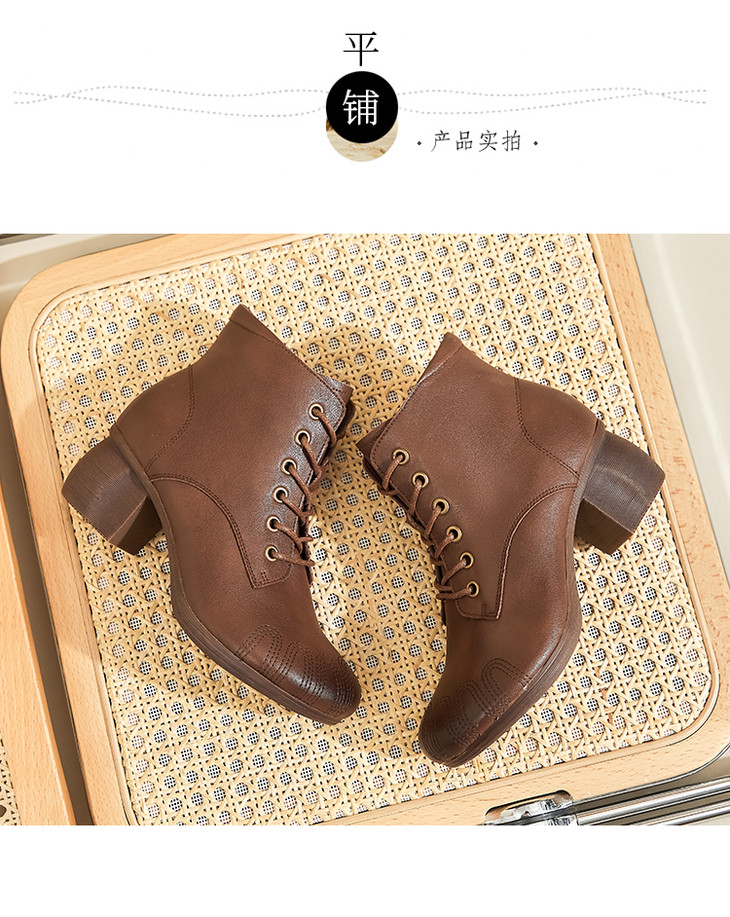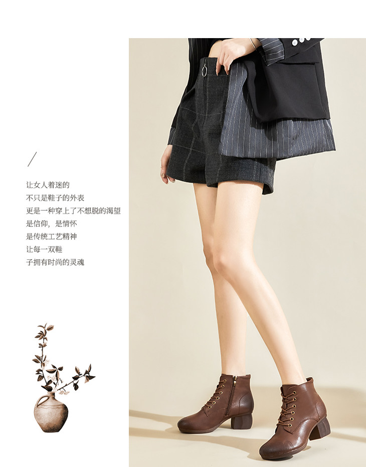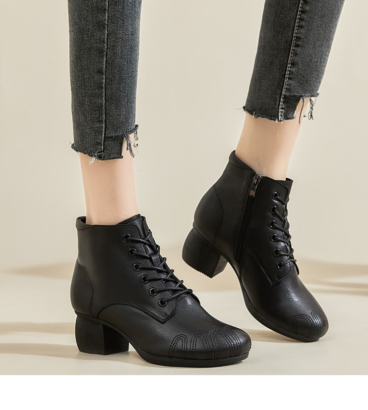 中国风民族风粗跟真皮舒适简约风学院风百搭时尚女式单靴ZY-2013-6