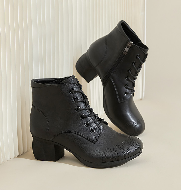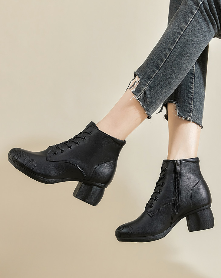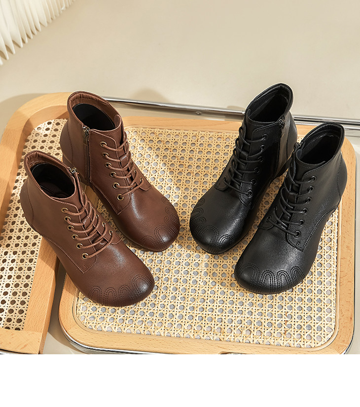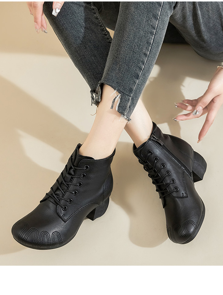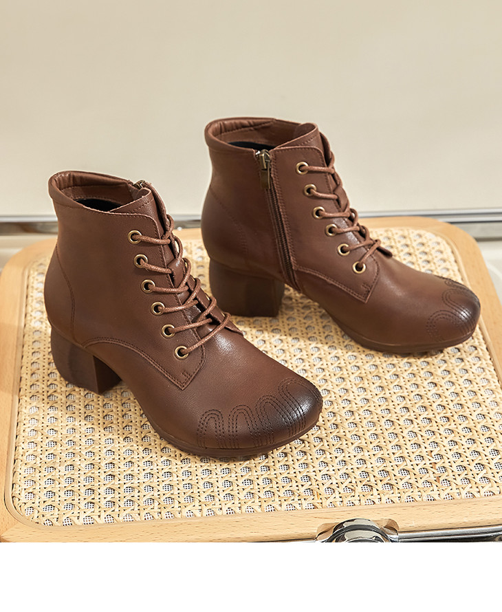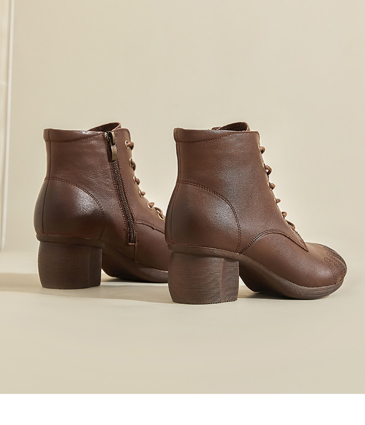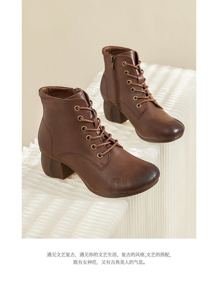 中国风民族风粗跟真皮舒适简约风学院风百搭时尚女式单靴ZY-2013-6