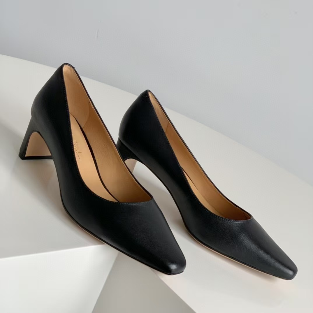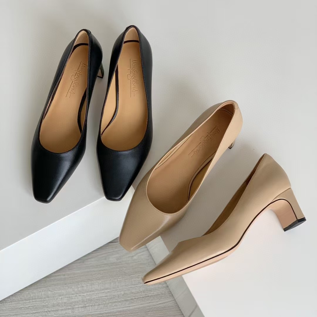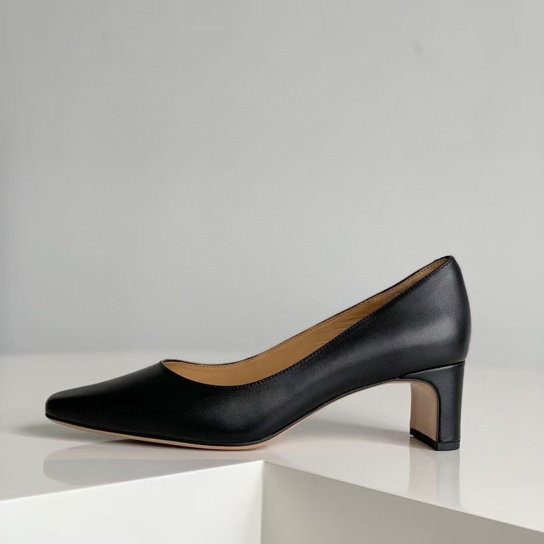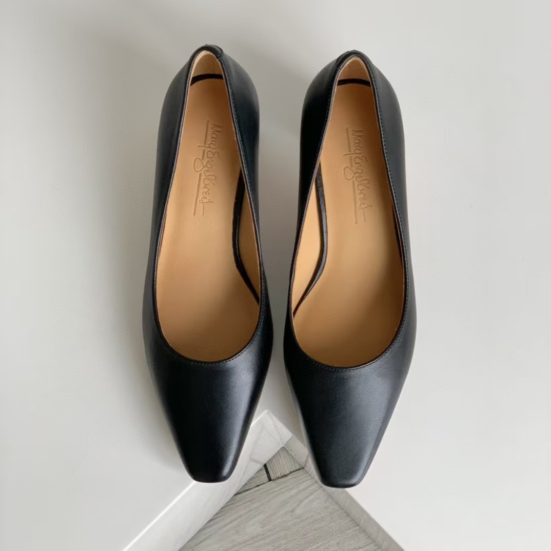 简洁设计,小方头元素的融入,轻复古!5cm与众不同的小扁跟透着优雅与知性!搭配通勤装/知性的套装裙装,气质拿捏稳稳的!楦型秀气且很包脚,非常舒服!面料进口混种羊皮,内里小牛皮,吸汗、亲肤!防滑、耐磨品牌橡胶底