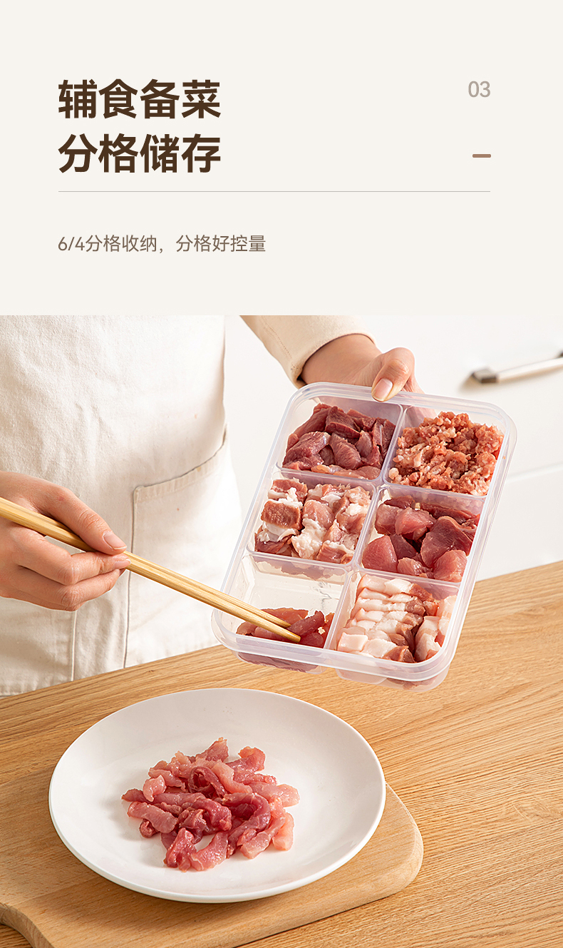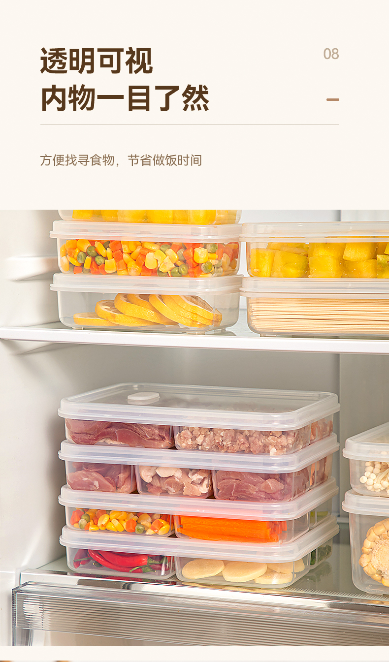 摩登主妇冰箱收纳盒分格冻肉食品级蔬菜食物专用分装盒备餐保鲜盒