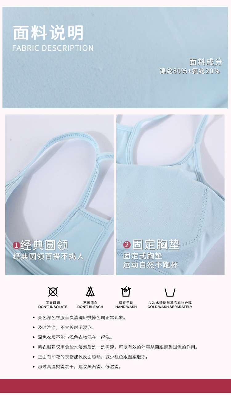 【限时秒】YOGACODE【火树银花系列】固定杯性感吊带细肩带工字美背一体式运动文胸DWC125628