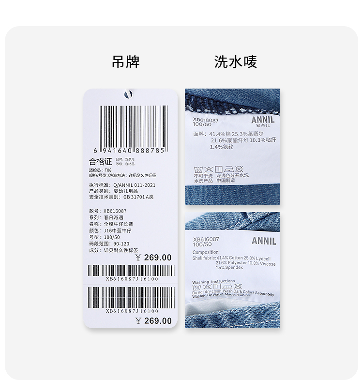 【实体店同款】男童全腰牛仔长裤春季新款安奈儿童装XB616087