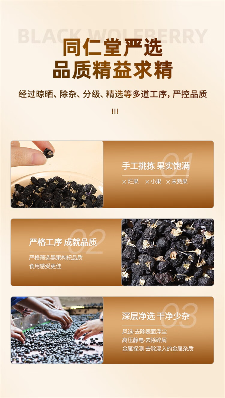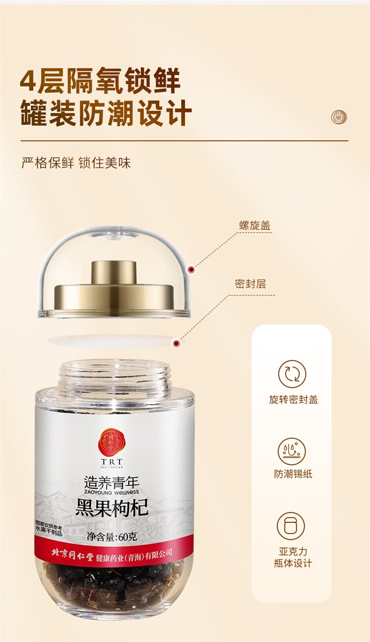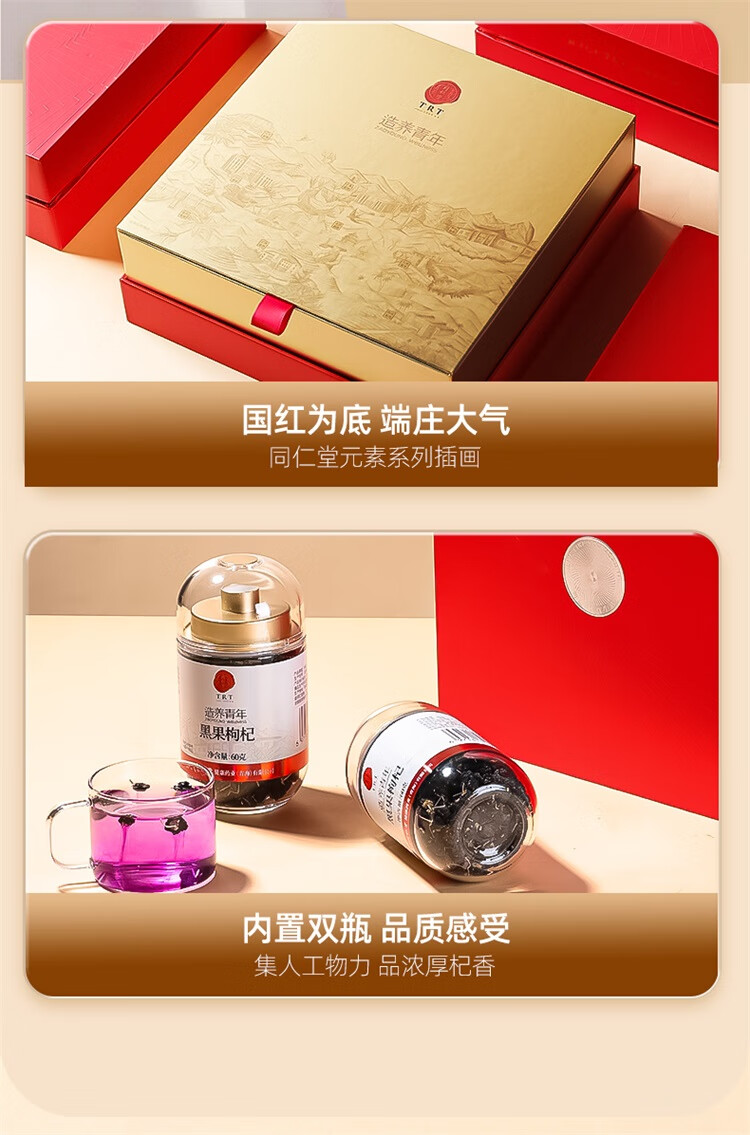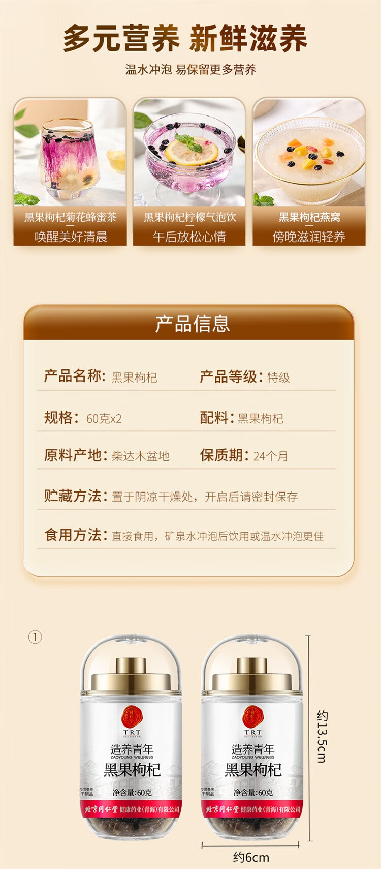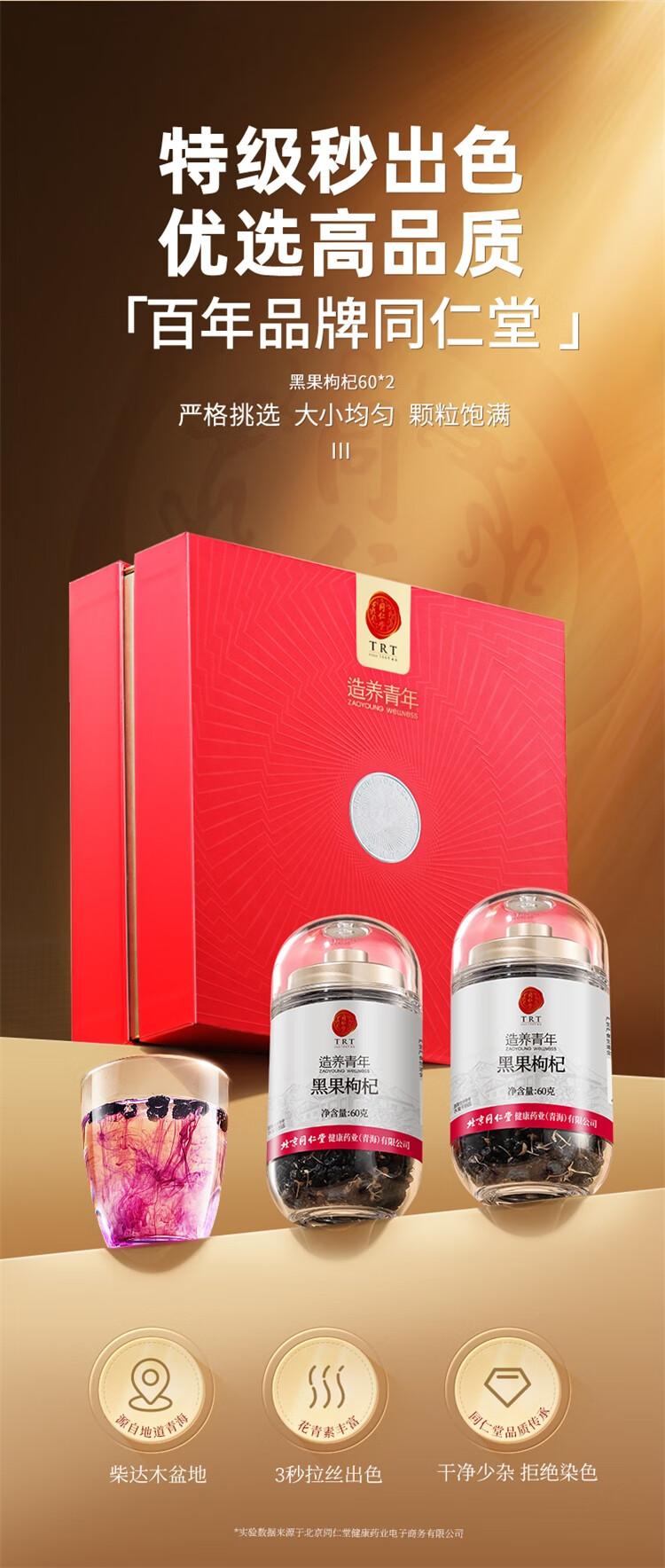 【正宗同仁堂品牌】北京同仁堂 青海柴达木特级黑果枸杞60克/瓶*2罐 礼盒包装SY