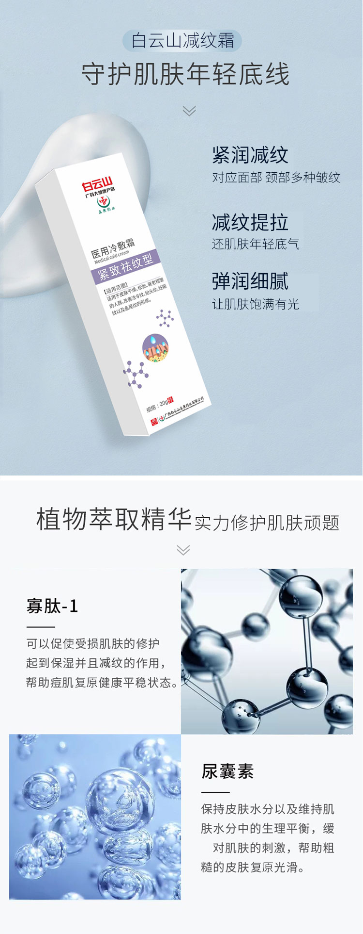 【买2送1,买3送2,买5送4】白云山祛纹霜法令纹鱼尾纹克星每天一抹轻松淡化细纹皱纹
