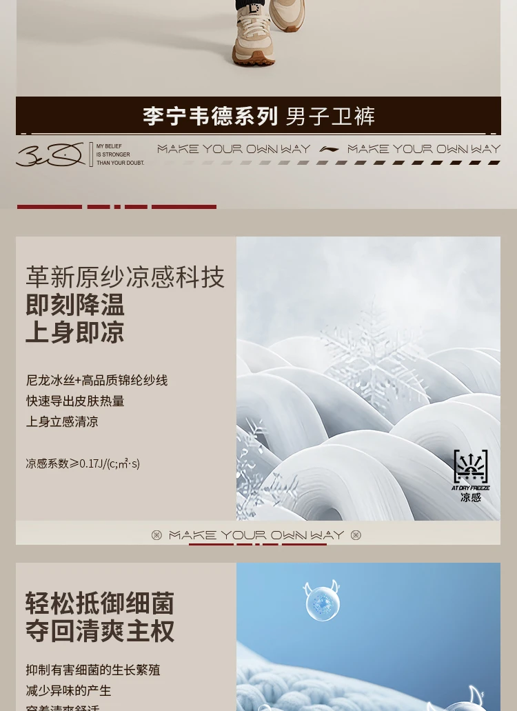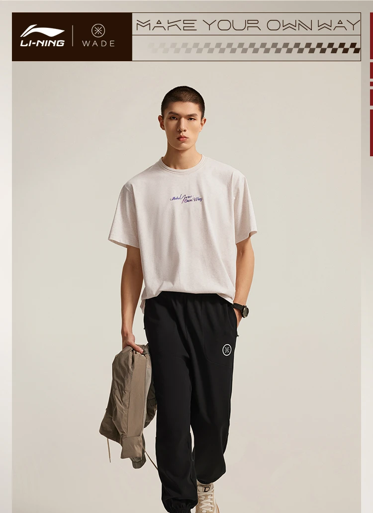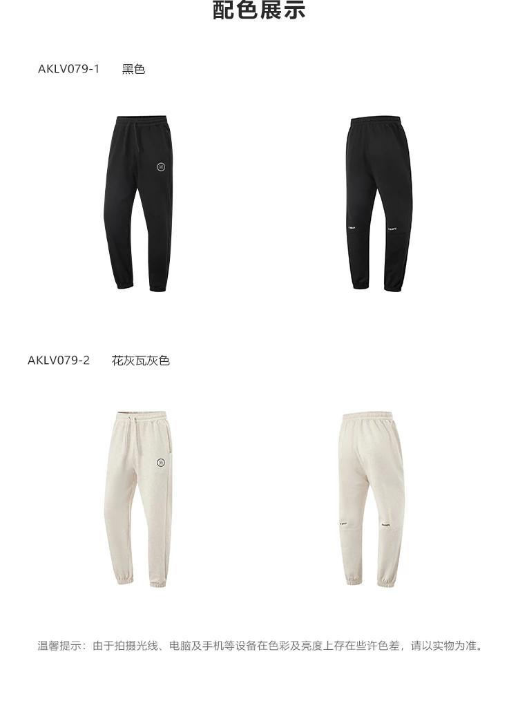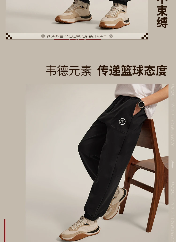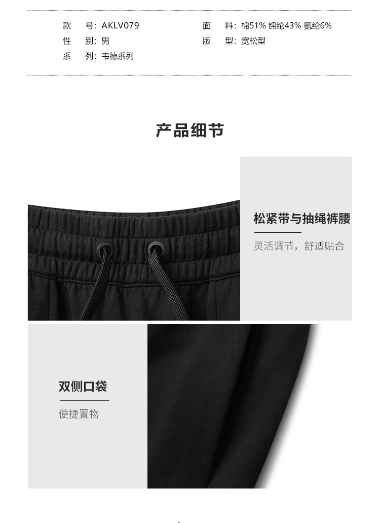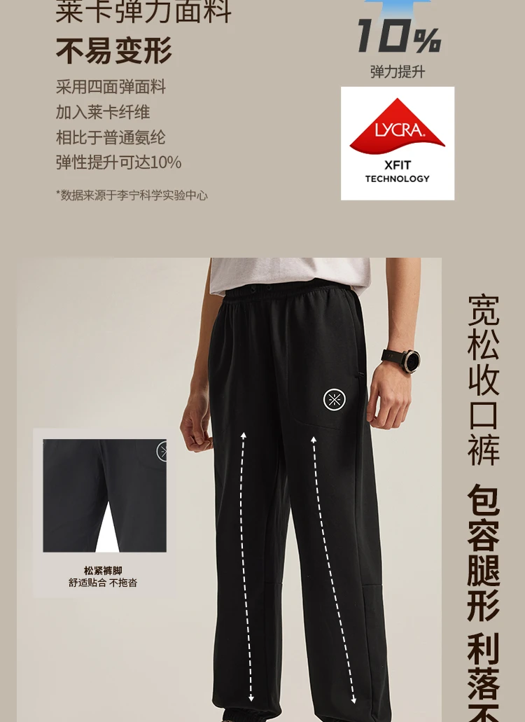 李宁韦德系列男子束脚冰感舒适抗菌宽松基础收口裤卫裤AKLV079