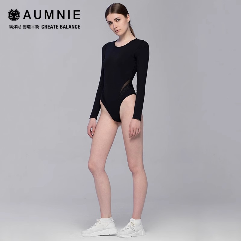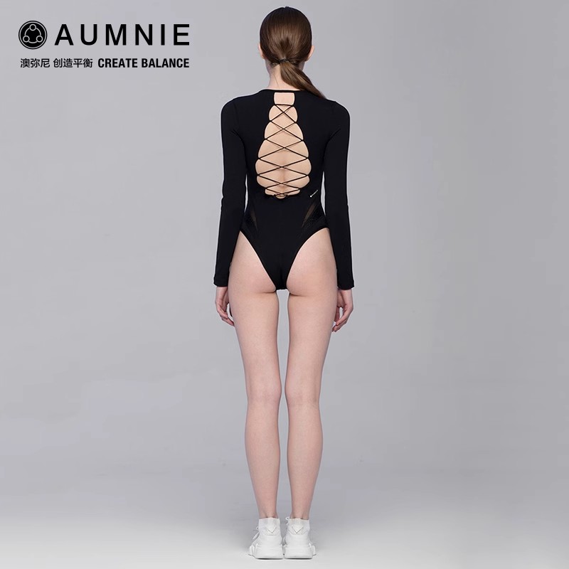AUMNIE澳弥尼症结连体衣长袖性感后背镂空设计高级运动健身瑜伽服