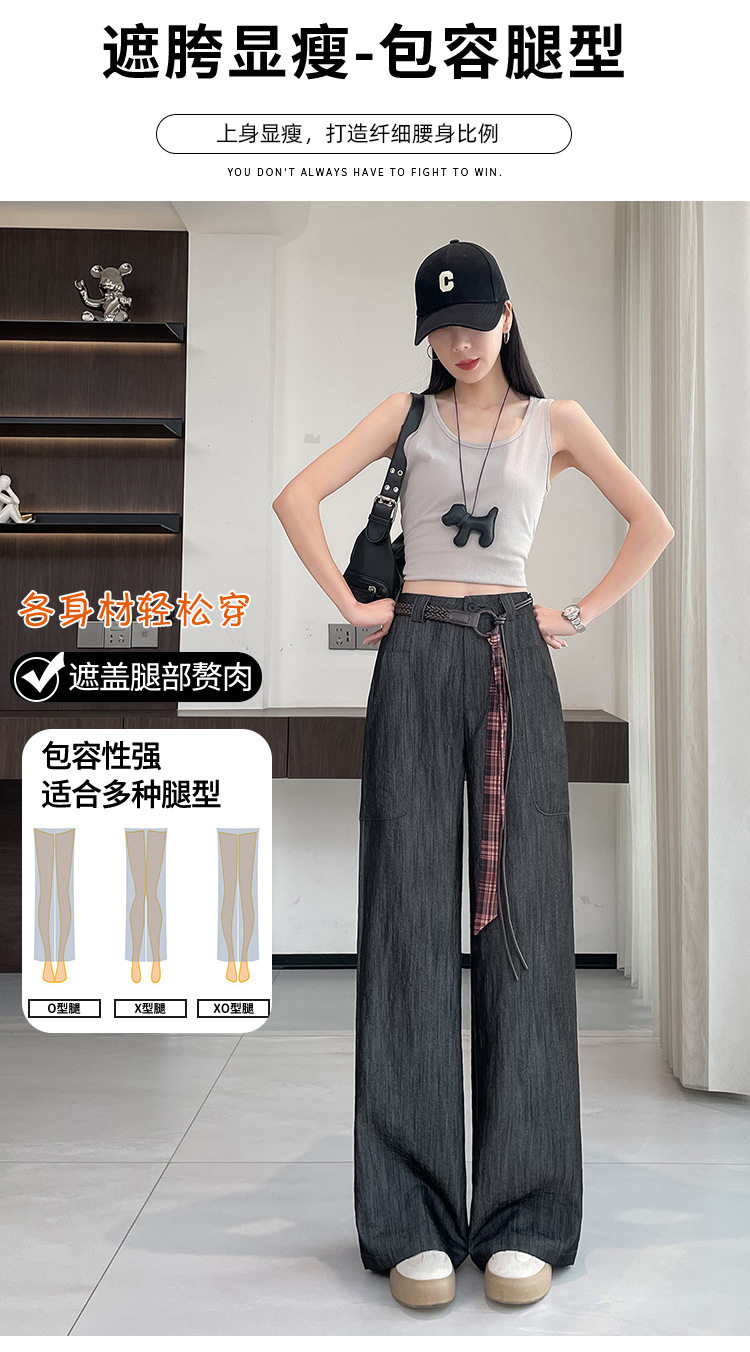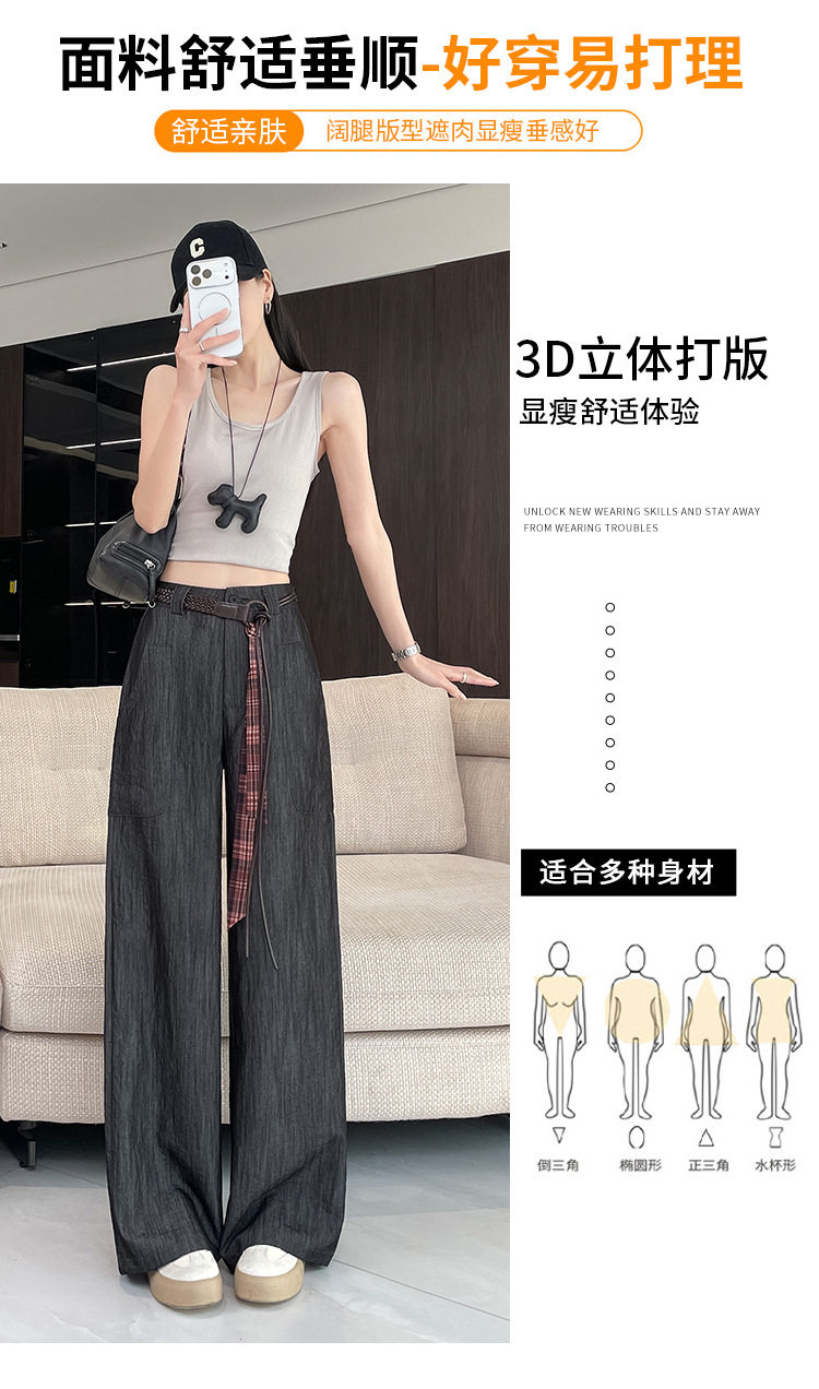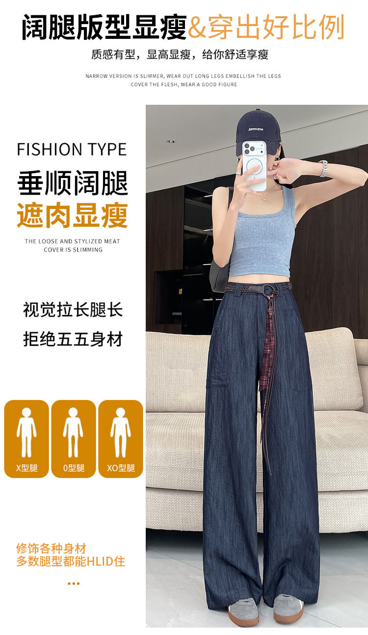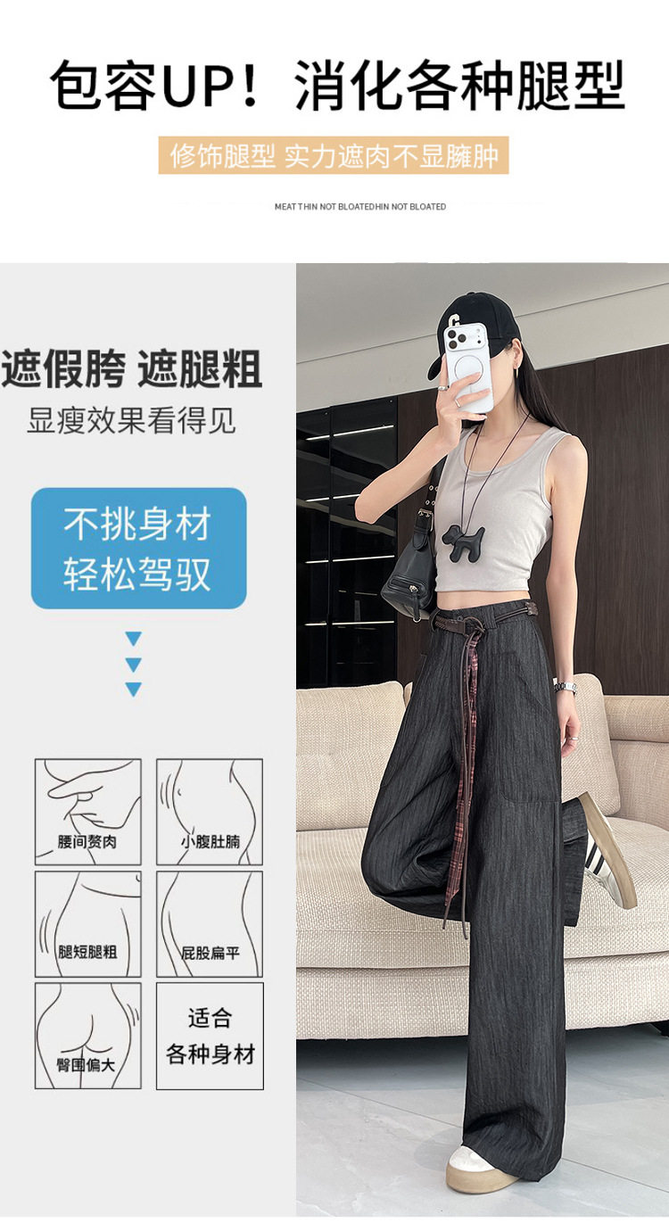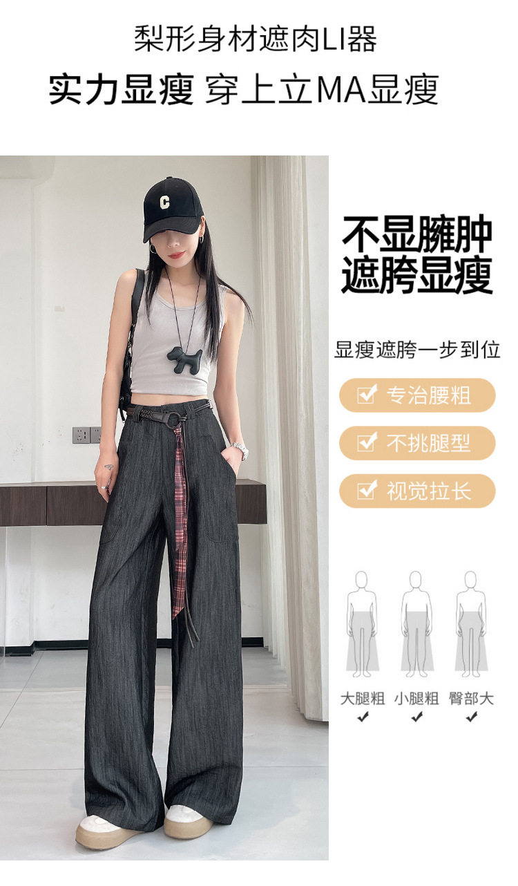 仿牛仔窄版阔腿裤2026春夏季新高腰垂感宽松遮肉显瘦小个子直筒长裤  NDK-L632 商品图4