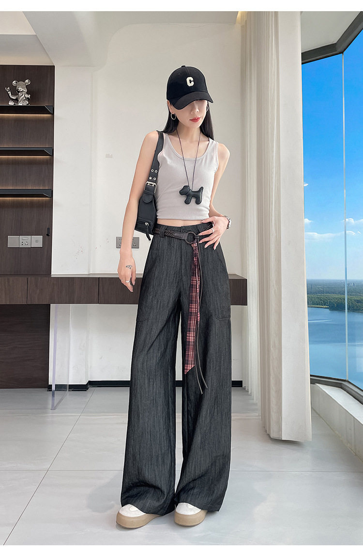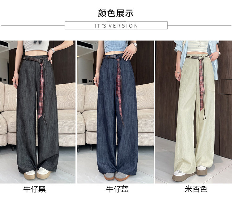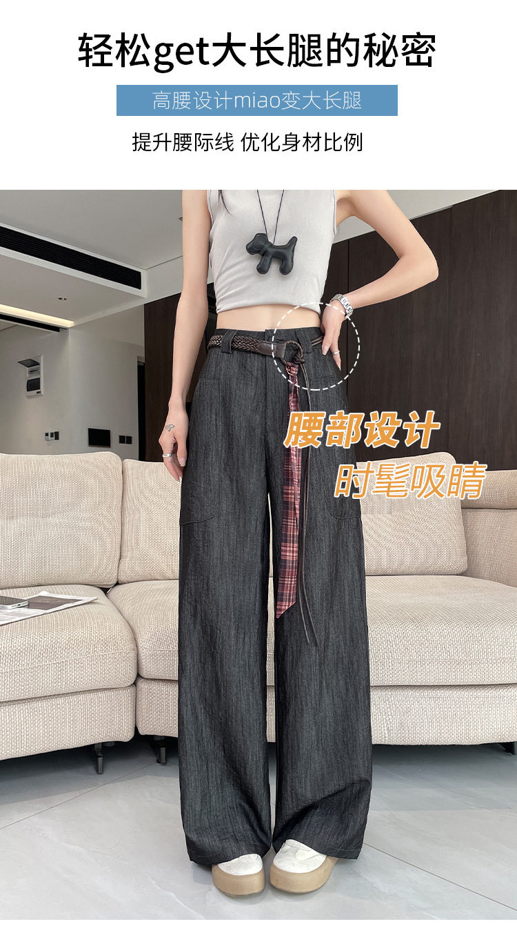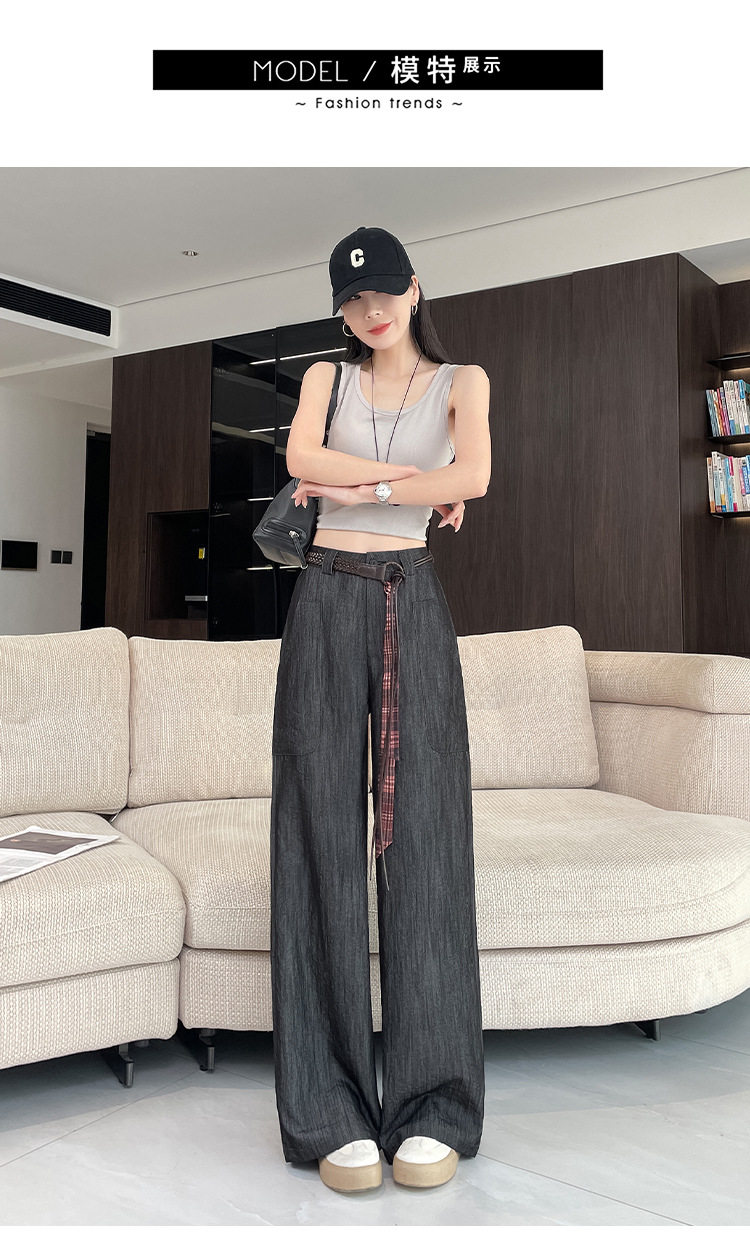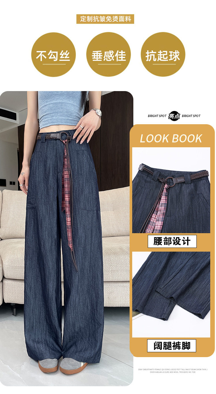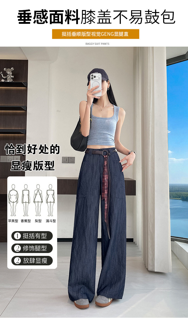 仿牛仔窄版阔腿裤2026春夏季新高腰垂感宽松遮肉显瘦小个子直筒长裤  NDK-L632 商品图4