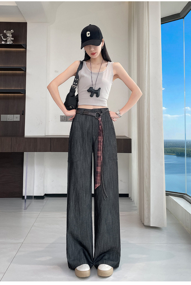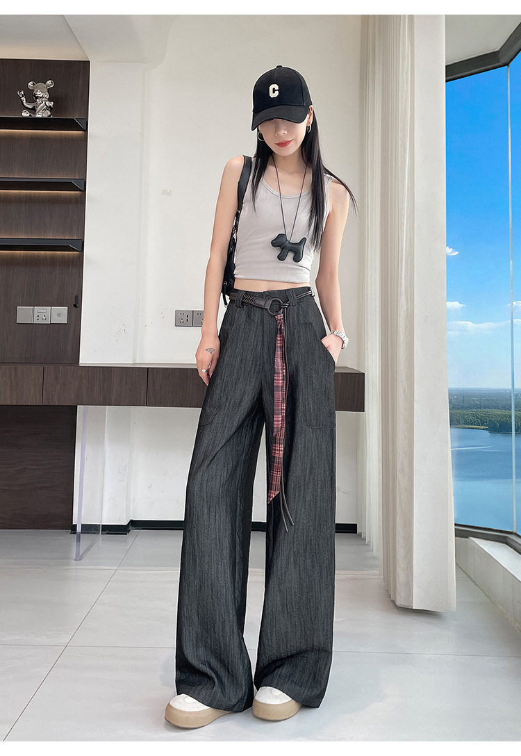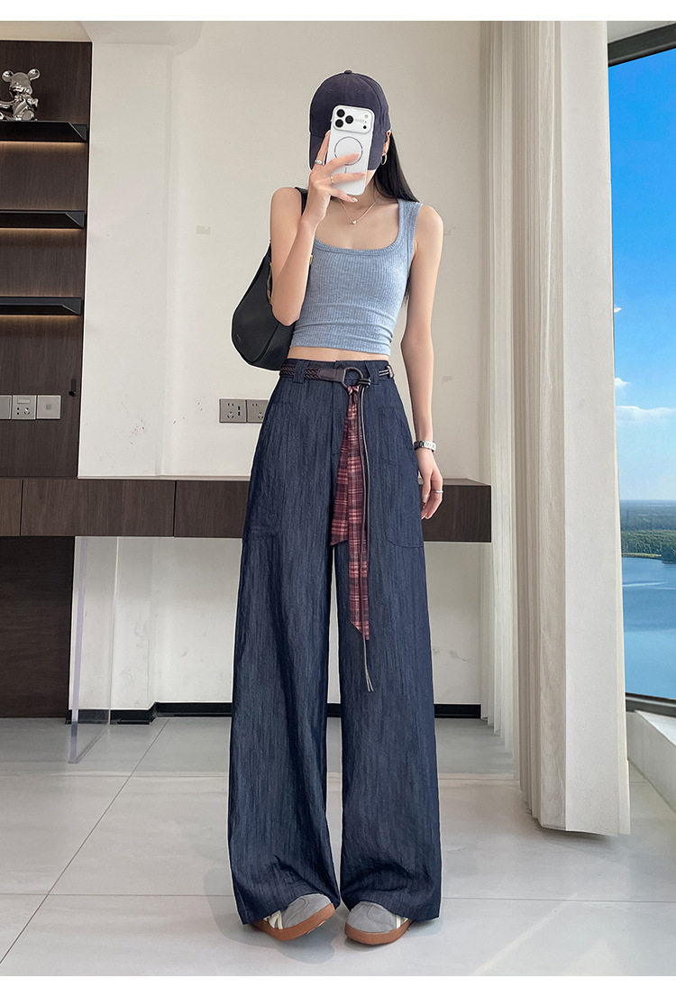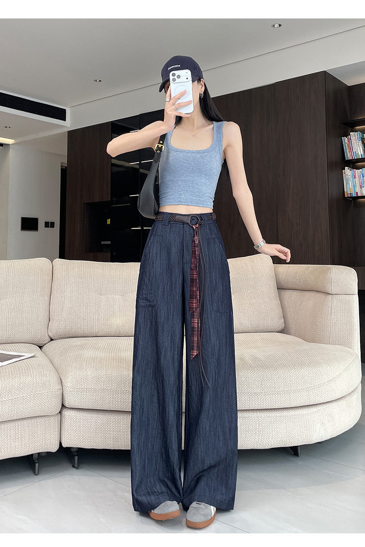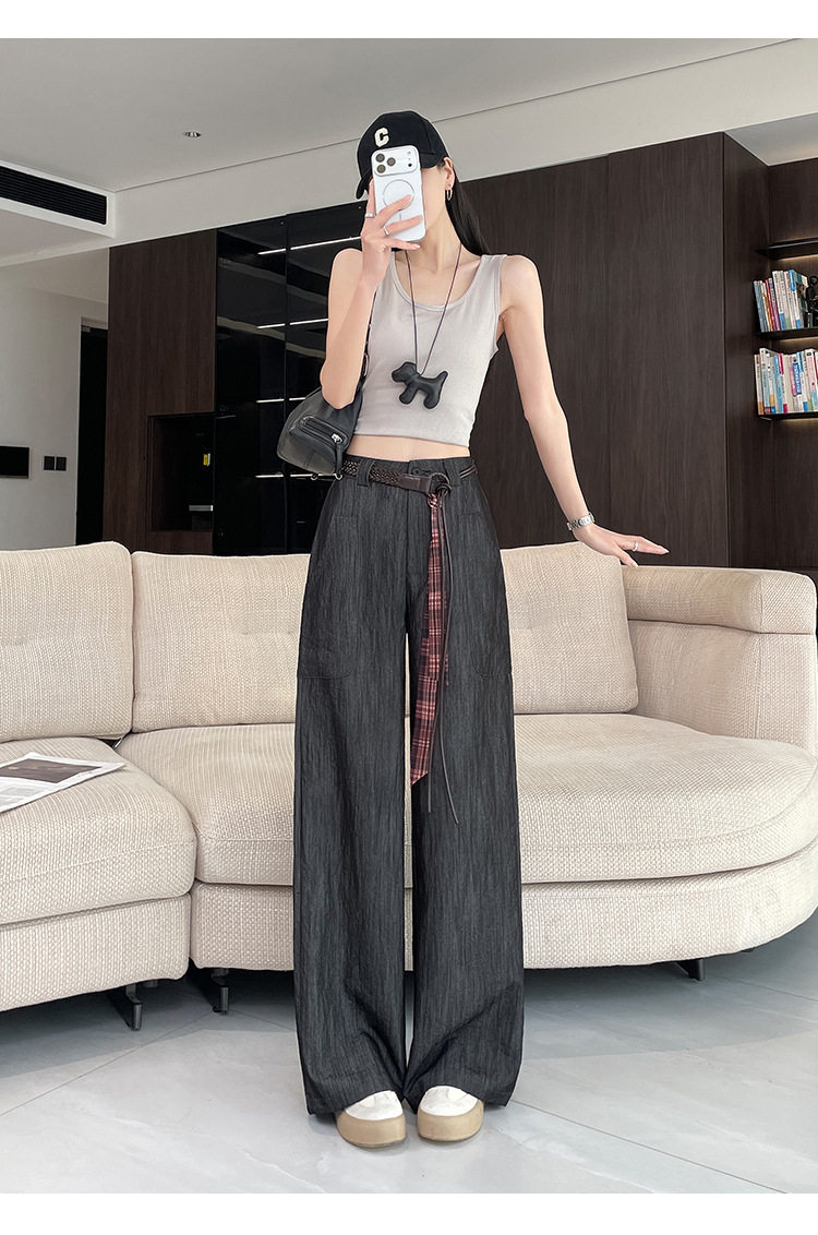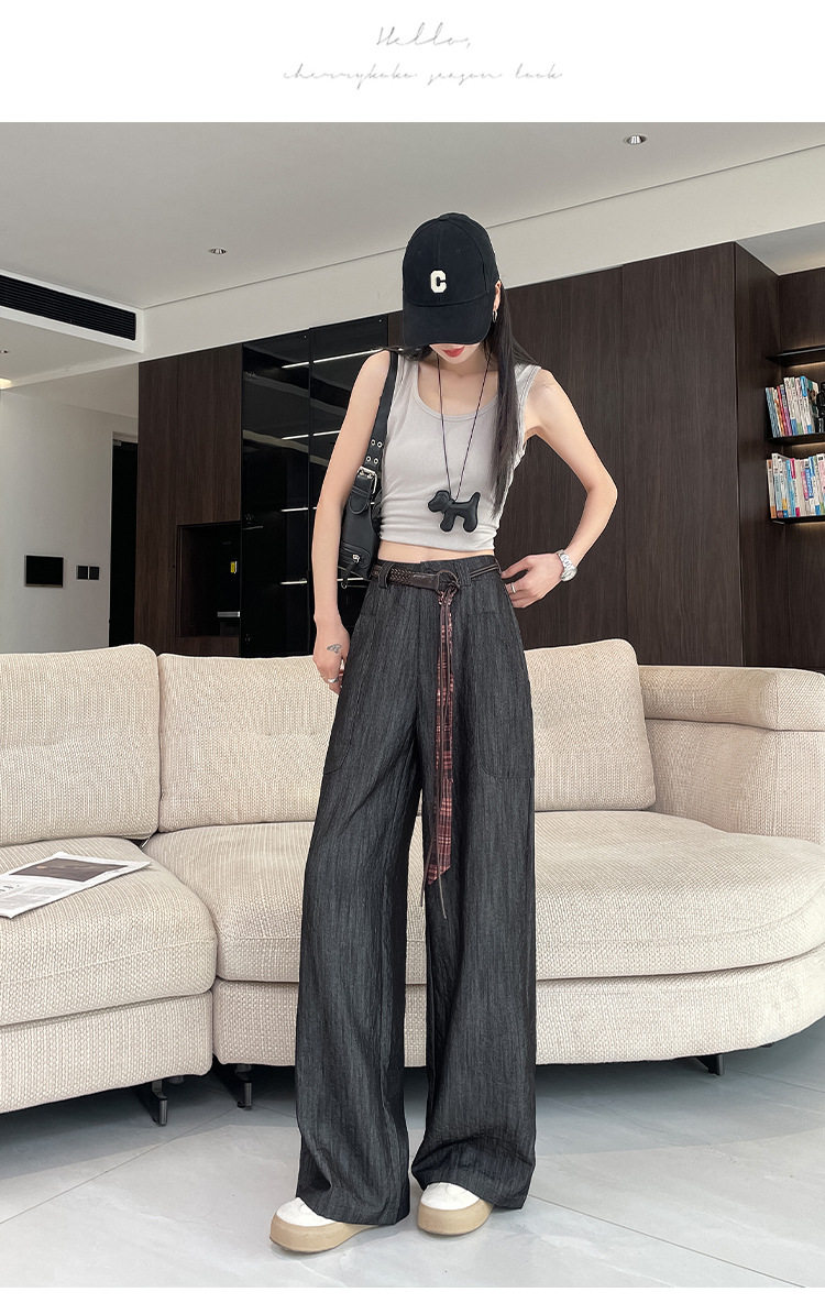 仿牛仔窄版阔腿裤2026春夏季新高腰垂感宽松遮肉显瘦小个子直筒长裤  NDK-L632 商品图4