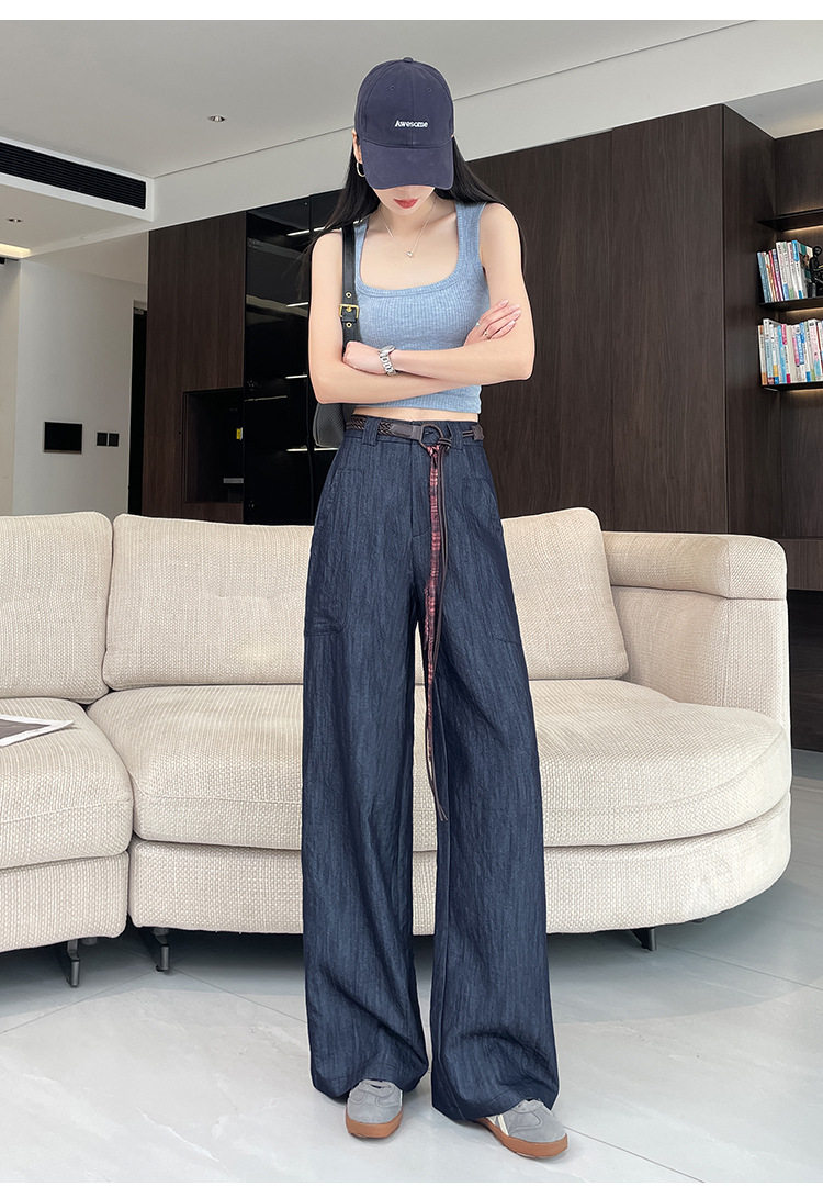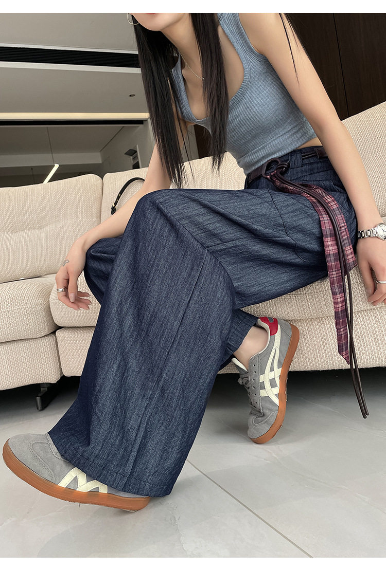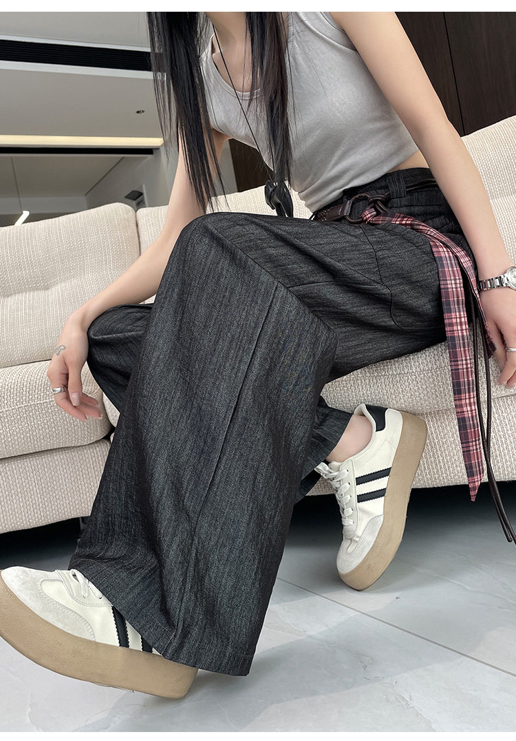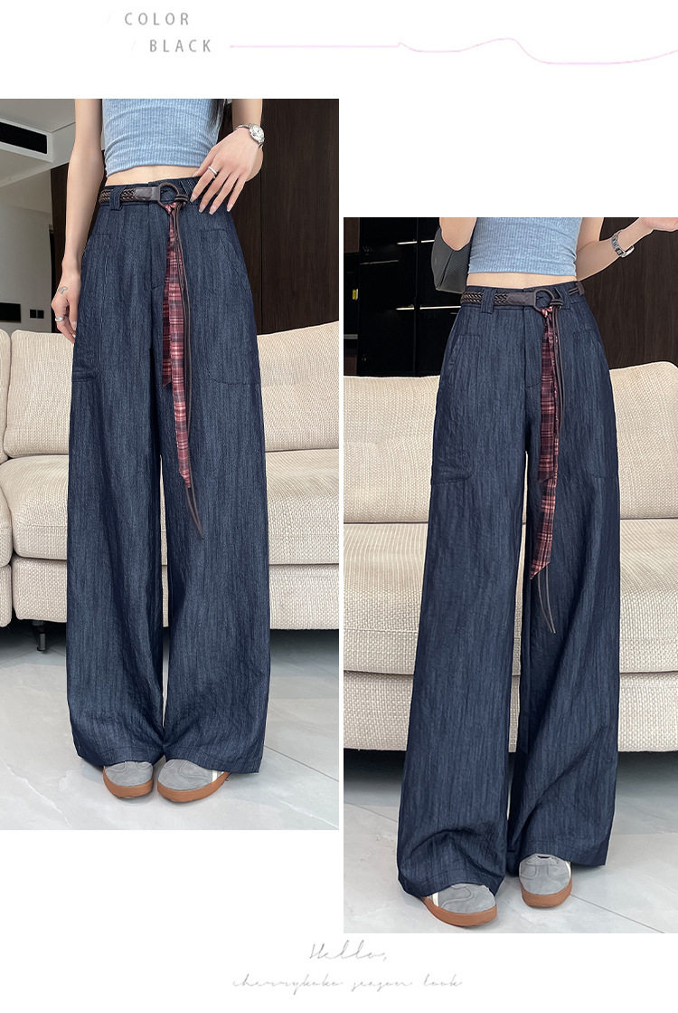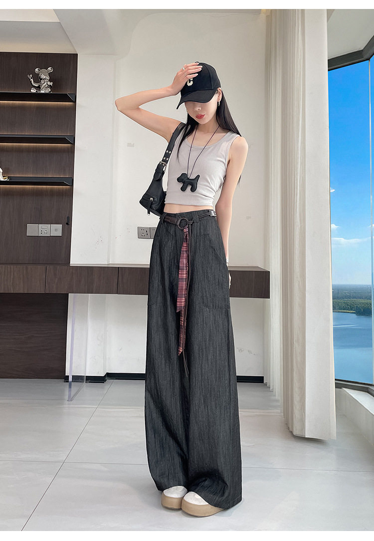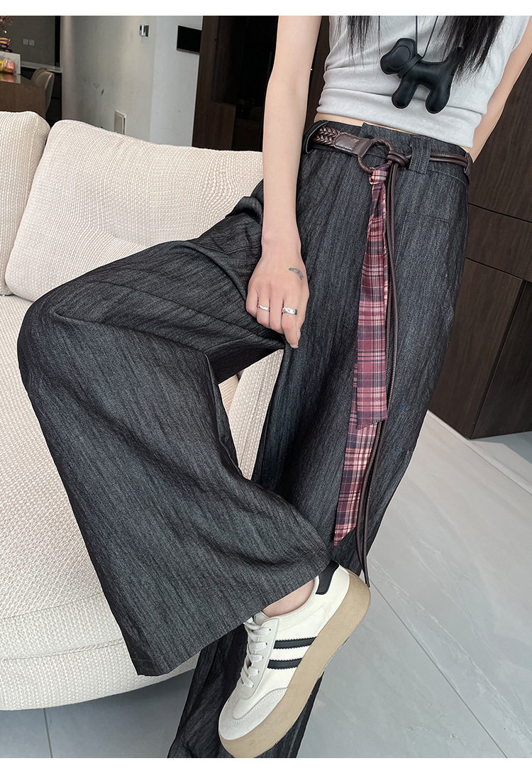 仿牛仔窄版阔腿裤2026春夏季新高腰垂感宽松遮肉显瘦小个子直筒长裤  NDK-L632 商品图4