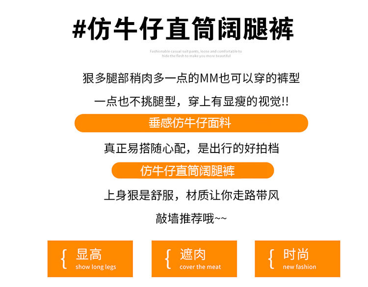 仿牛仔窄版阔腿裤2026春夏季新高腰垂感宽松遮肉显瘦小个子直筒长裤  NDK-L632 商品图2