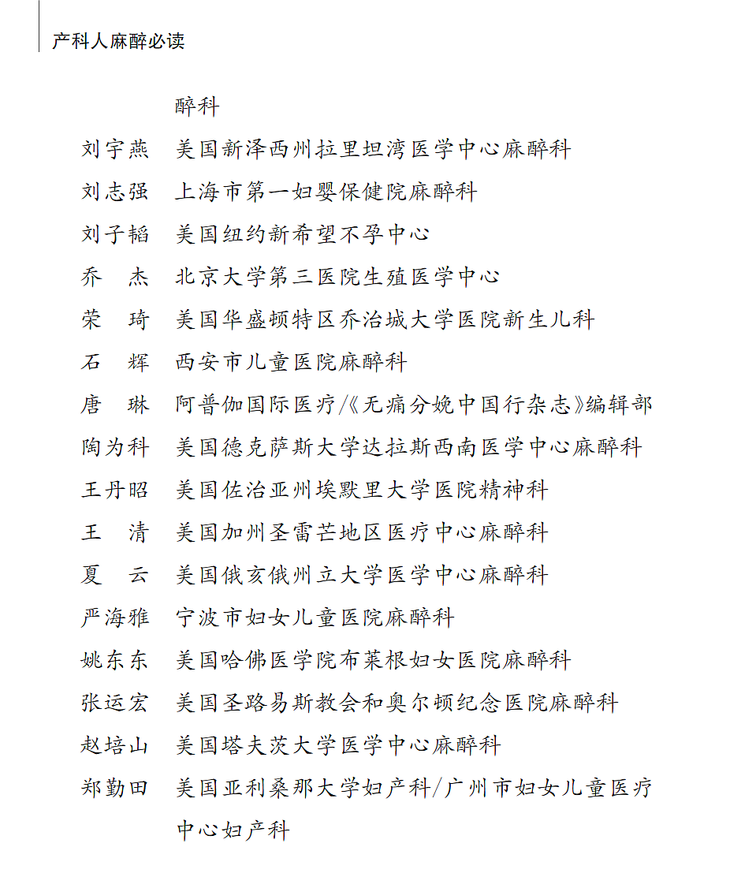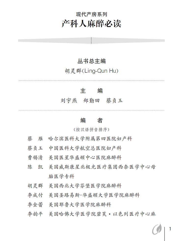 刘宇燕,美国执业麻醉医生。1986年毕业于北京医科大学医疗系。北京协和医院妇产科住院医及住院总培训4年。后赴美从事生物医学基础研究。在美国完成麻醉住院医师培训,以及心脏麻醉专科培训。从2002年至今,在美国做临床麻醉医生,现任职于新泽西拉里坦湾医疗中心。自2015年起参加“无痛分娩中国行”公益活动,负责协调管理“高级产科麻醉123计划”,担任团队领队,先后去了多家医院进行中国行交流教学活动。经历了从妇产科向麻醉科的“转行”,刘医生对产科与麻醉科医生的专业分工与紧密合作的重要性深有体验和感触,因此特为故乡的产科医生和助产士们主编了一本《产科人麻醉必读》,为产科人了解麻醉学、理解麻醉人架起沟通交流的桥梁。
