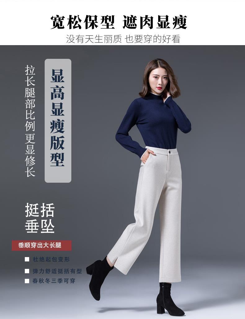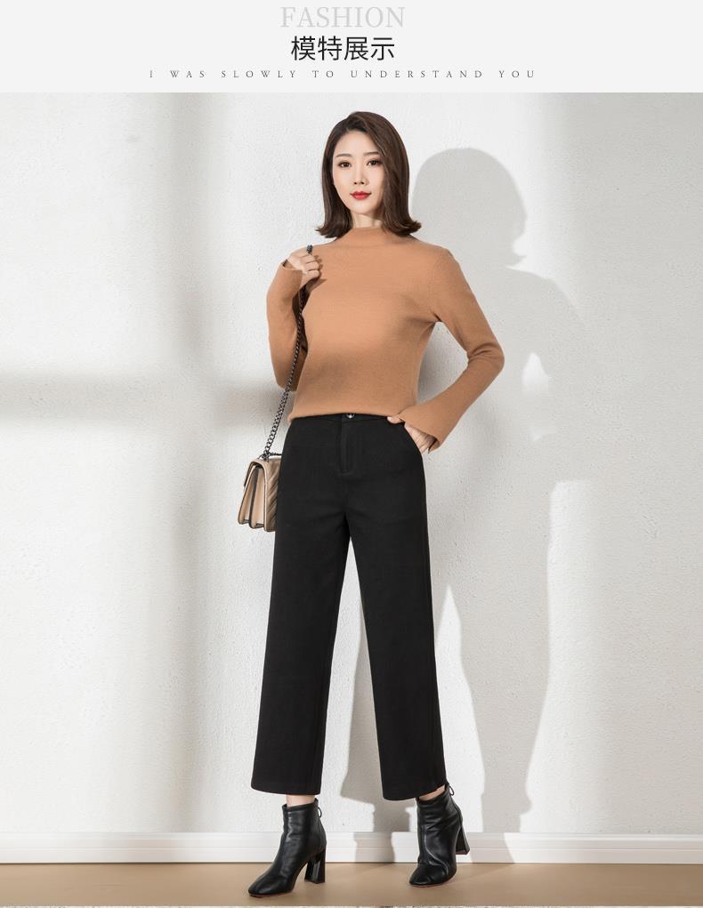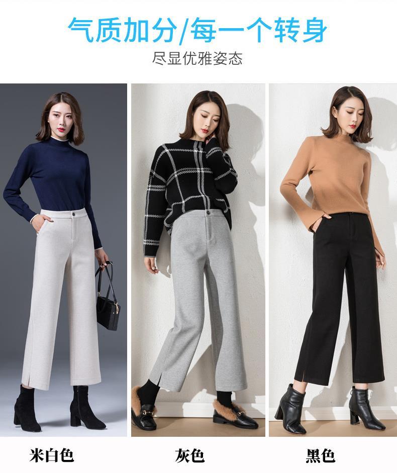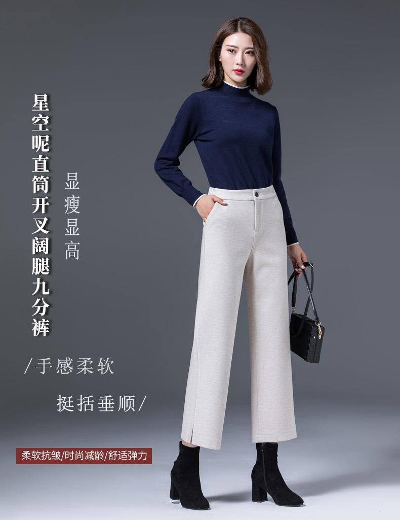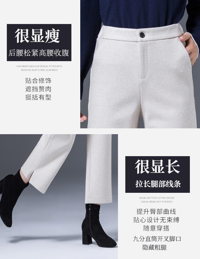 AA YF毛呢九分裤直筒休闲裤小个子阔腿裤