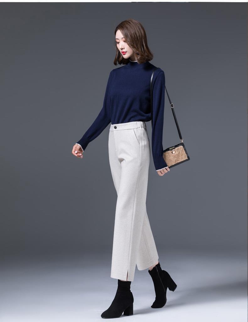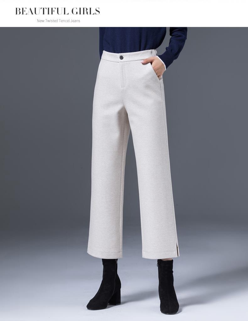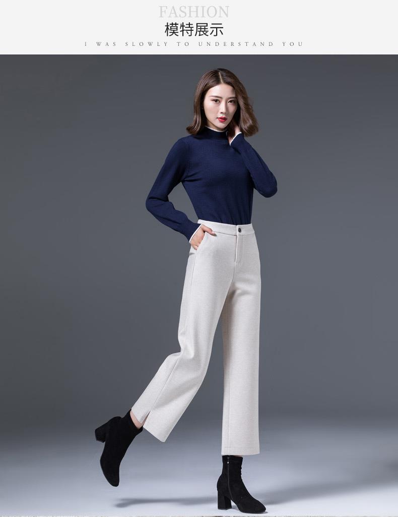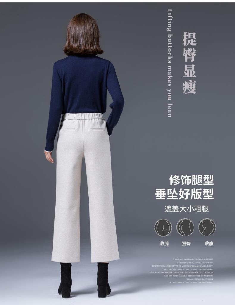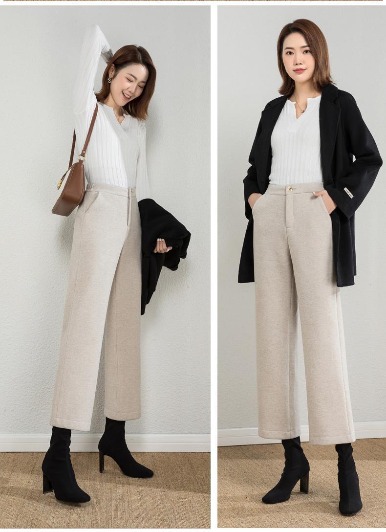 AA YF毛呢九分裤直筒休闲裤小个子阔腿裤