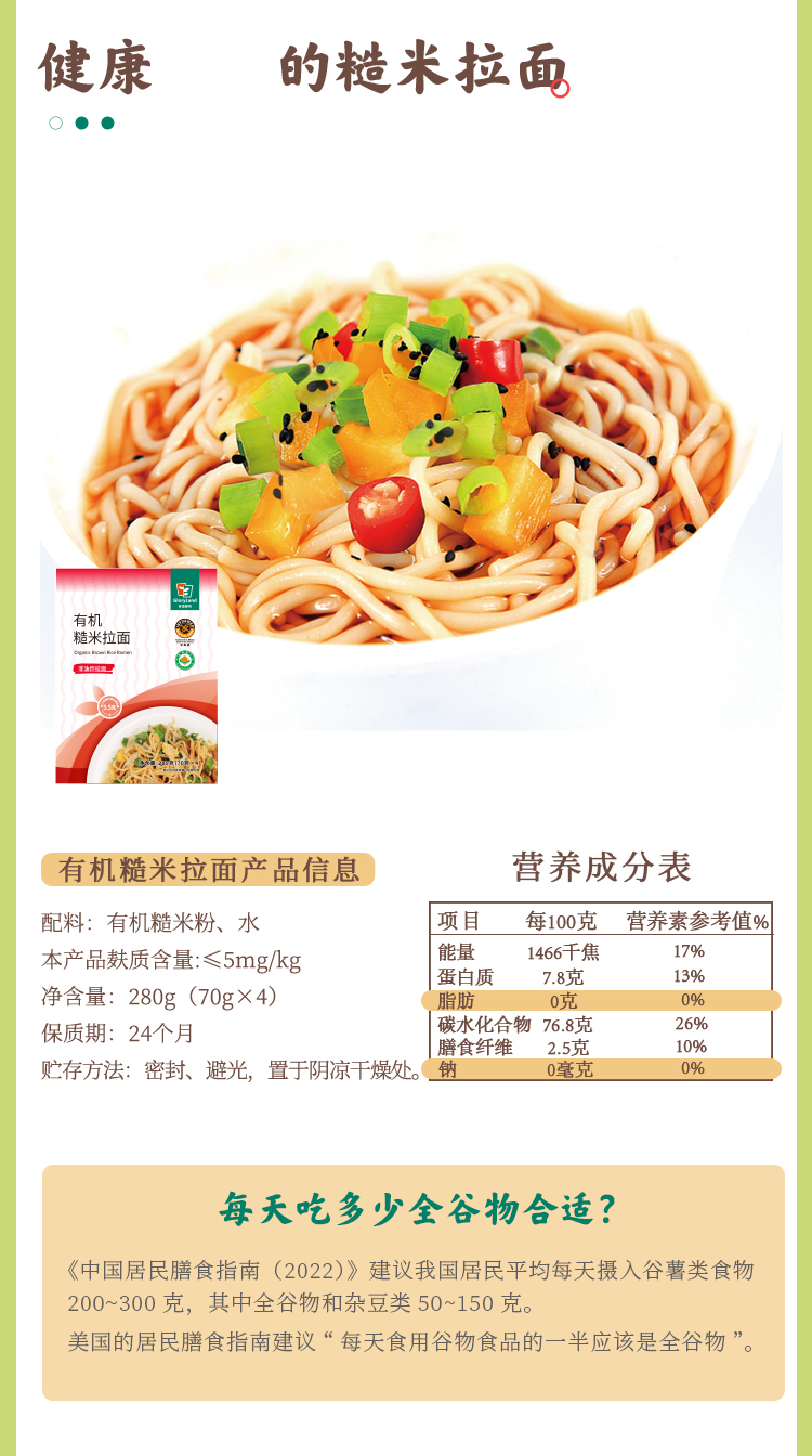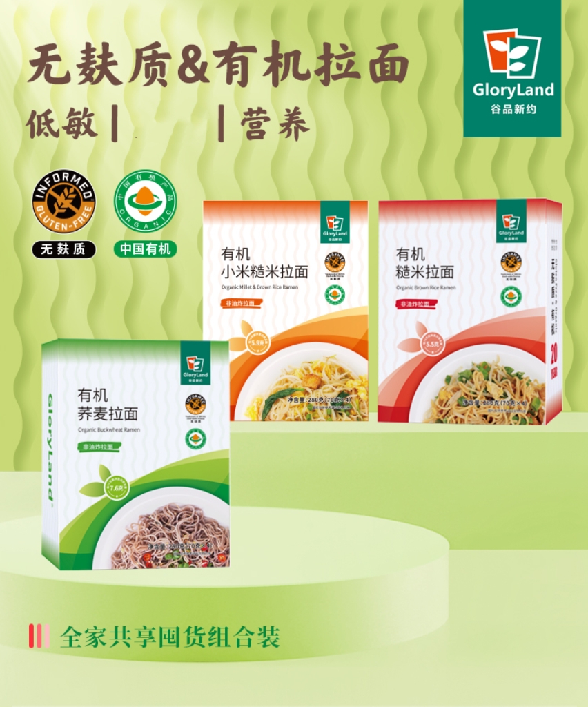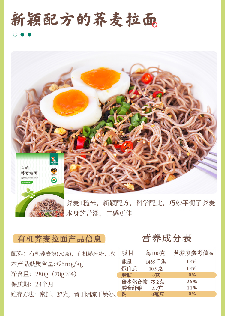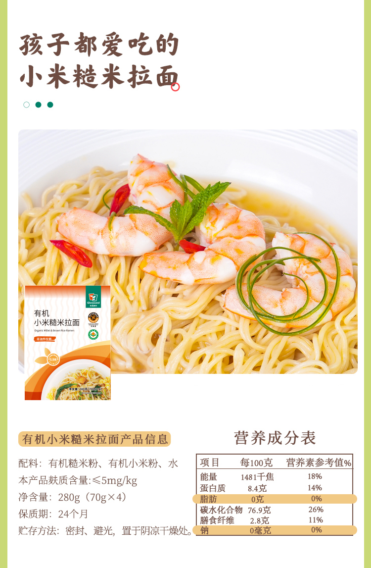 谷品新约 有机无麸质拉面条无小麦无蛋奶饮食品早餐晚餐0盐0脂小米糙米荞麦