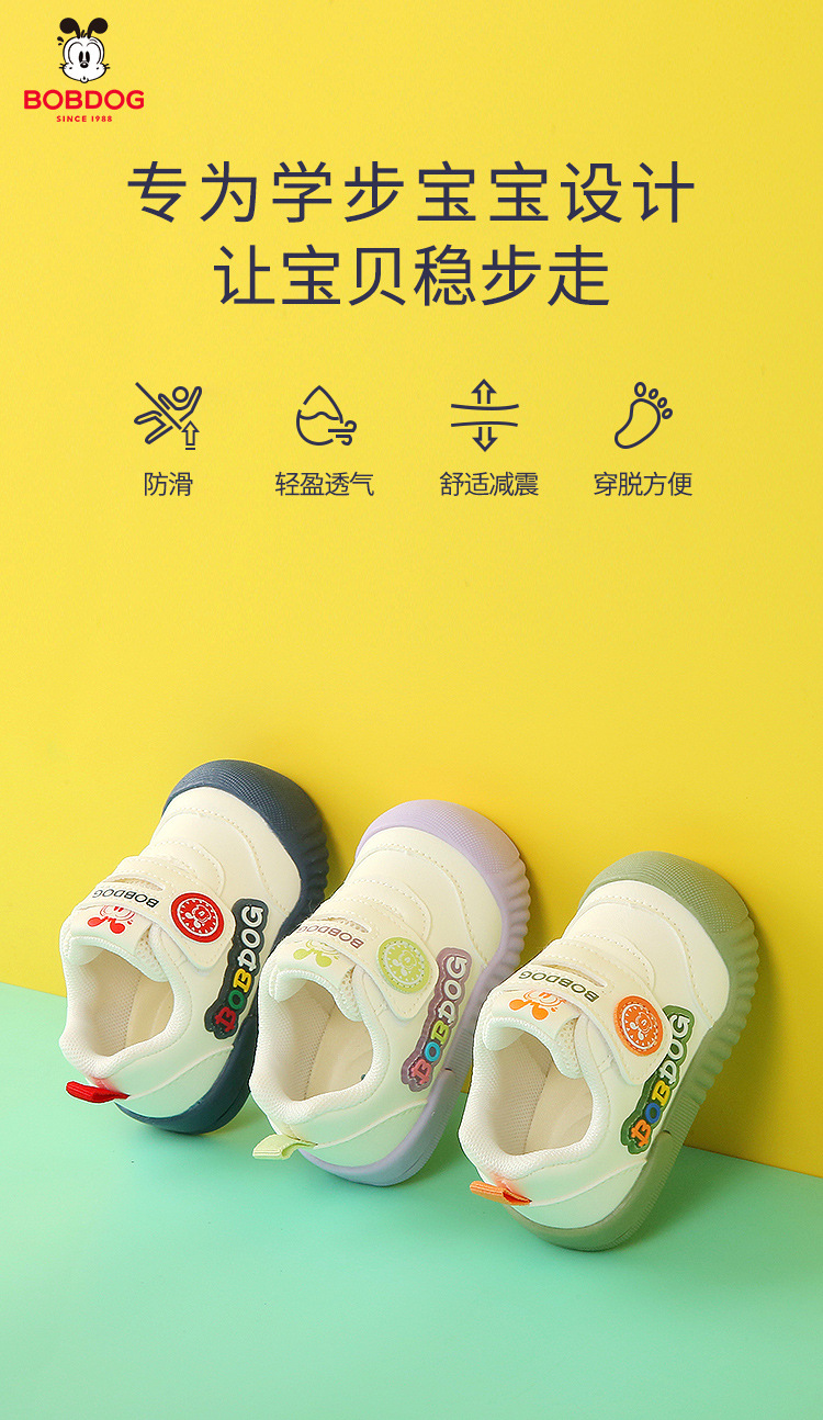【舒适内里亲肤透气❗️防滑耐磨柔软鞋底】巴布豆童鞋男女宝宝学步鞋春秋款皮面透气婴幼儿1-3岁小童2机能鞋。jd