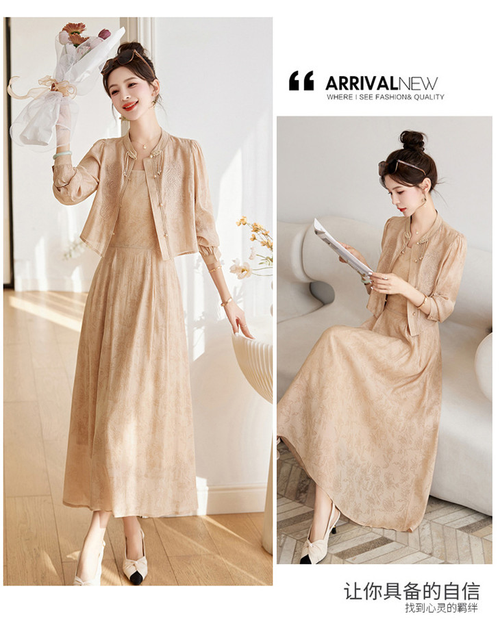 新中式国风套装连衣裙女装2025初秋新款显瘦长袖上衣吊带裙两件套LSNY2405