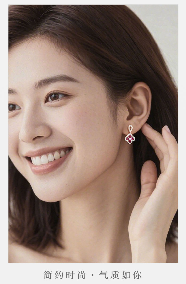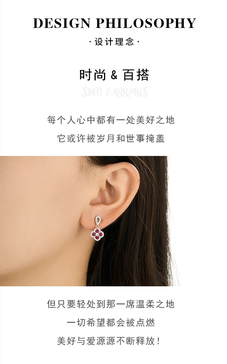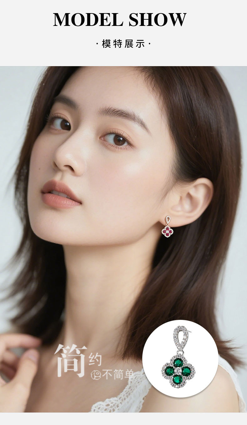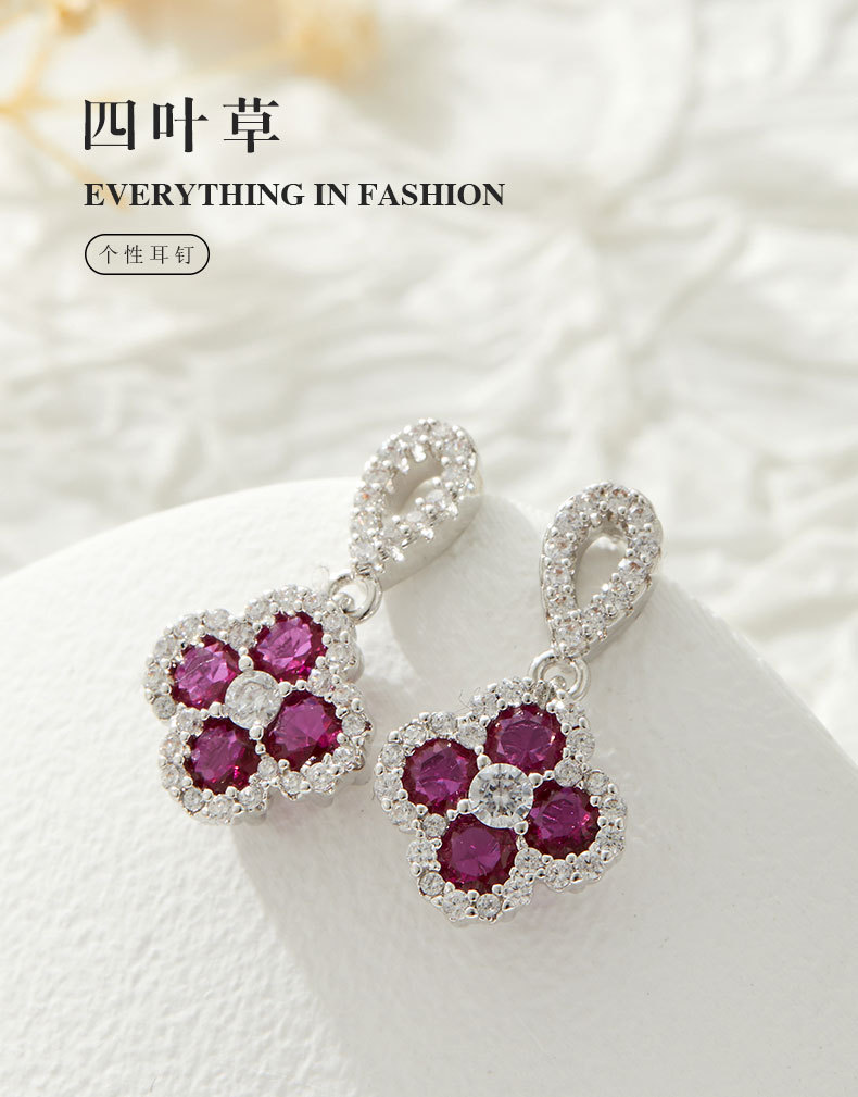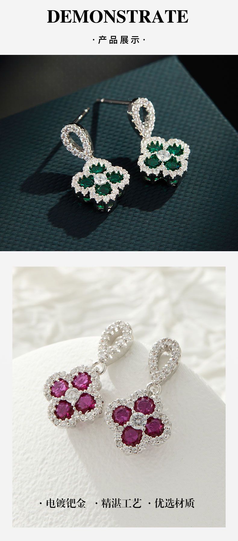 【预售3天】名媛风奢华四叶花耳钉优雅高级感微镶满锆耳坠s925银针精致女耳饰EA13989D100