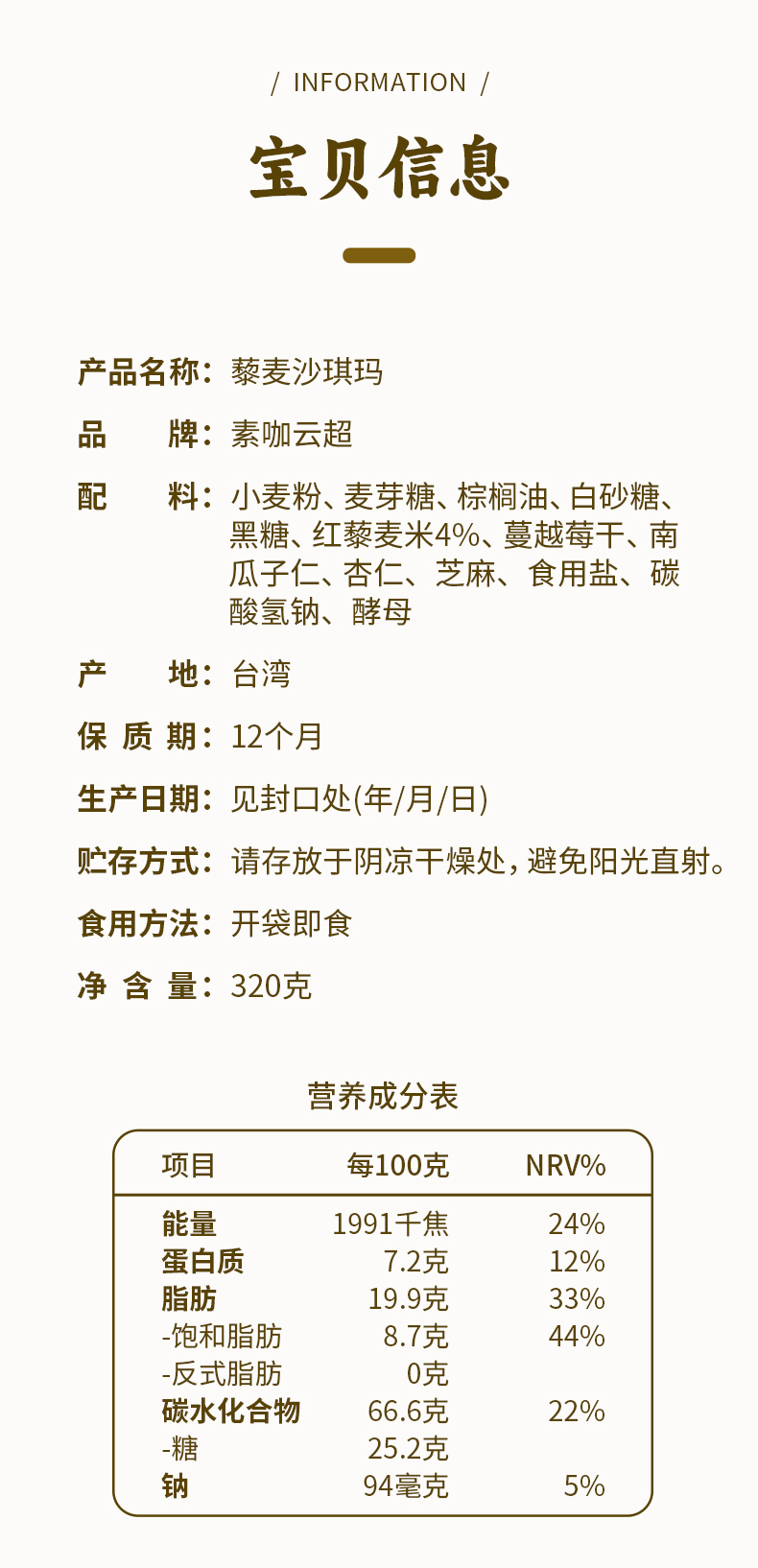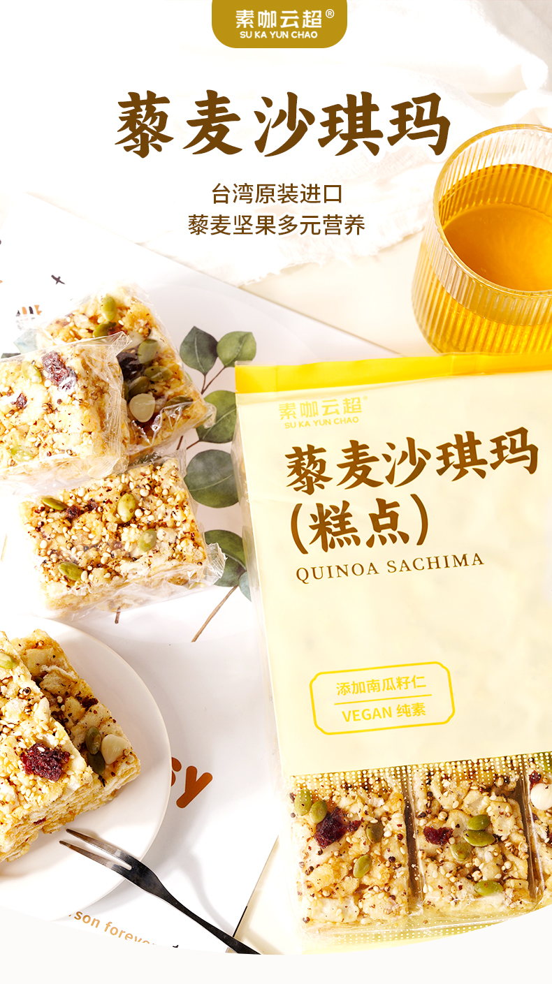 藜麦沙琪玛 320克/袋 加入南瓜籽仁等坚果 多元营养 台湾原装进口 SGS检验纯净素 纯素食品 传统糕点 地道风味 真材实料 茶点伴侣