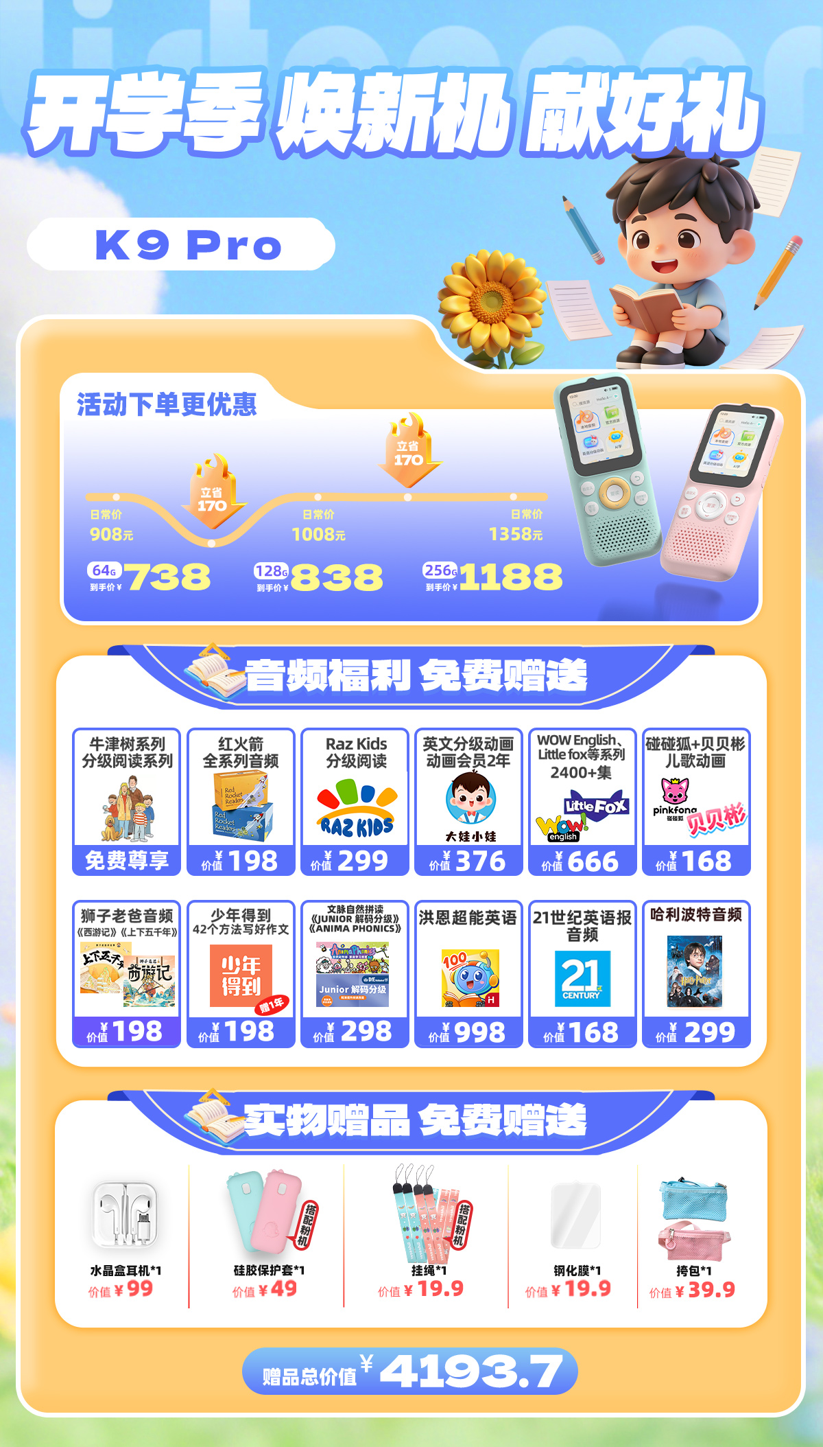 倾听者K9pro英语小初高AI听力学习机口语跟读复读机