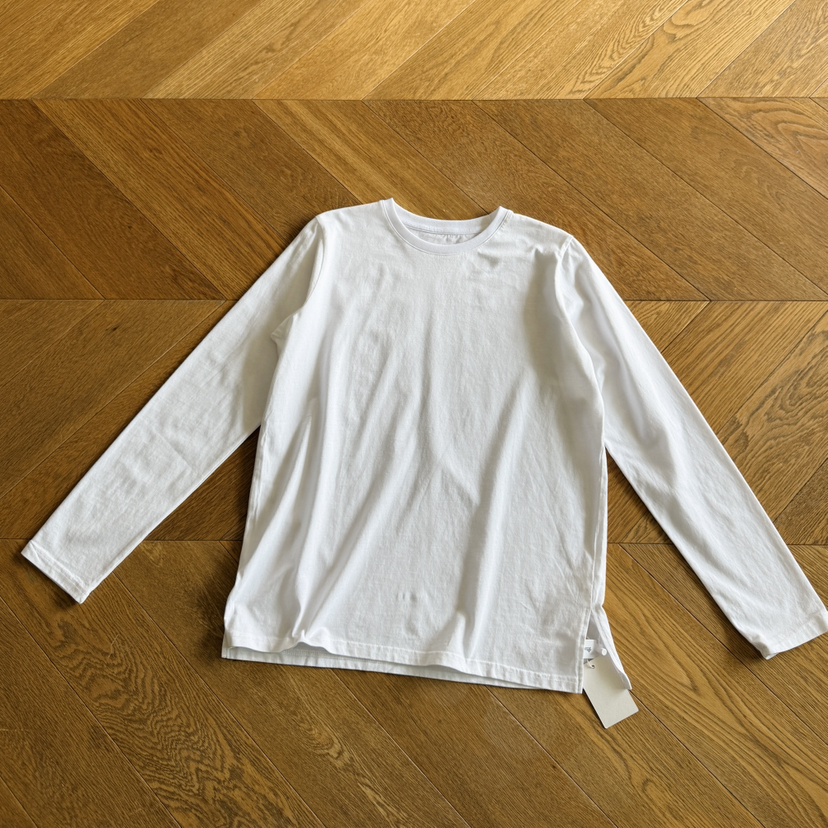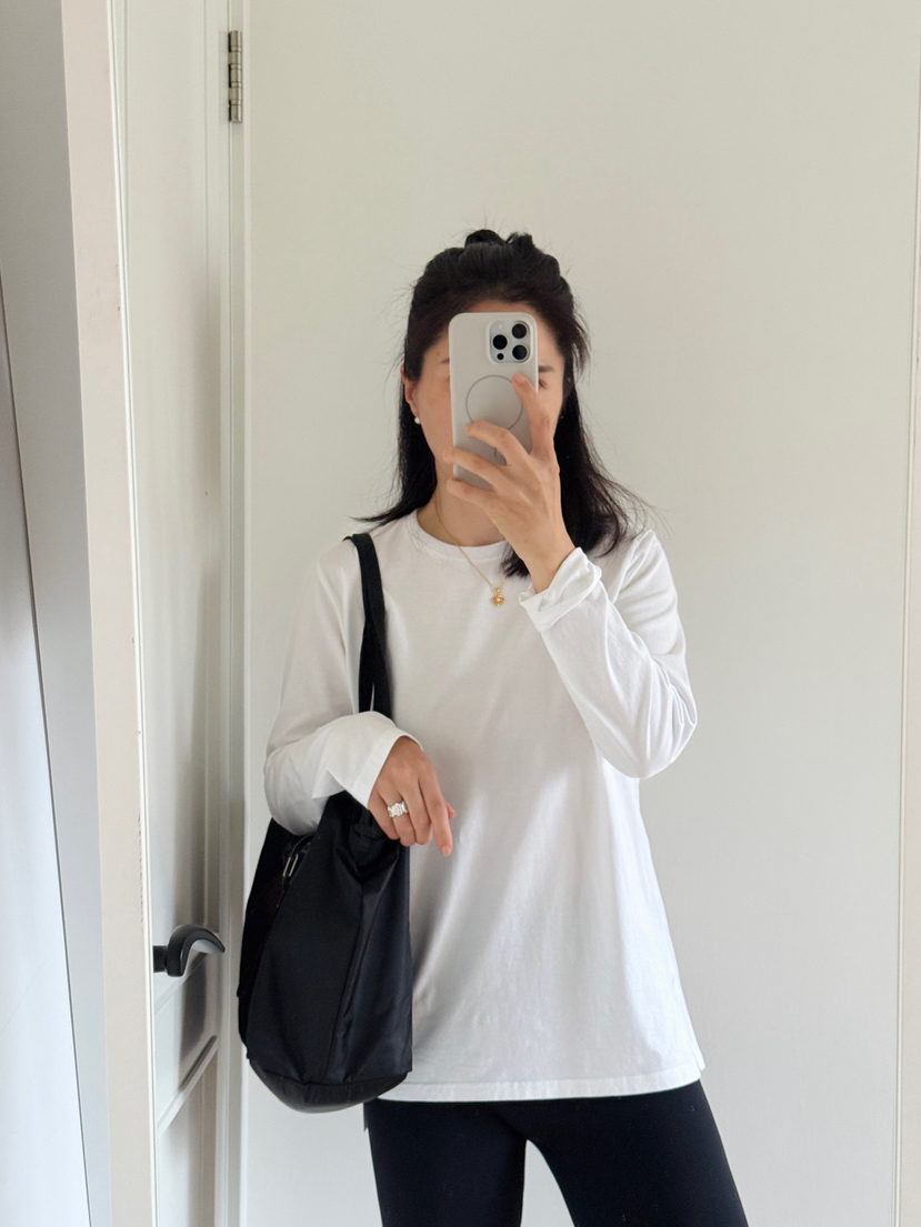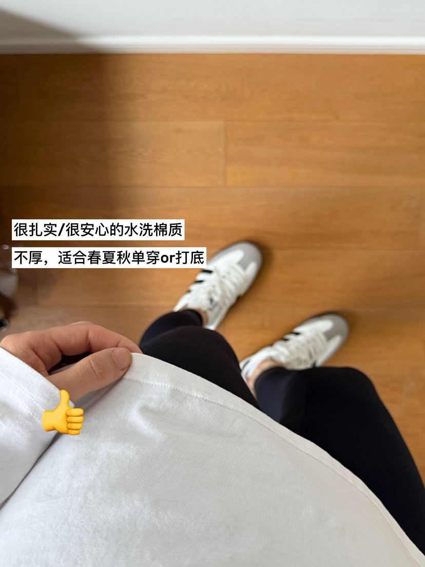 为四季衣橱的通用百搭单品,不得不入这款棉T恤!尤其是忽冷忽热的换季时节,有这样一件T恤会格外省心。天然棉麻柔软呵护肌肤,手感干爽软糯,亲肤又透气,排汗不粘身,更具筋骨感。上身挺括柔韧,立挺有型,有造型感,色泽纯正饱满,不易褪色。整体效果要比普通棉的好,日常穿着不易起球变形,方便好打理,整体是宽松长袖T恤版型。离体有充沛松量,有很高的包容度,不挑人穿,各色身形一并吞下,恰到好处呈现“纸片人”即视感,隐匿身材短板,轻松显瘦,惬意舒适的大廓形,日常实穿率很高,带来舒适感与格调并存的时尚气质,整体松弛慵懒的很gao级!单穿一点不局促,相反是极简的意味,做内搭,也可以搭在风衣外套里面,适配度满分!属于日常穿搭里面的全勤选手~~~