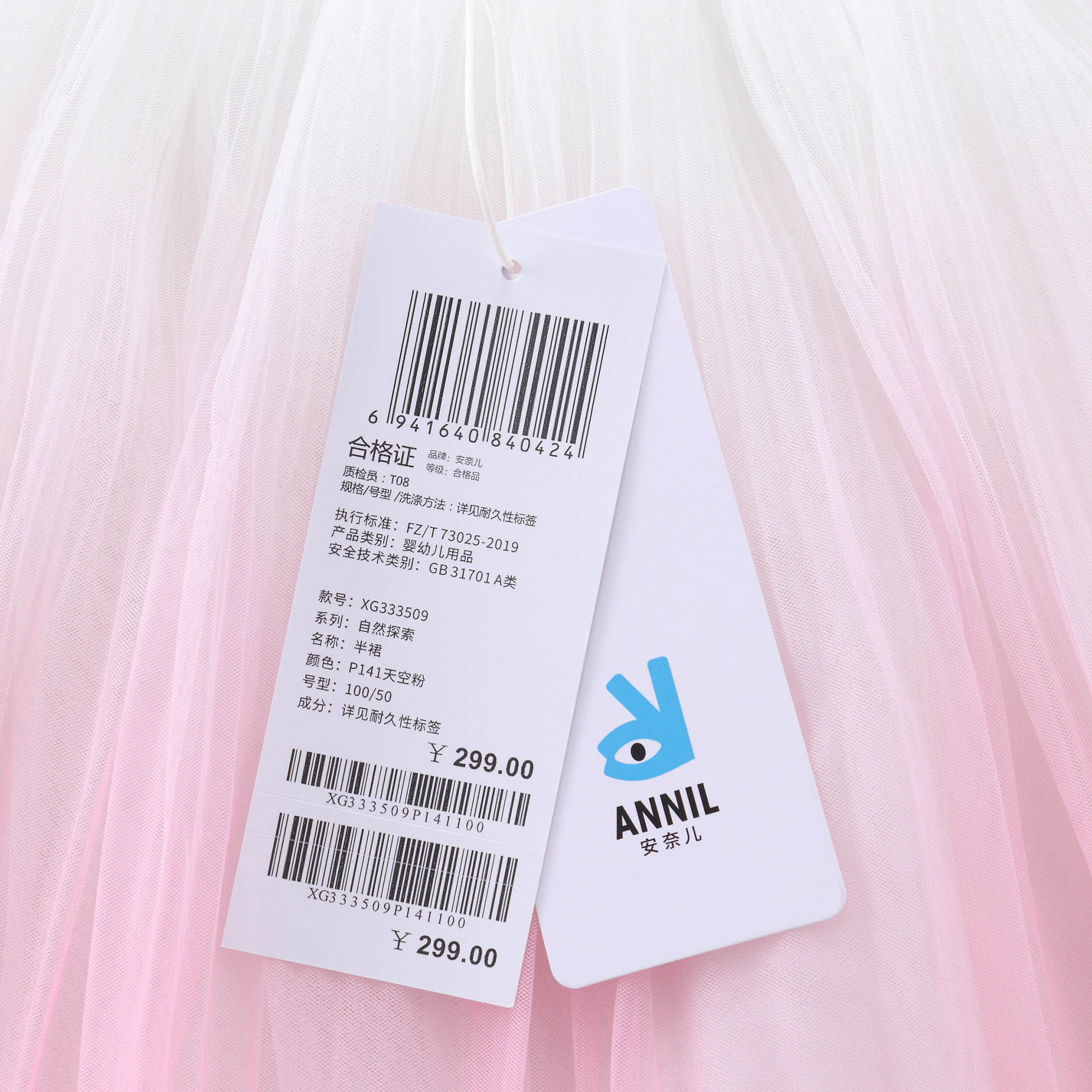 【实体店同款】女童可爱网纱渐变蓬蓬裙半身裙安奈儿童装XG333509