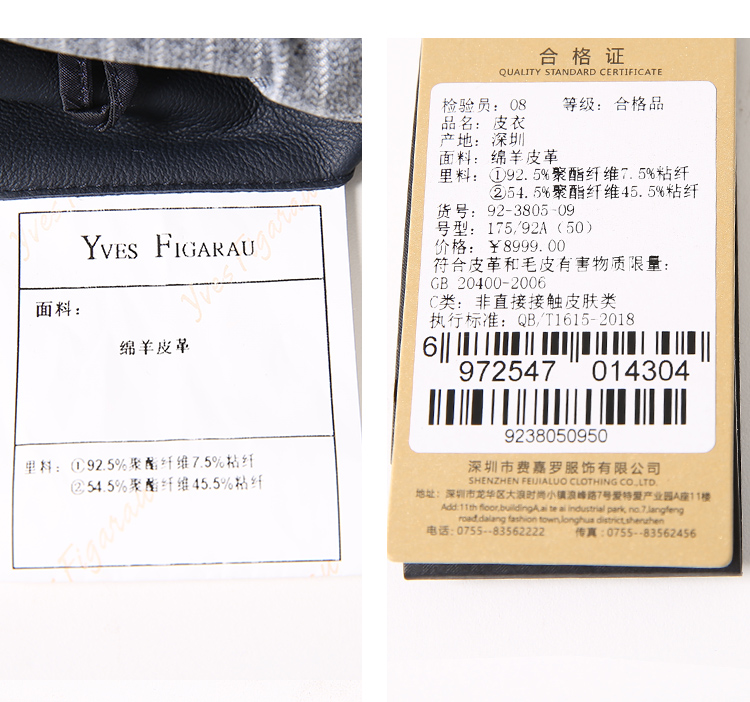 YvesFigarau伊夫·费嘉罗秋冬保暖绵羊皮革皮夹克923805