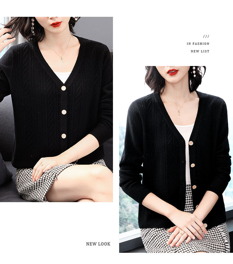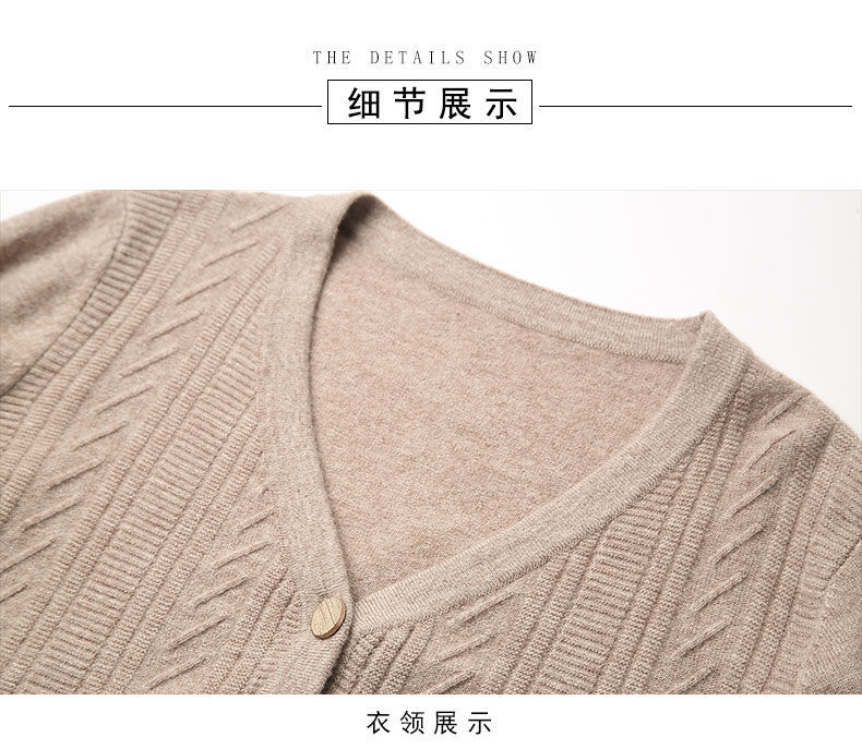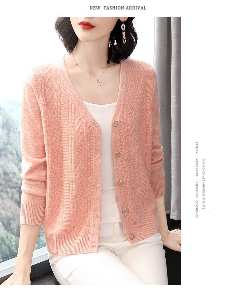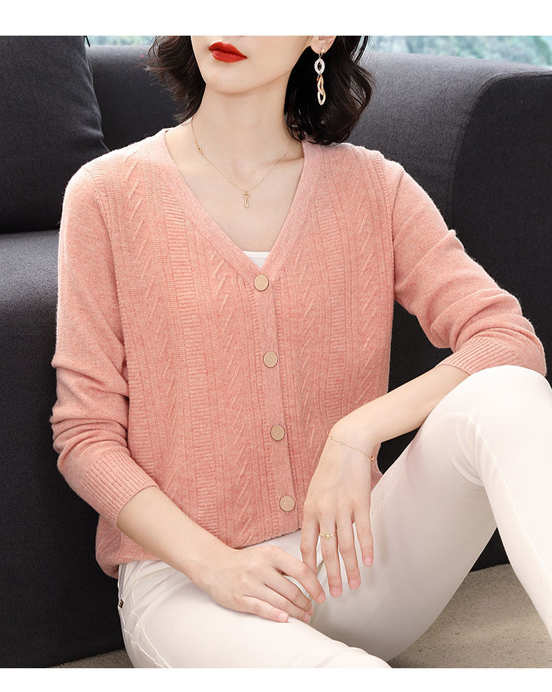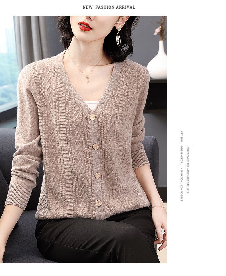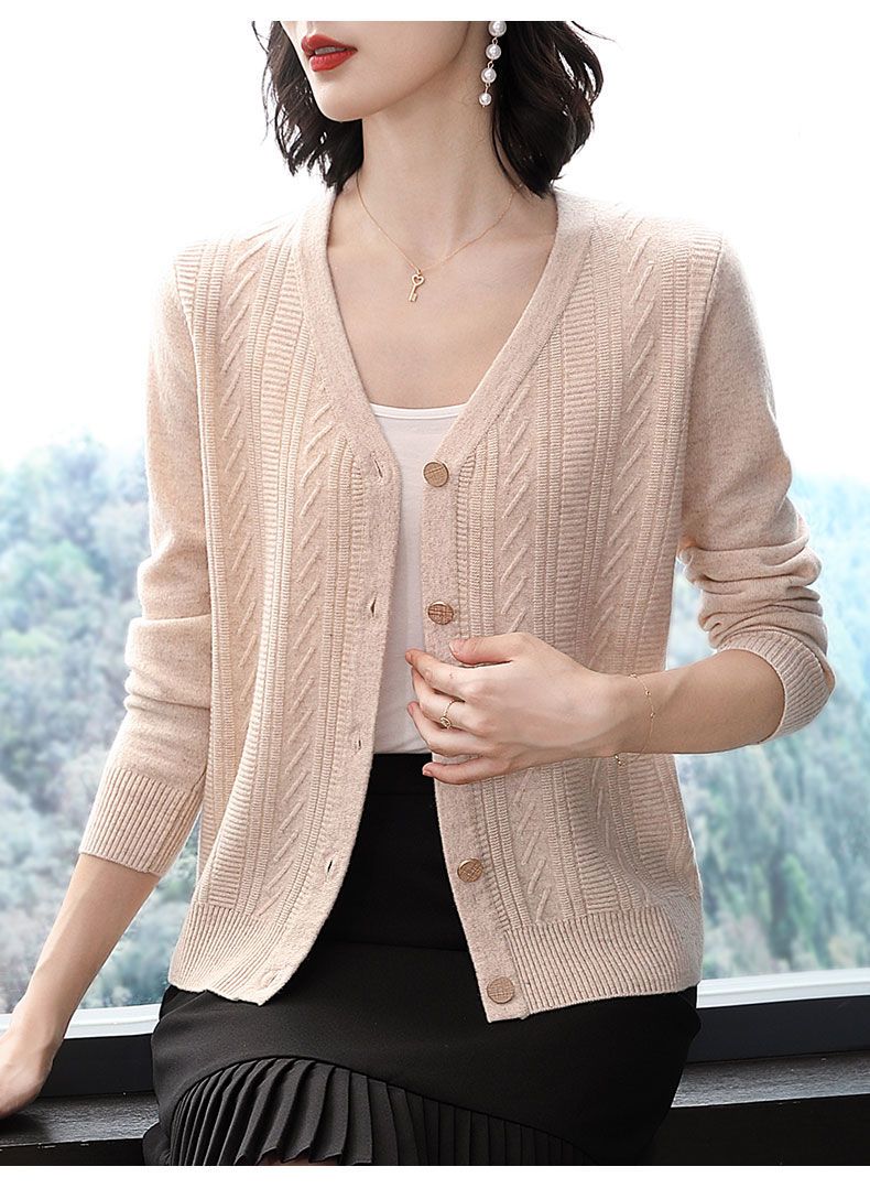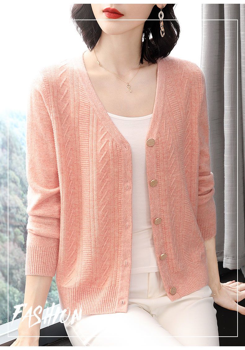 TZW-2024年高档V领羊绒开衫女外搭上衣秋季提花羊毛外套
