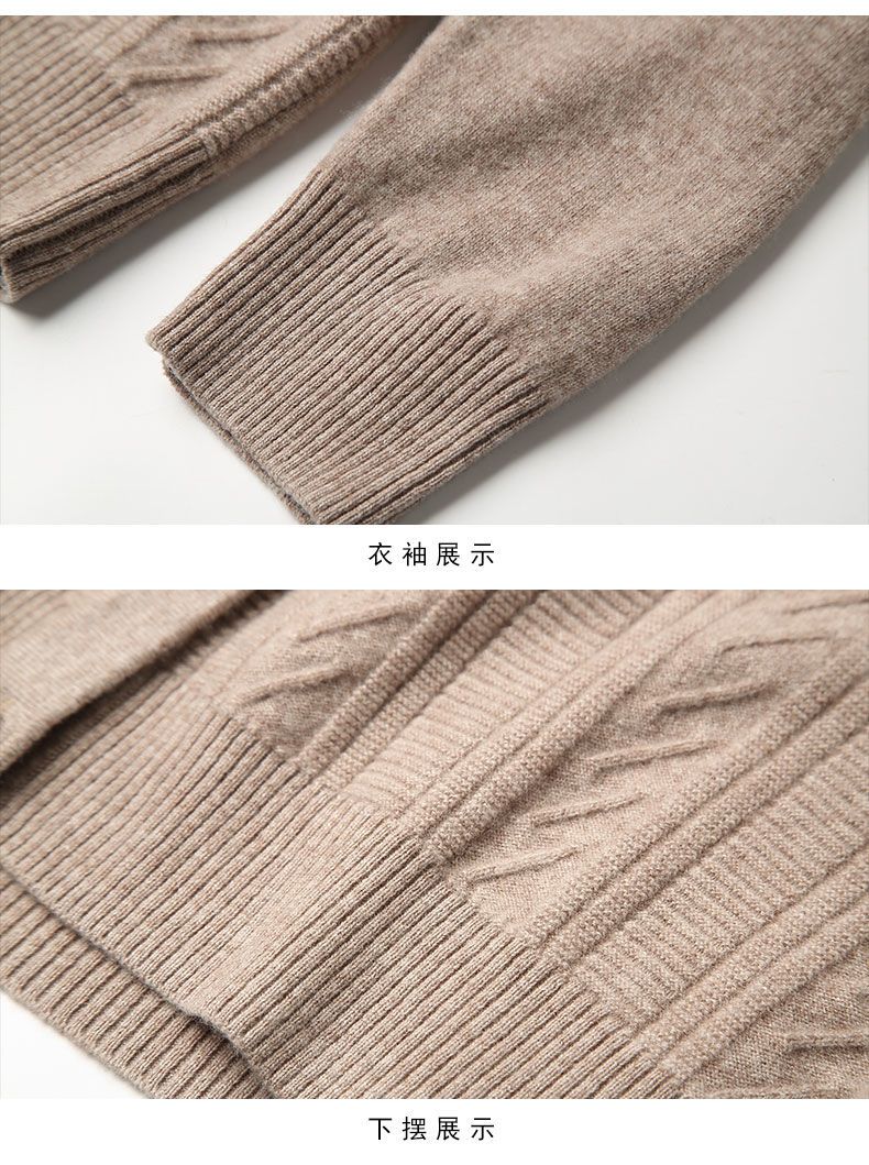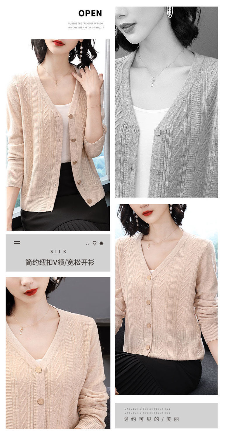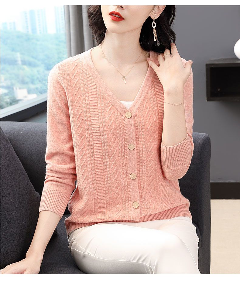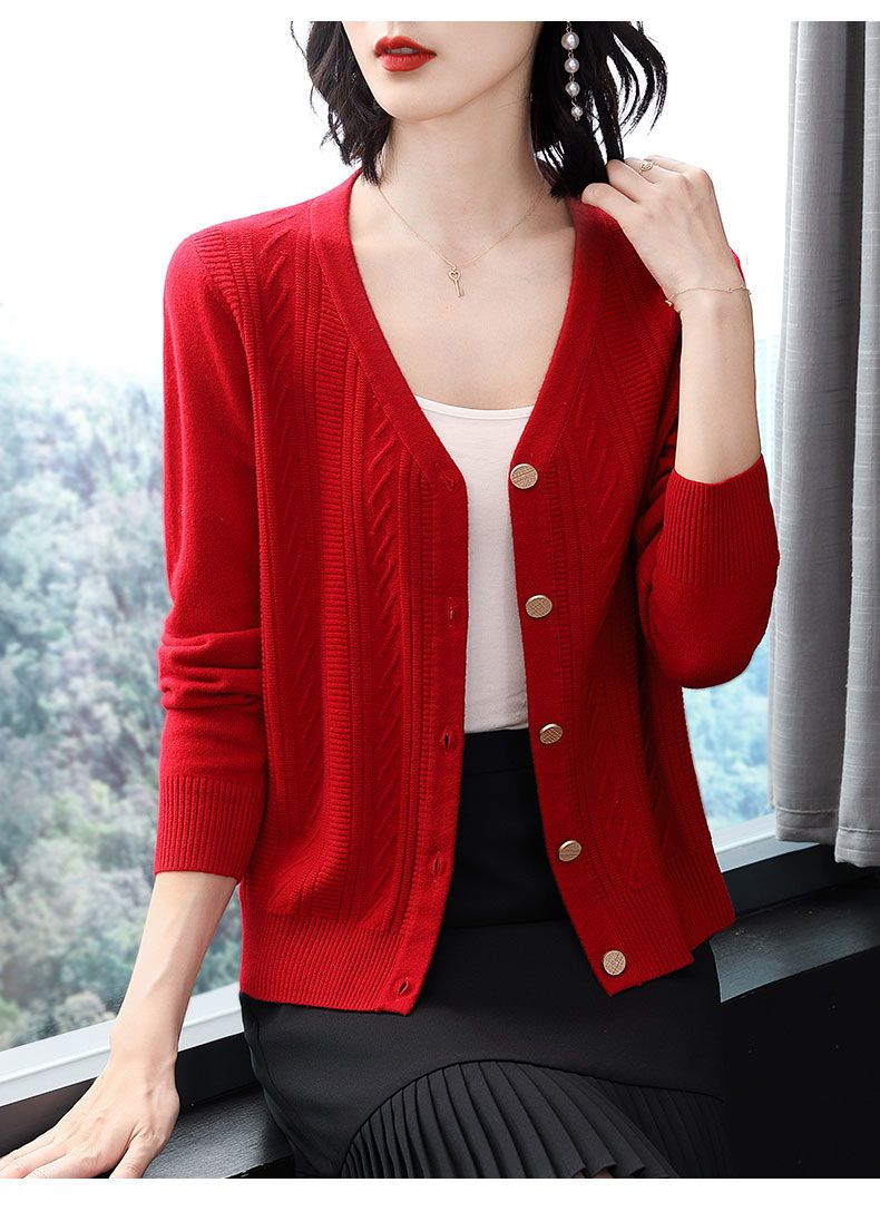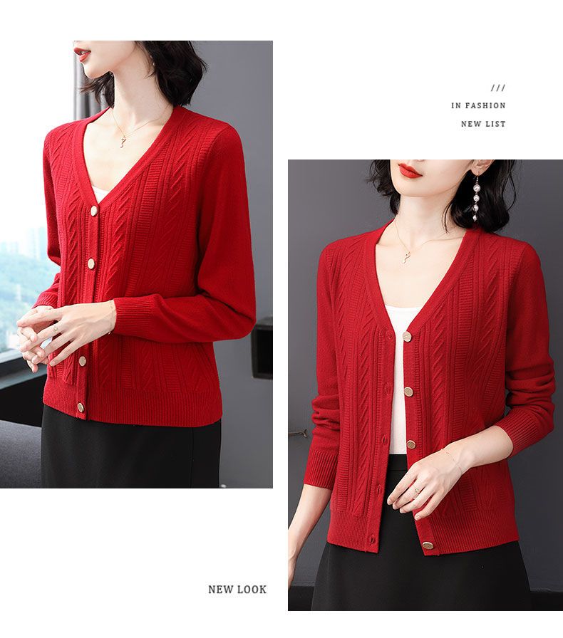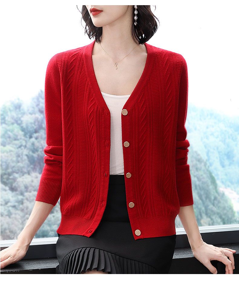 TZW-2024年高档V领羊绒开衫女外搭上衣秋季提花羊毛外套