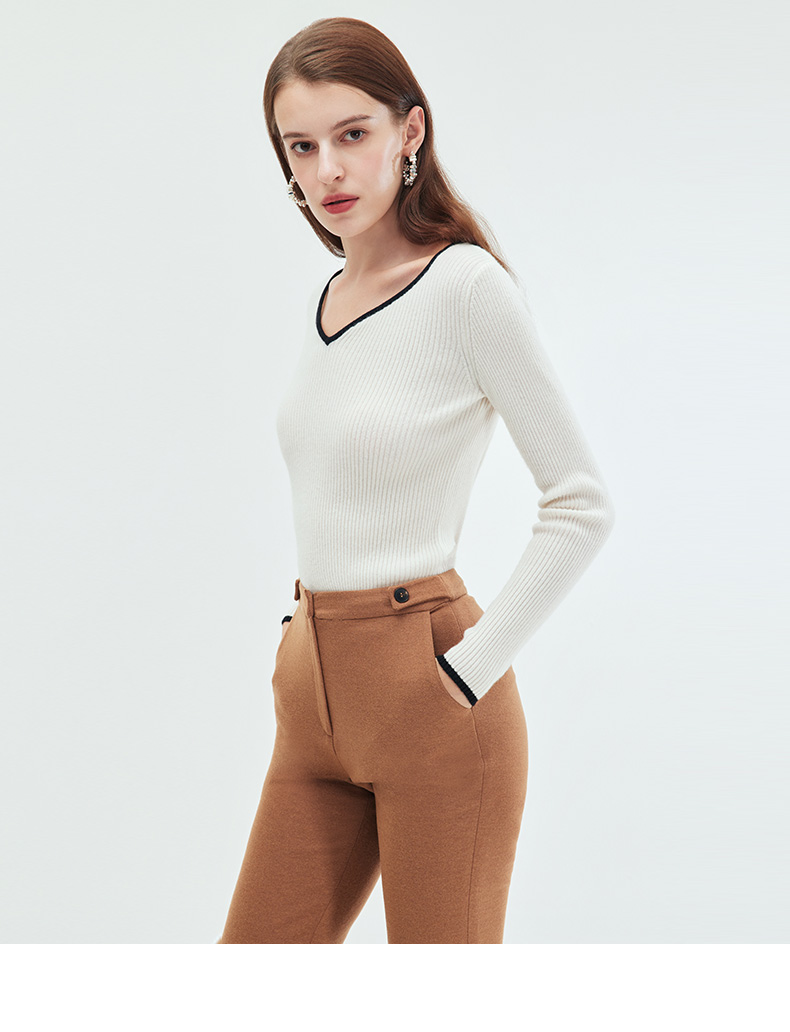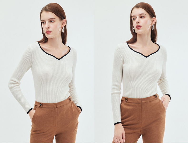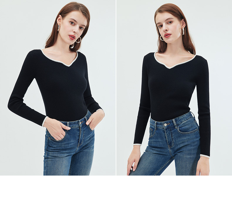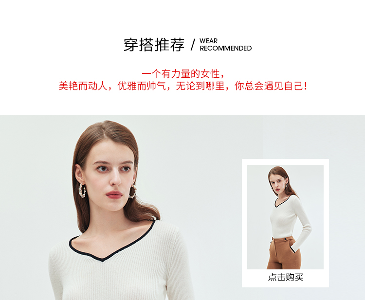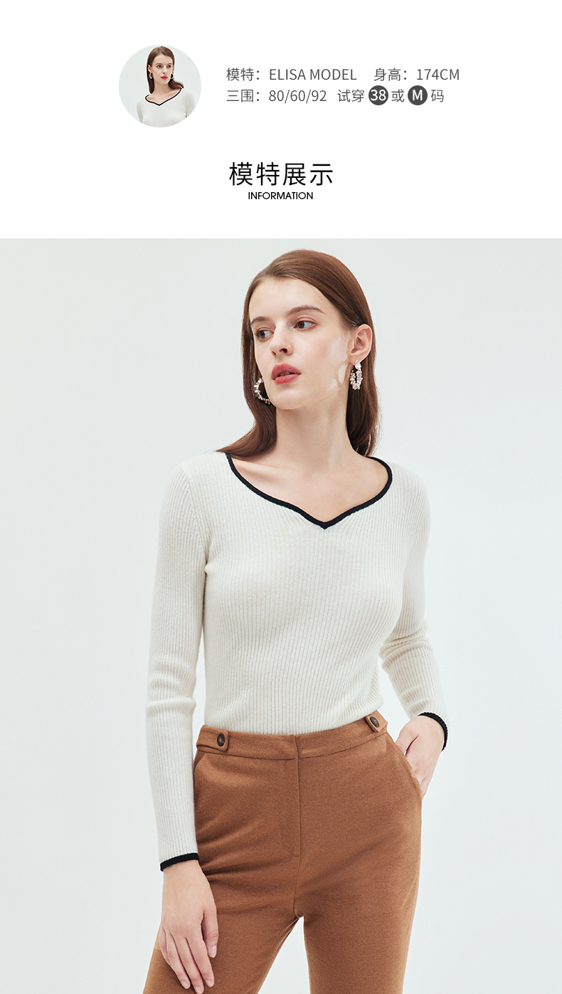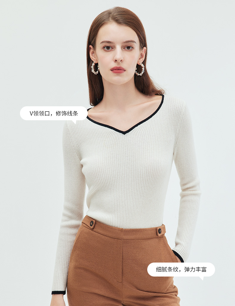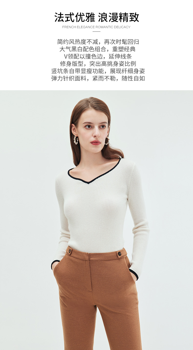 EITIE/爱特爱包边鸡心领坑条纹显瘦舒适软糯羊毛针织衫秋季新款C01228