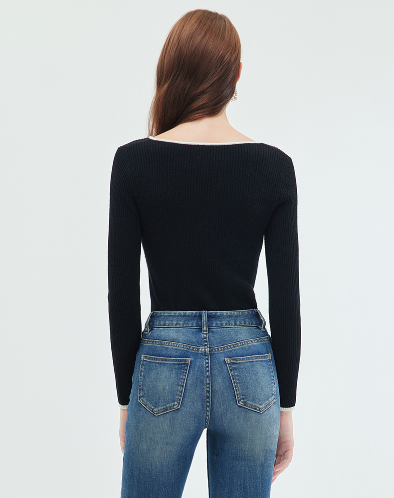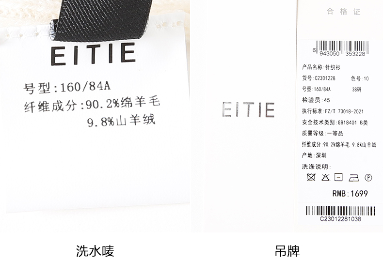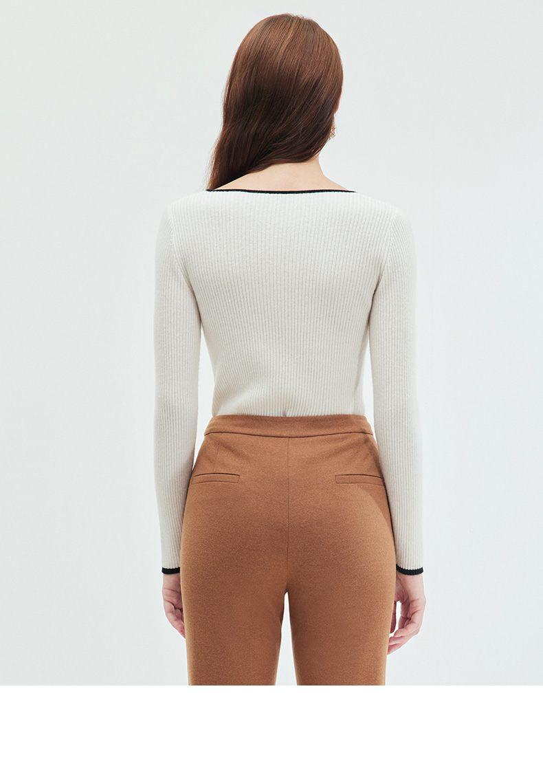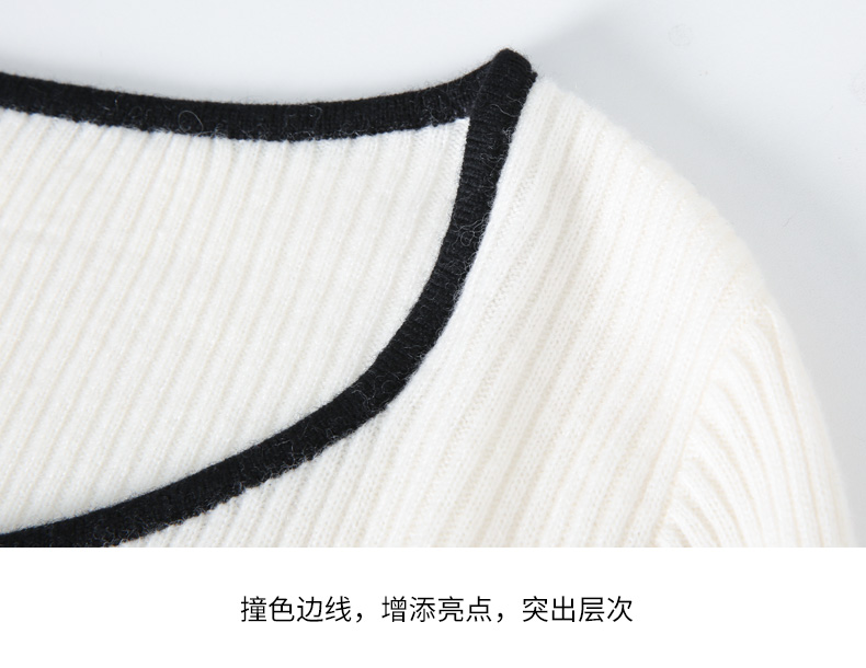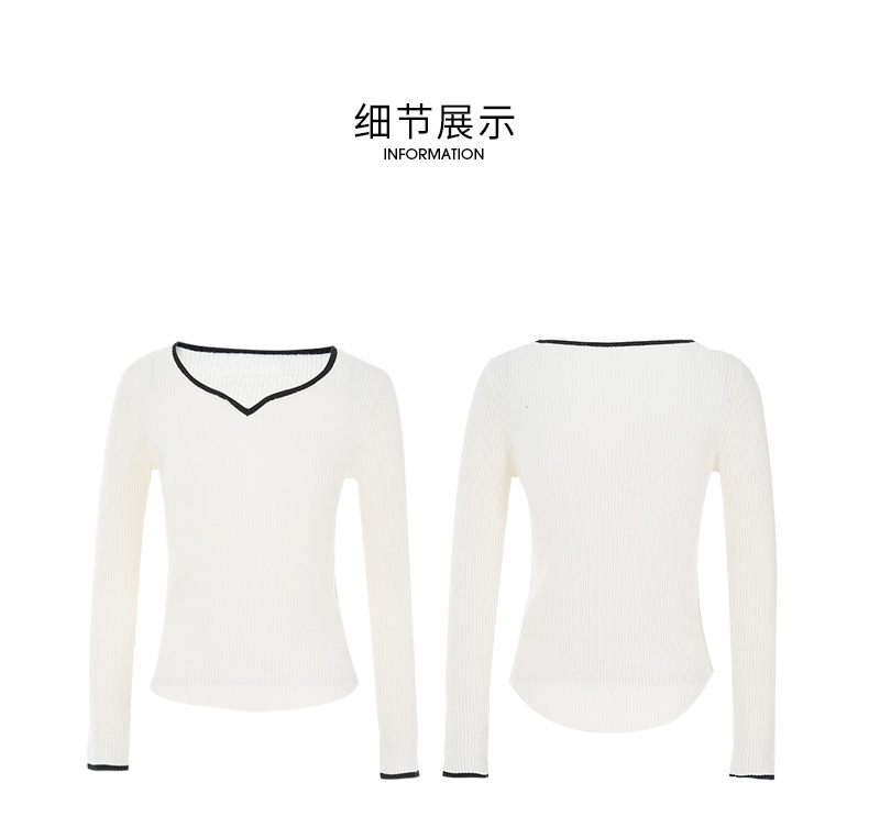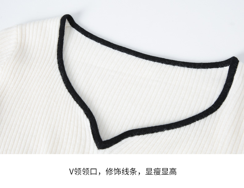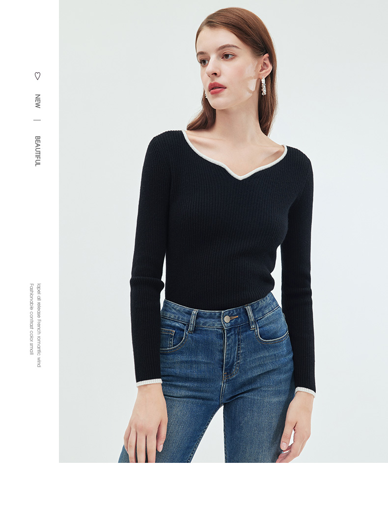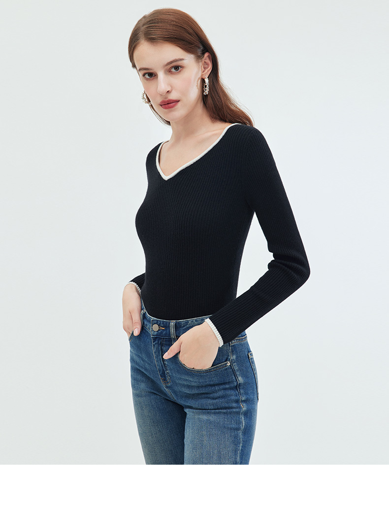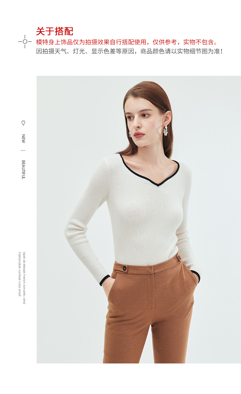 EITIE/爱特爱包边鸡心领坑条纹显瘦舒适软糯羊毛针织衫秋季新款C01228