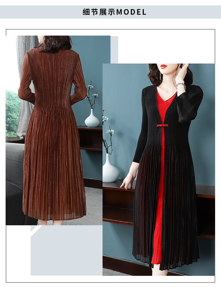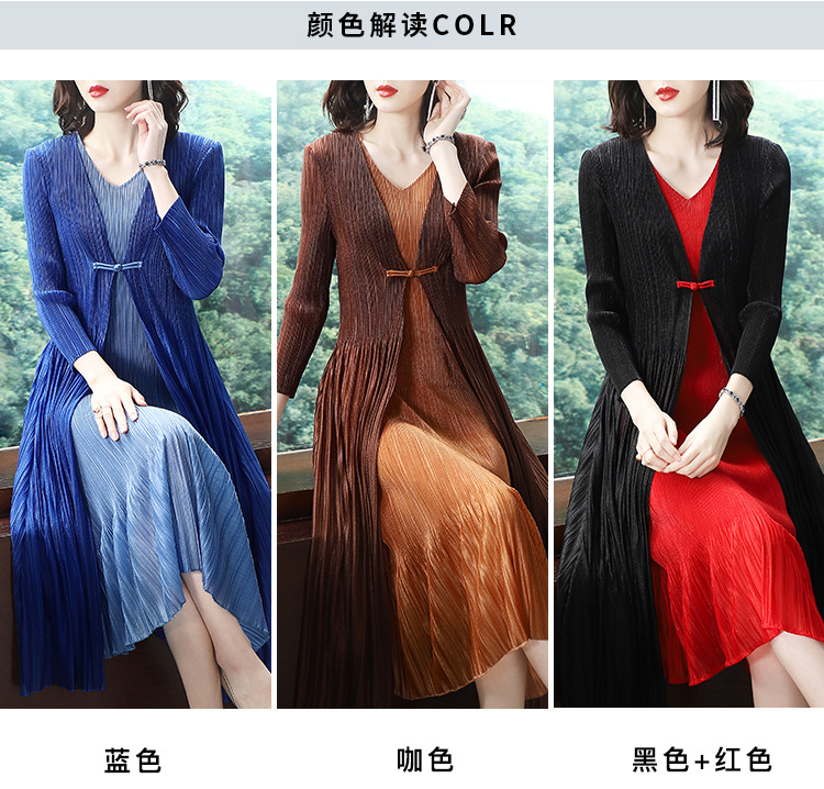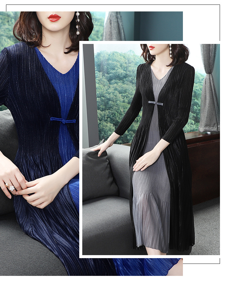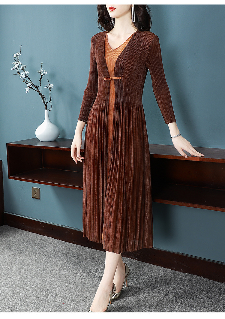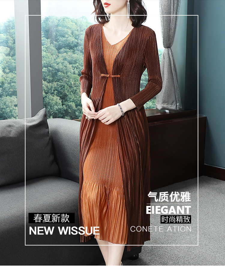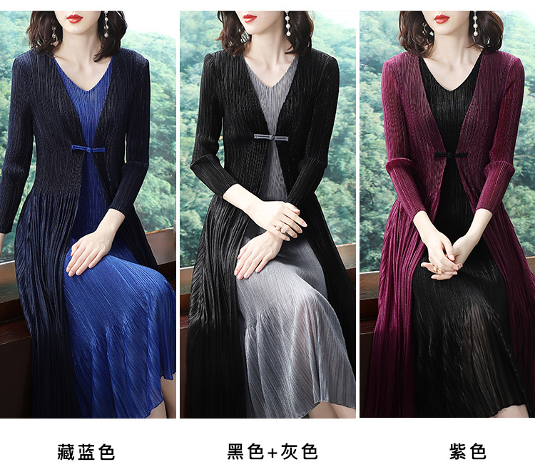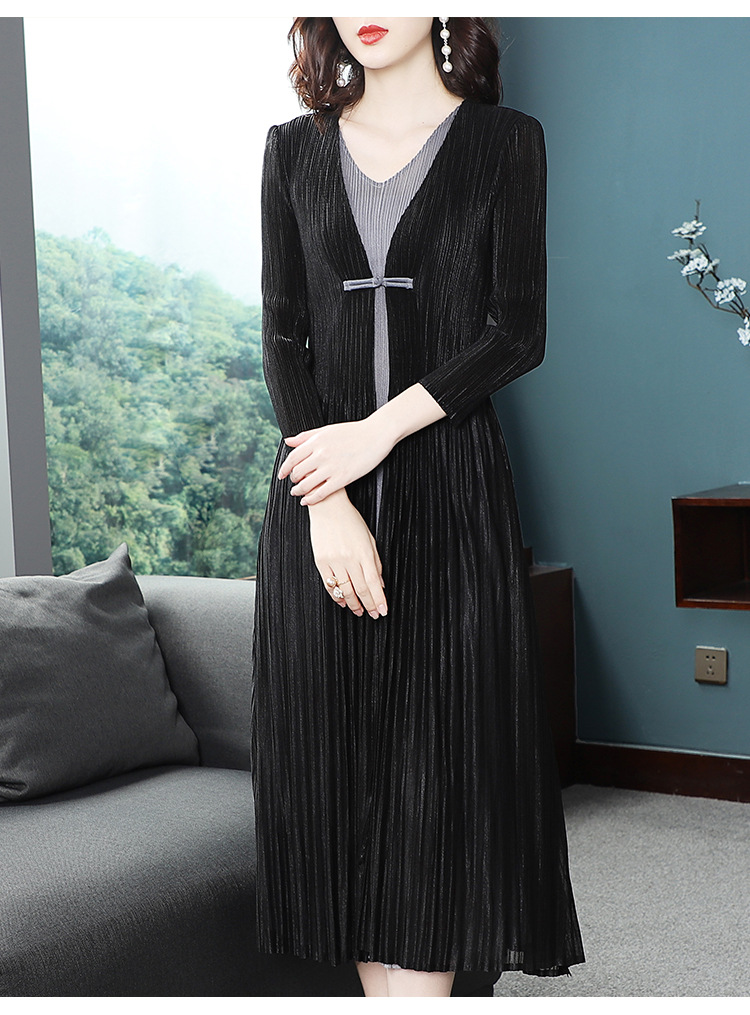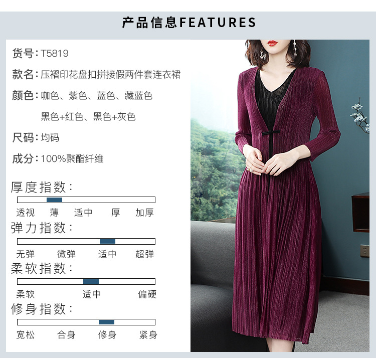BS-5819新款压褶印花开衫盘扣拼接修身显瘦假两件套连衣裙TZW