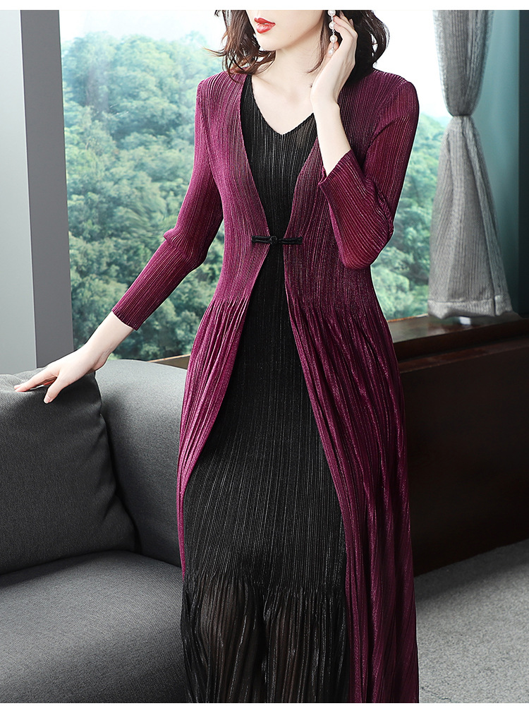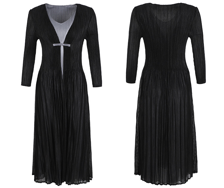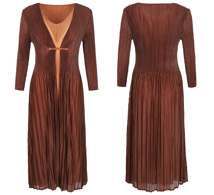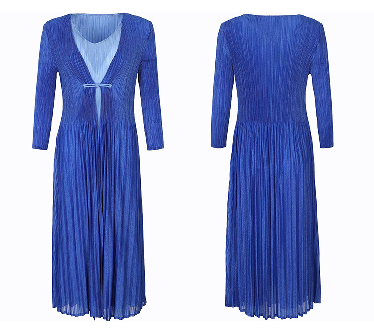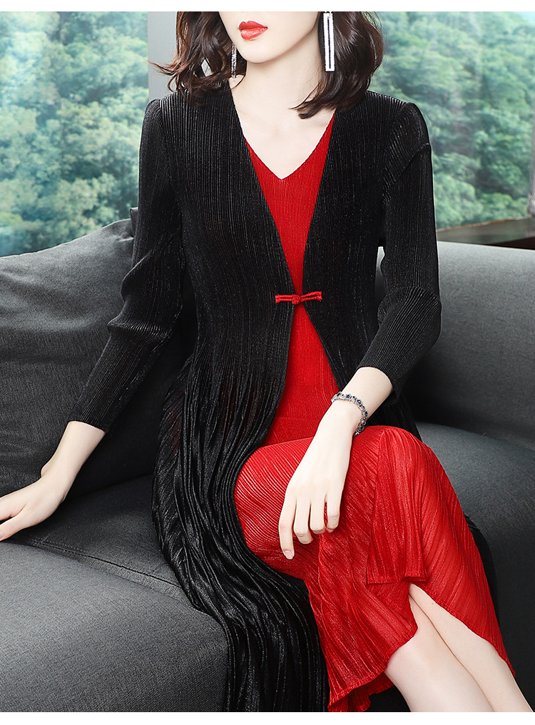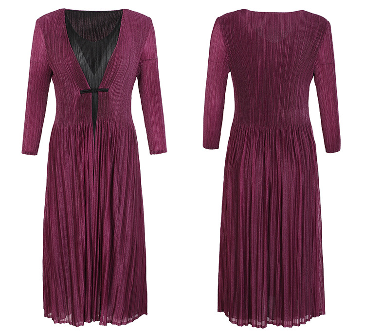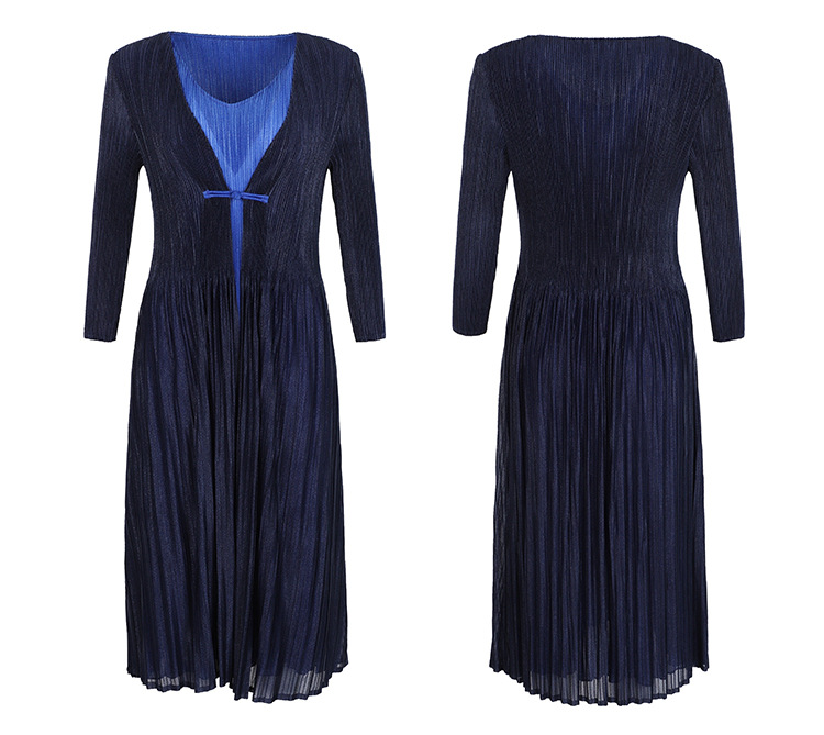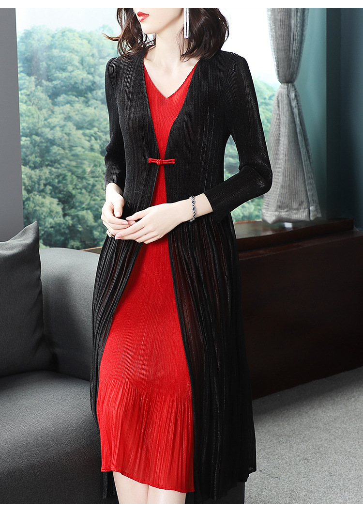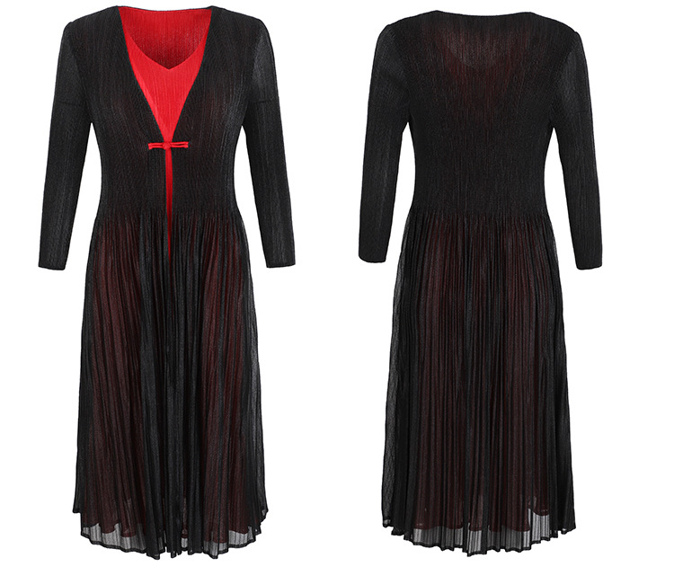 BS-5819新款压褶印花开衫盘扣拼接修身显瘦假两件套连衣裙TZW