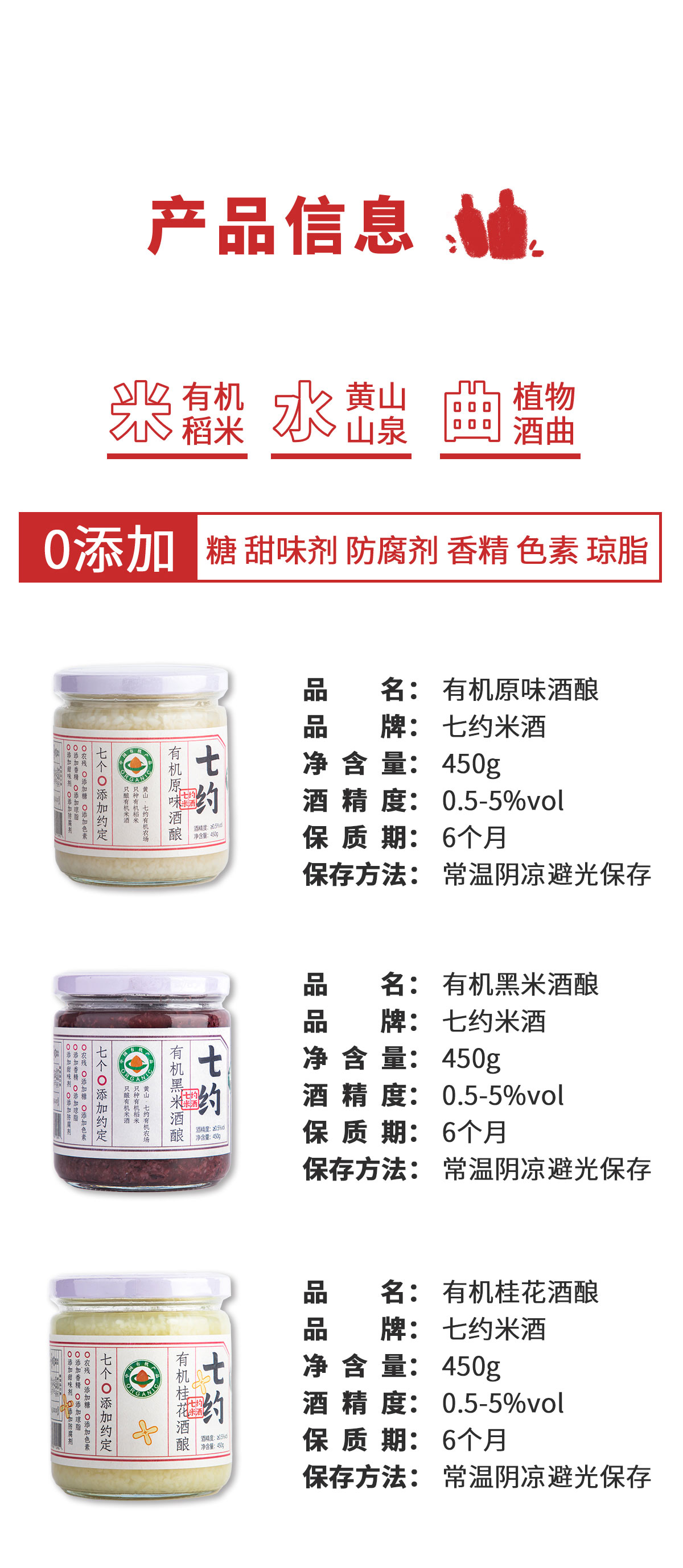杞冠严选 | 黄山 七约有机米酒 白糯米醪糟/黑糯米醪糟/桂花醪糟 450g 原味酒酿 2件起包邮