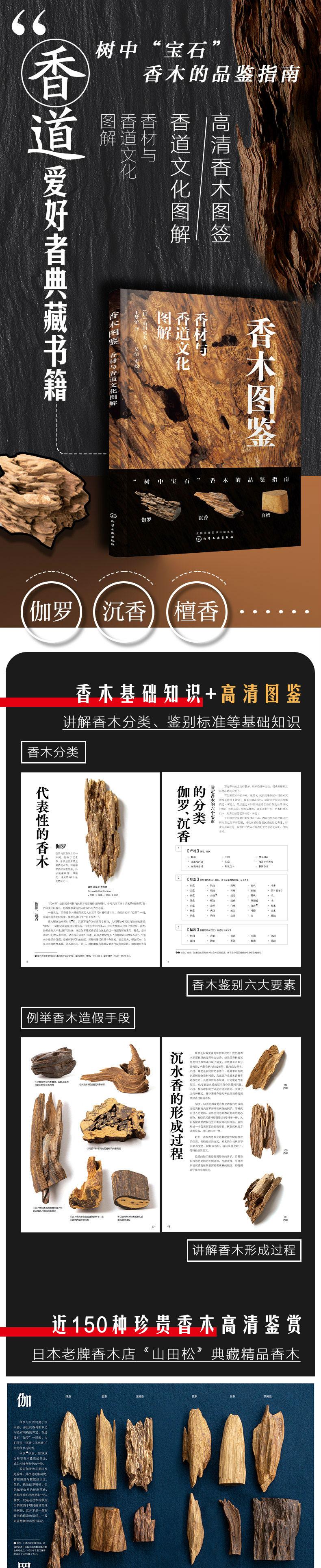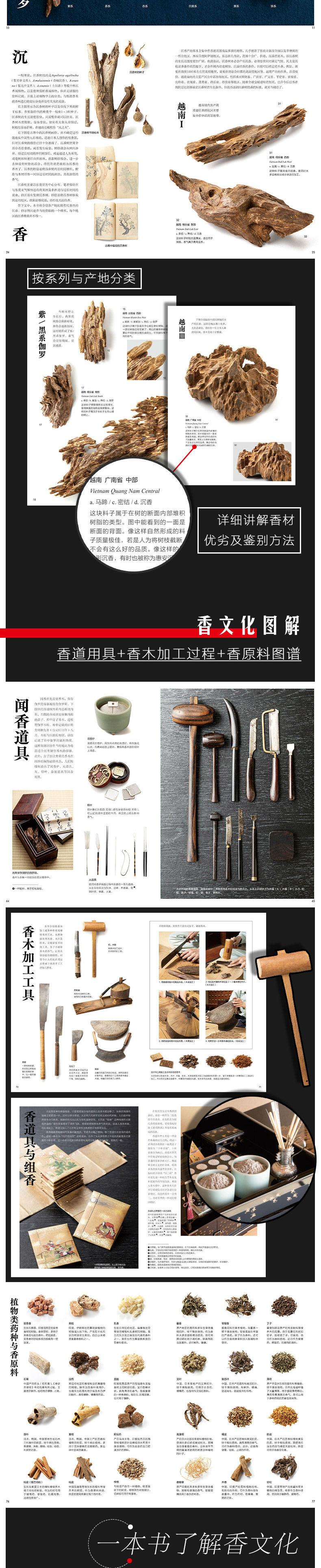 本书是日本香道师和香料店经营者山田英夫的著作。包含伽罗、沉香、檀香、白檀等在内的100多种常用香木的高清图鉴,从颜色、质感、气味等多方面详细讲解鉴别方法,并对市场上常见的作假香材和作假方法进行解析说明,帮助读者识别。并以图解的形式介绍香道文化,包括香料生成、香道历史、香道器具、组香焚香的方法等。香木图鉴部分不仅有详细的性质、产地等文字讲解,每种香料都配有高清大图,清晰地展现香木的质地和肌理,是不可多得的香料识别手册和花道文化入门读物。